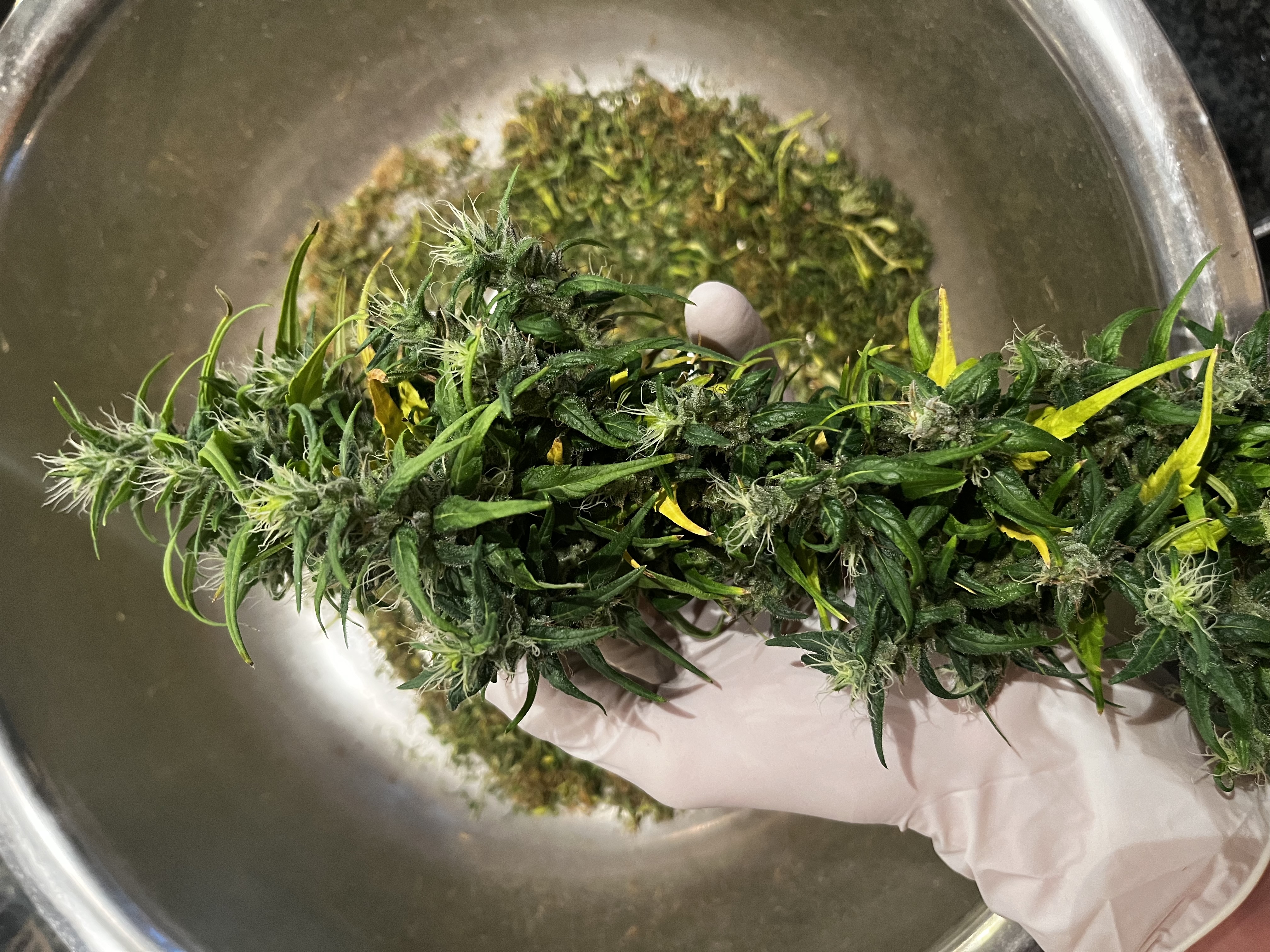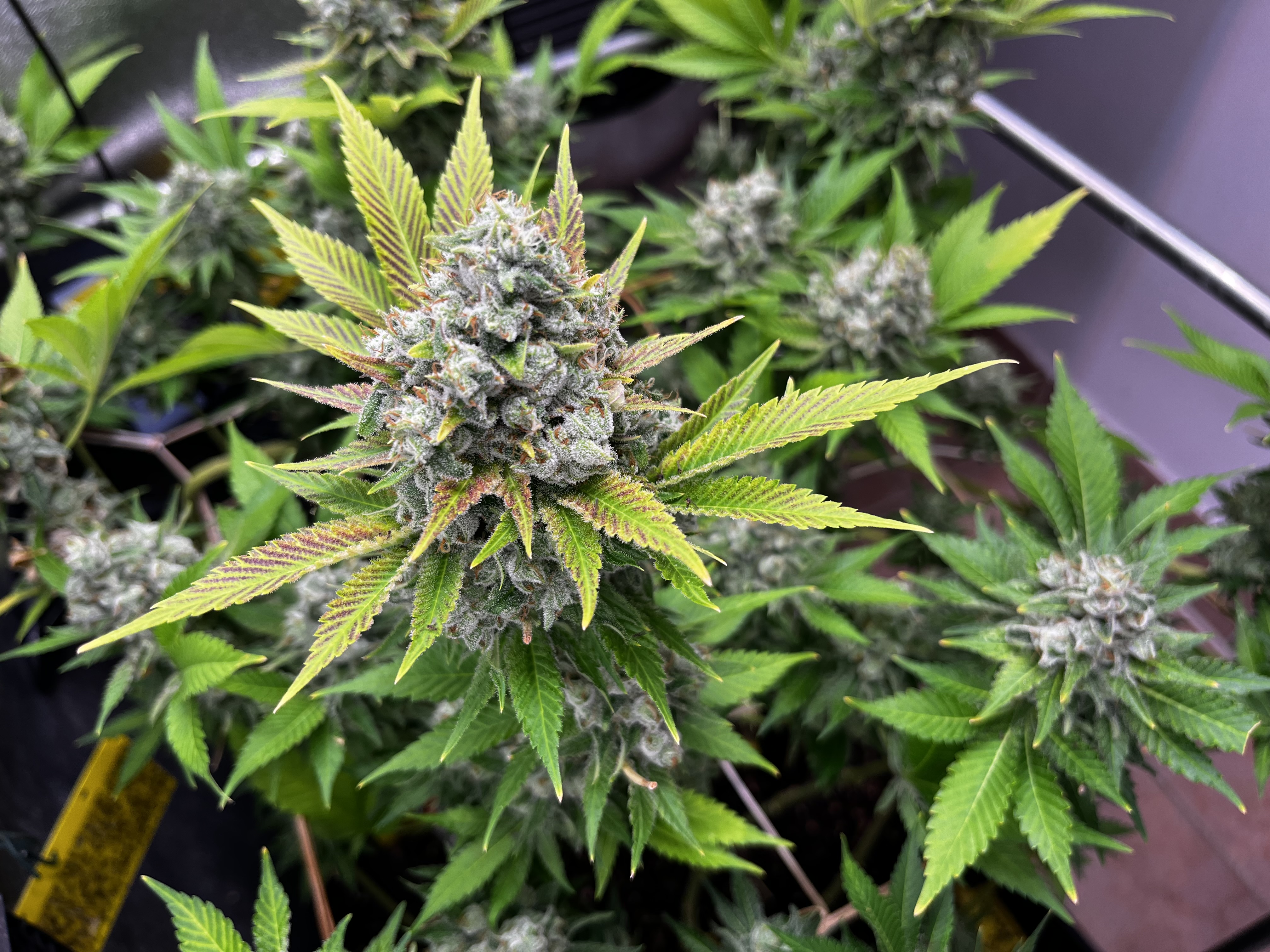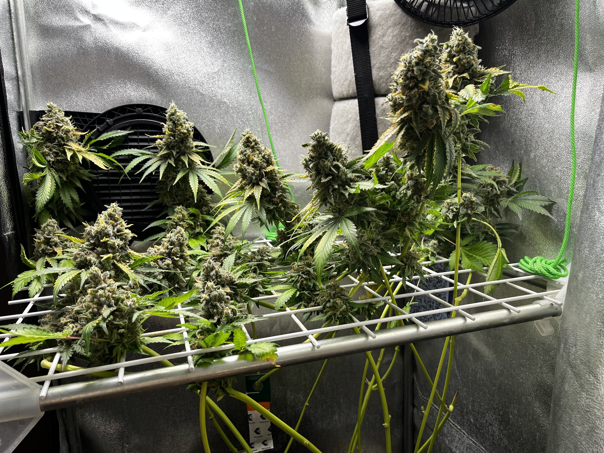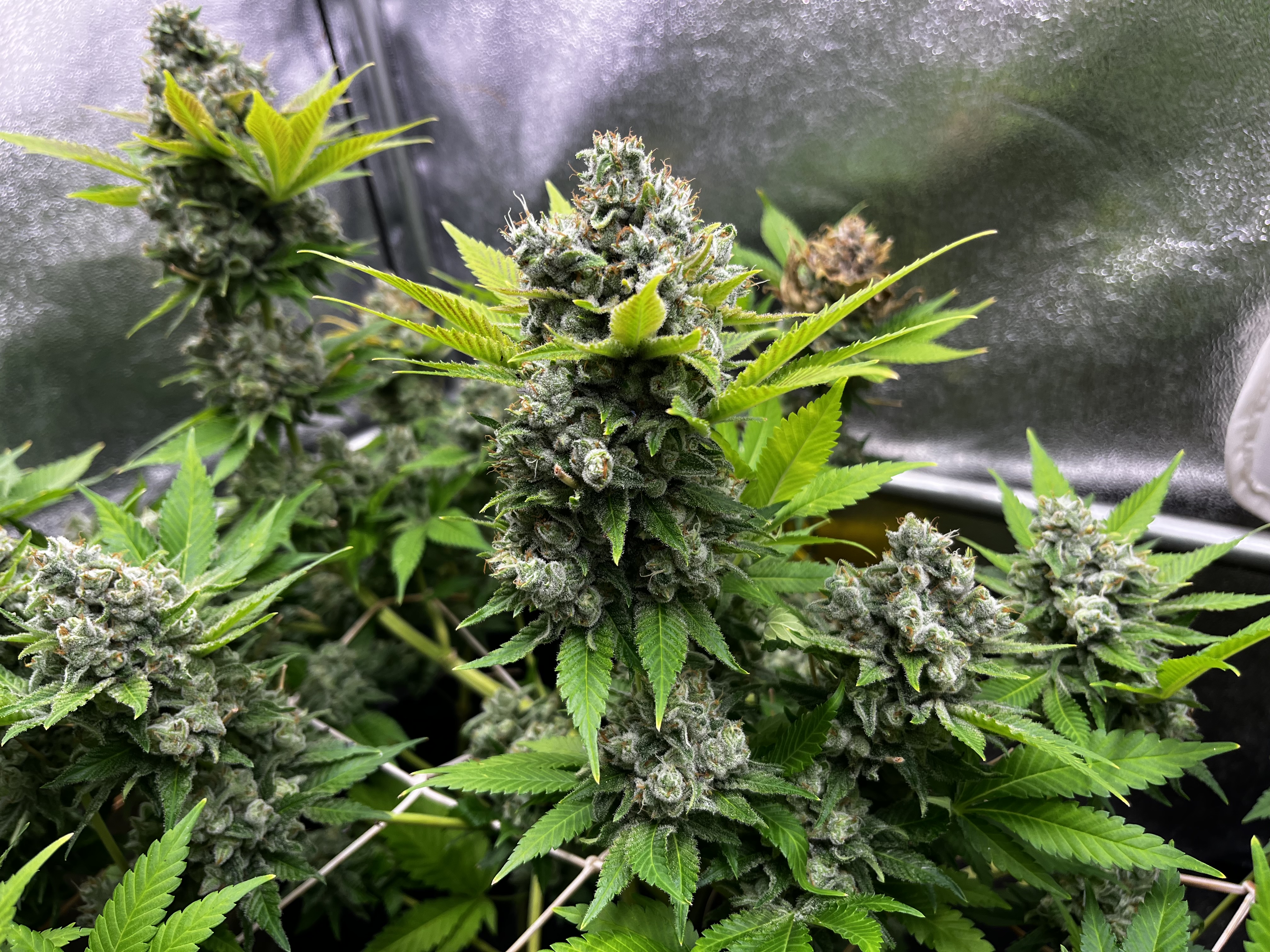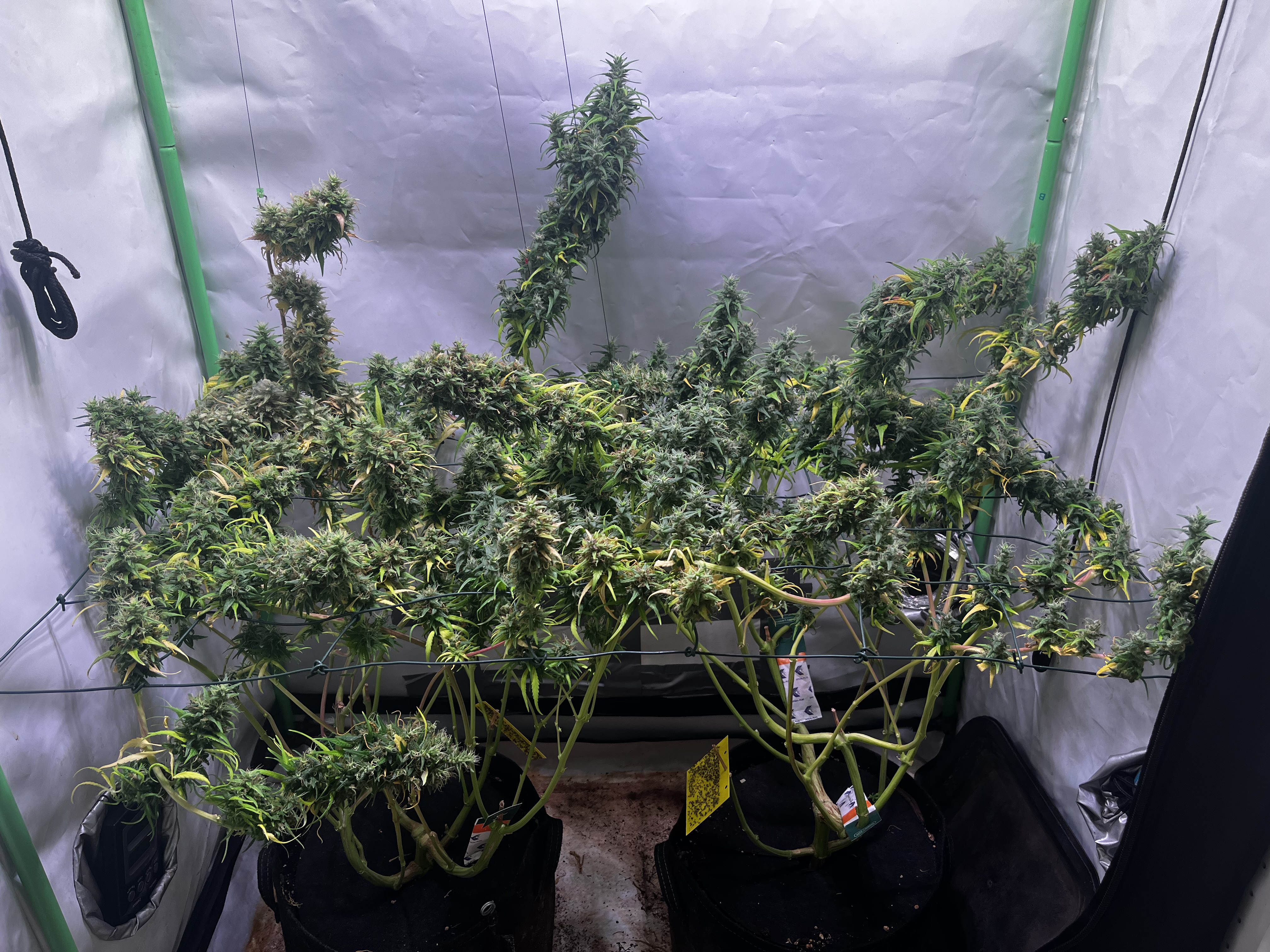 Das Nährstoffproblem hat sich noch weiter verschlimmert, aber mal kurz zur Herkunft. Nachdem ich vor ca 2 Wochen doch noch etwas Dünger gegeben habe, aufgrund von optischem Mangel hat sich das Fehlerbild weiter verschlimmert, also wurde etwas gespült. Der Anblick des Zelts ist eher semischön, viele Blätter sind gelb geworden und wurden entfernt. Zudem habe ich bemerkt, dass sich im Eck links hinten Spinnmilben angesiedelt haben und direkt gut zugeschlagen haben. Einzig der leichte Duft von Erdbeer relativiert etwas, bin gespannt wie’s in der Tüte schmeckt. Also alles in allem ein eher mieser Grow, notgeschlachtet wird demnächst wenn Zeit ist.