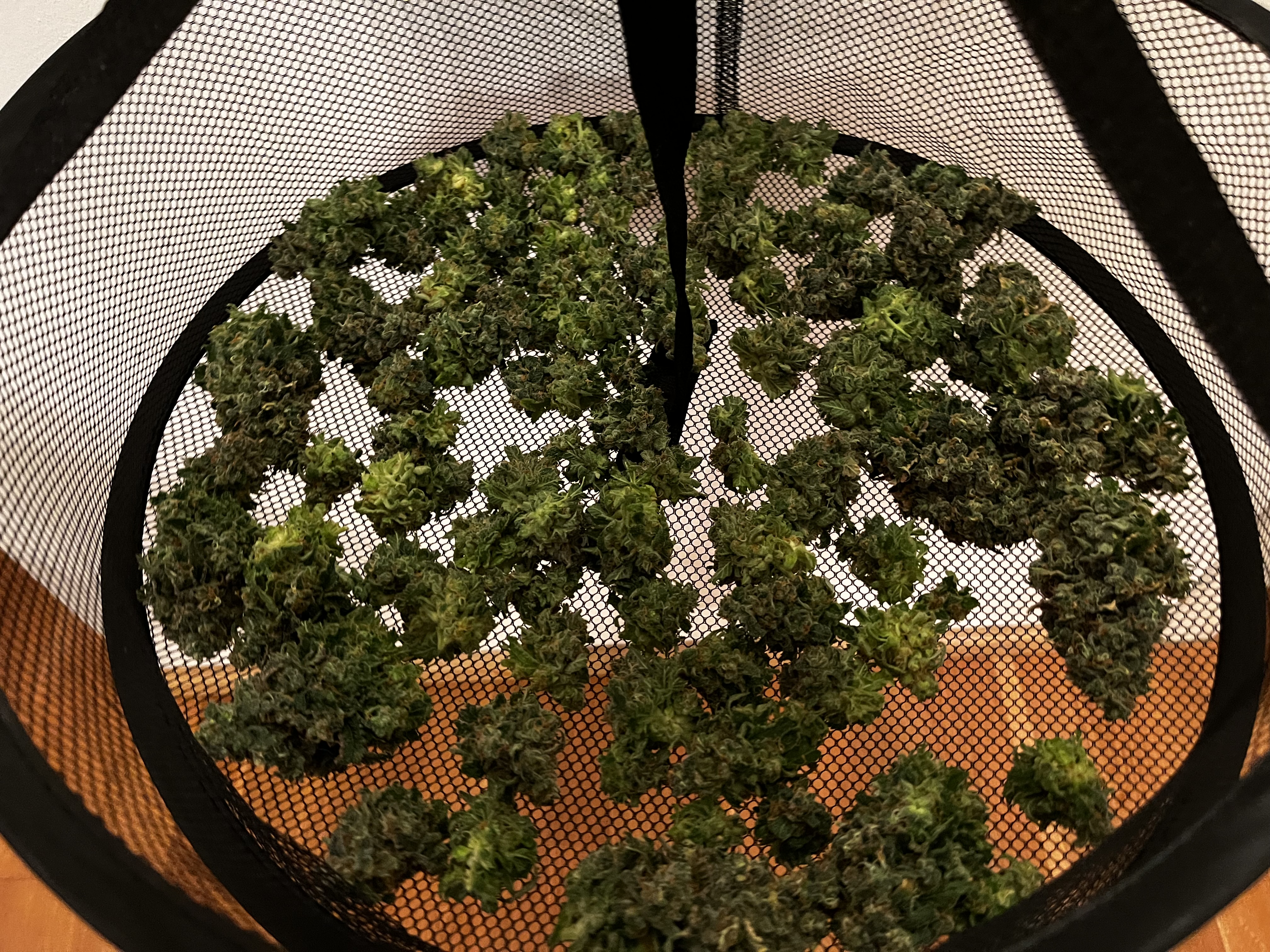 Heute wurde nun die beiden Strawberry Chemdawg OG Damen umgehauen und auf die Netze verfrachtet. Dafür, dass der Anblick im Zelt so mittelmäßig war, kommt wohl doch noch viel rum. Die Netze sind gut gefüllt und die Ausreifung war tiefer in den Buds doch schon etwas weiter.
