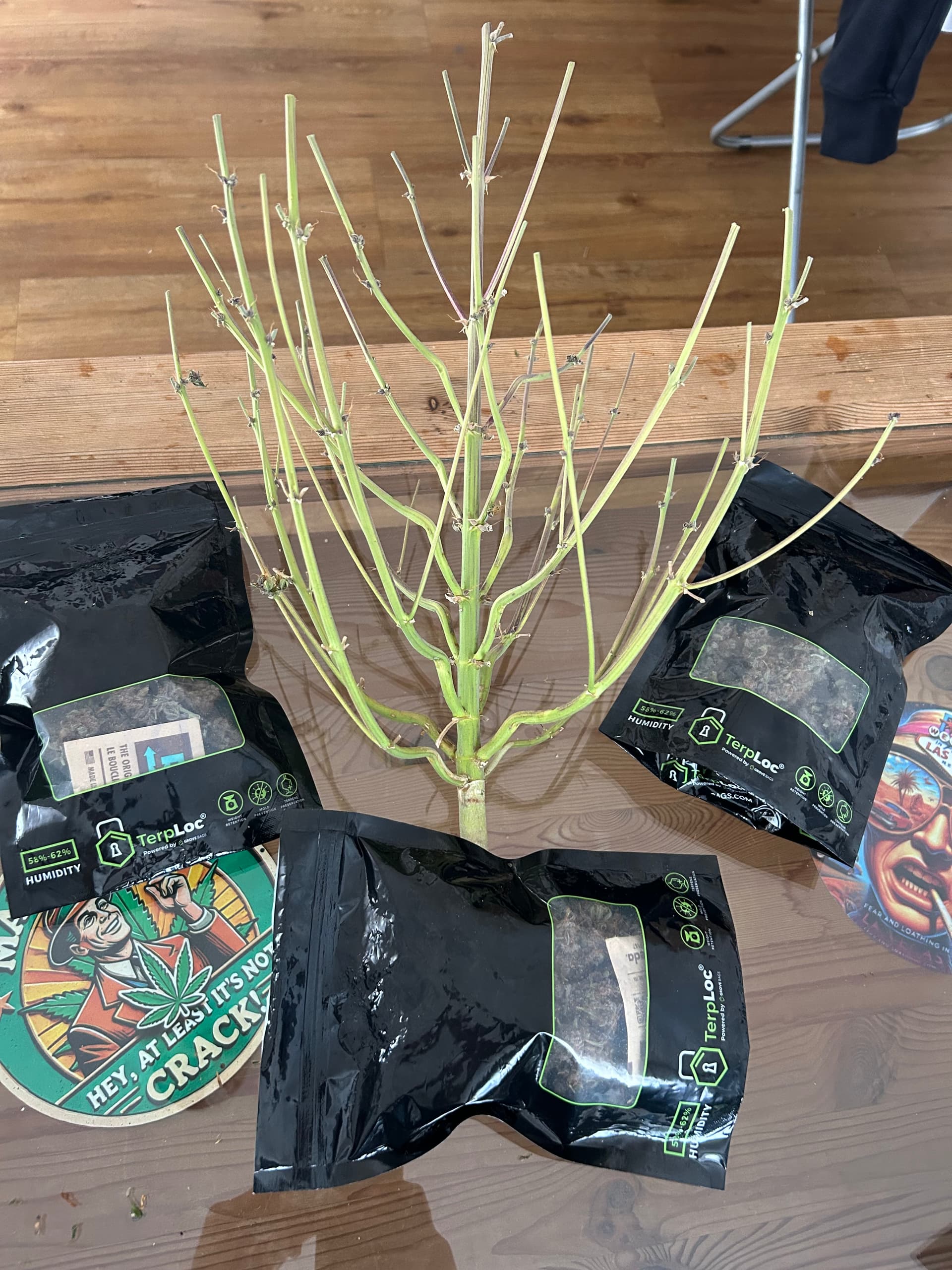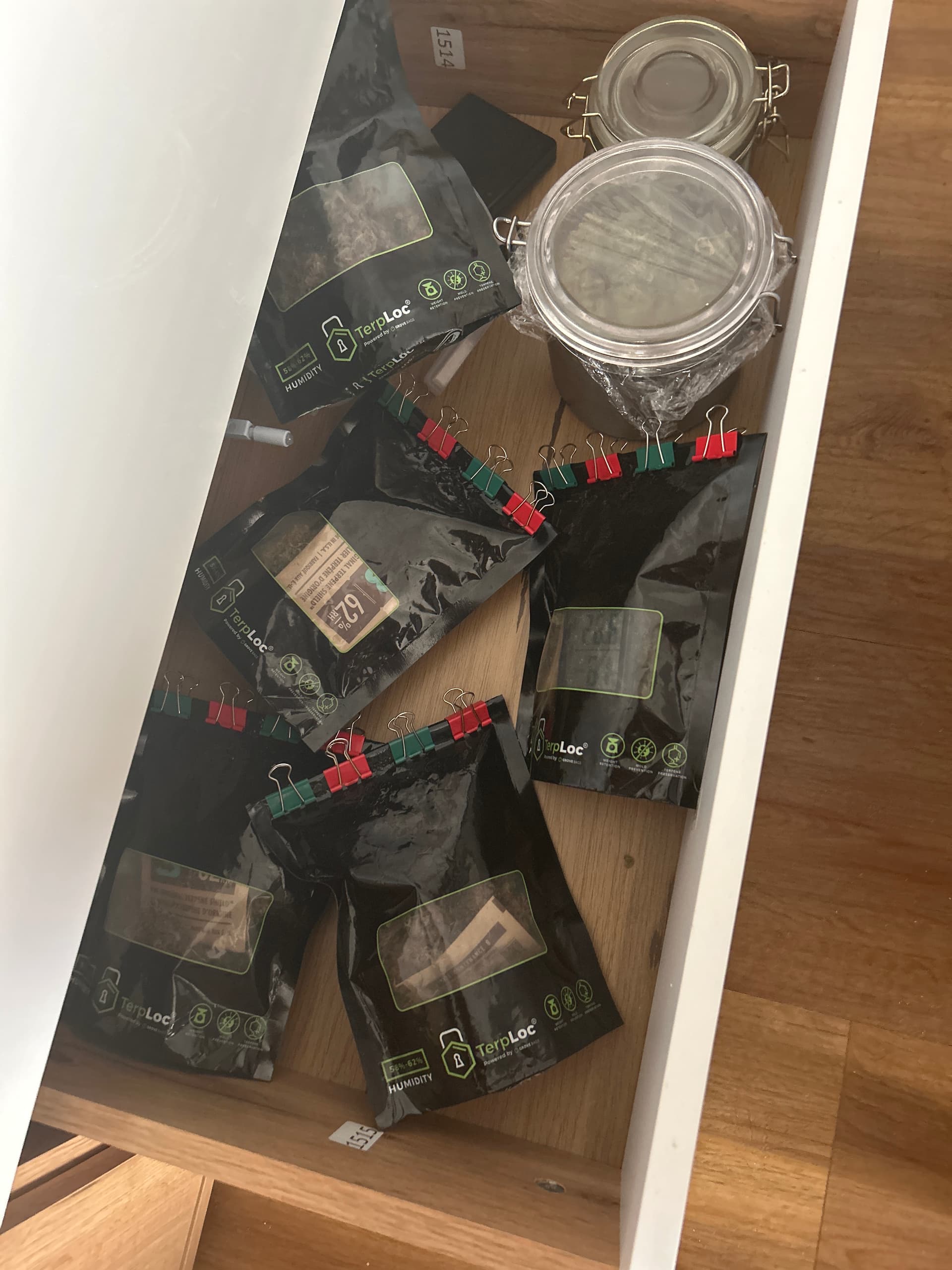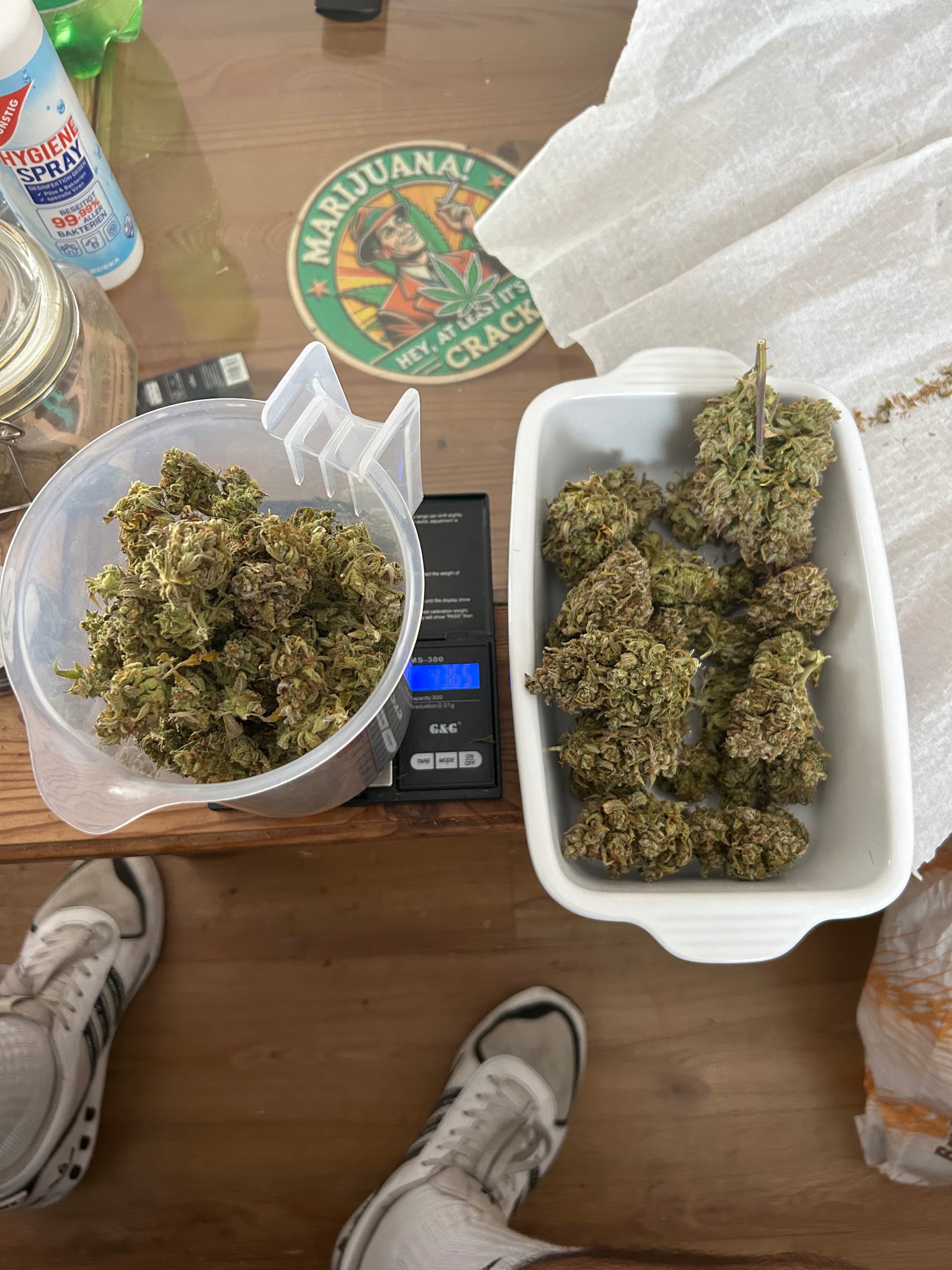 Und bei 57% waren es genau 85g also gingen nochmal 10g runter! Was ich aber schon vorgesehen hab! Die schöneren Buds sind in den Bags und werden da sehr lang (hoffentlich) curen.