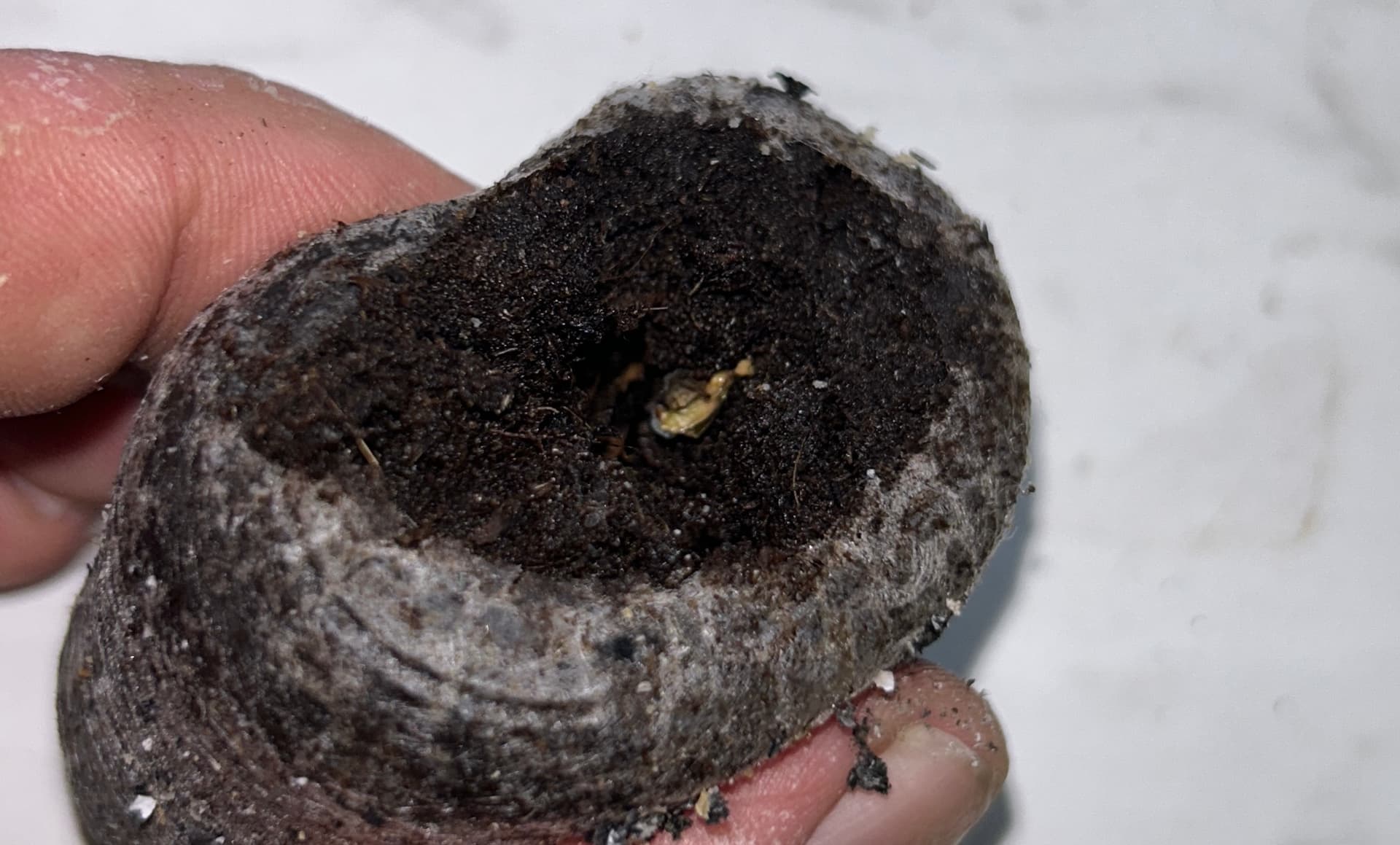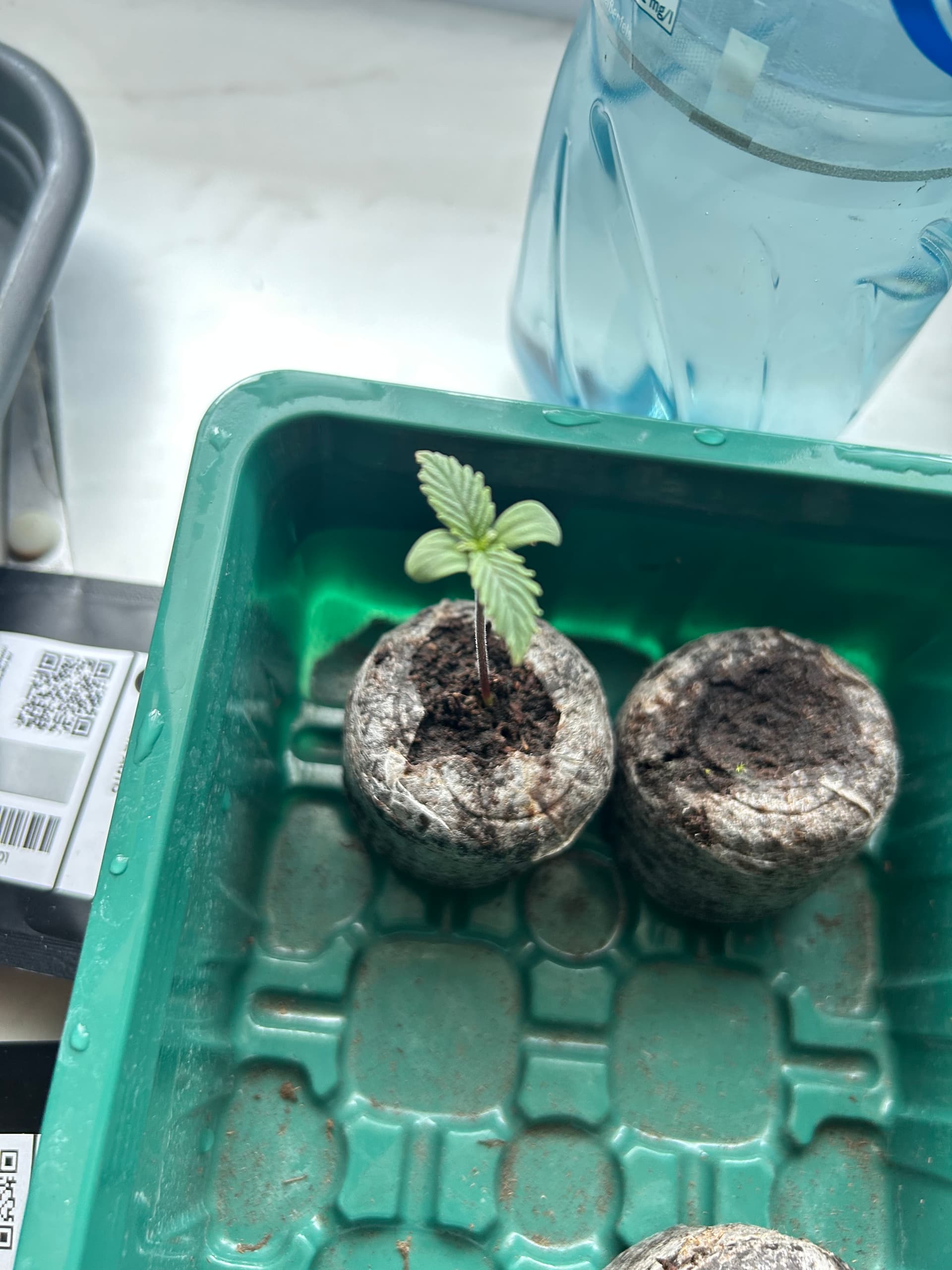 In 5g Mycrotrex als Wurzelstimulator und schön 1L Regenwasser mit ein kleinen Schlückchen EM aktiv und eine Winzigkeit Bio Melasse angegossen! Haube drauf und ab ins Zelt!
