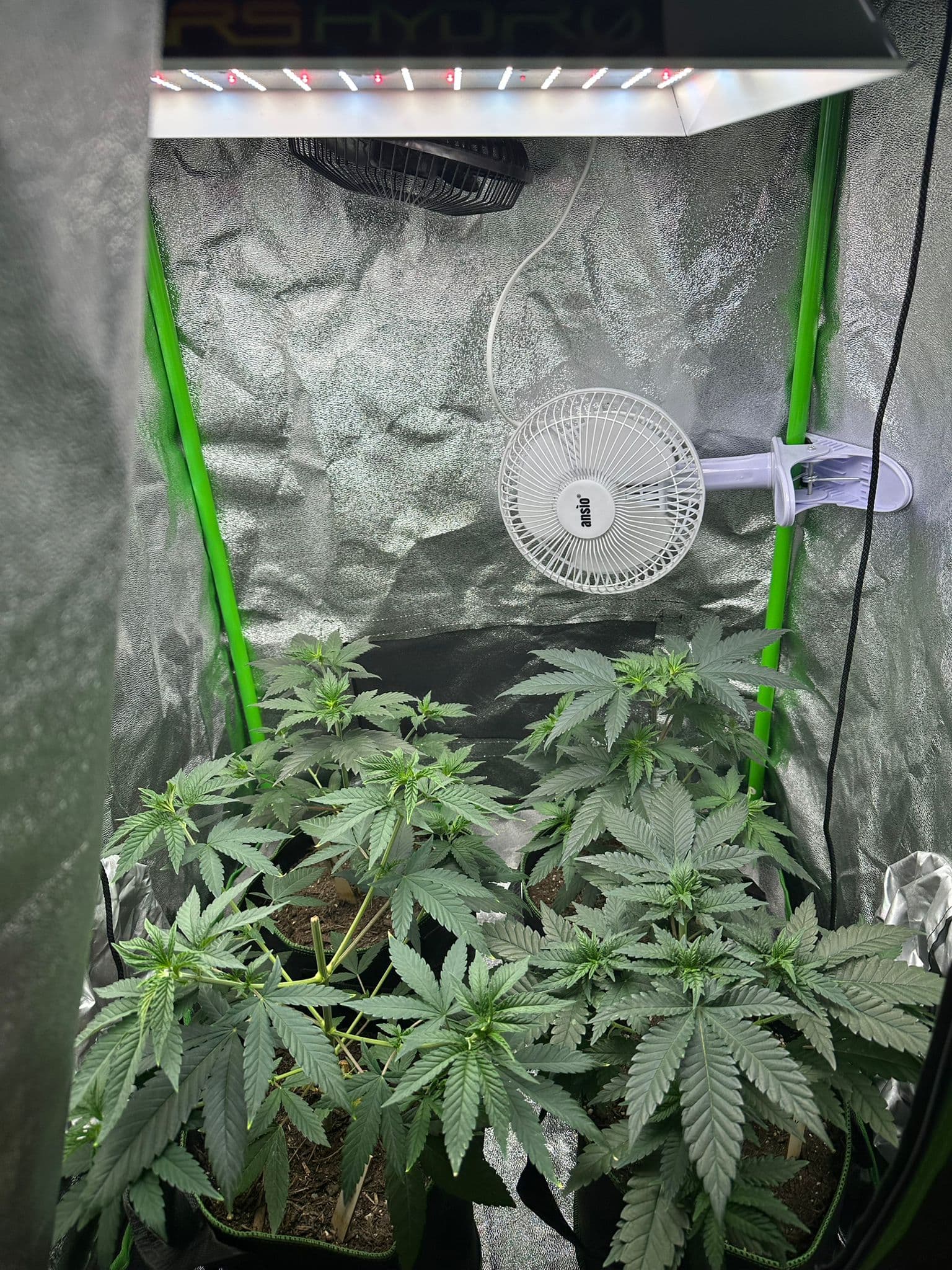 RLF ist aktuell noch sehr sekundär in deiner pflanzenphase, schimmeln kann da nix und bei hoher RLF (65-70% oder so) wachsen deine pflanzen schneller.