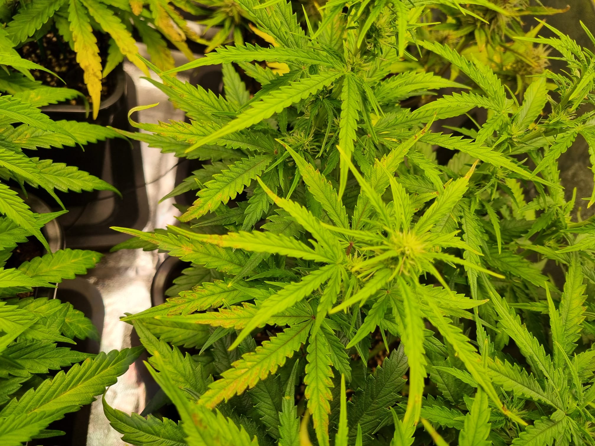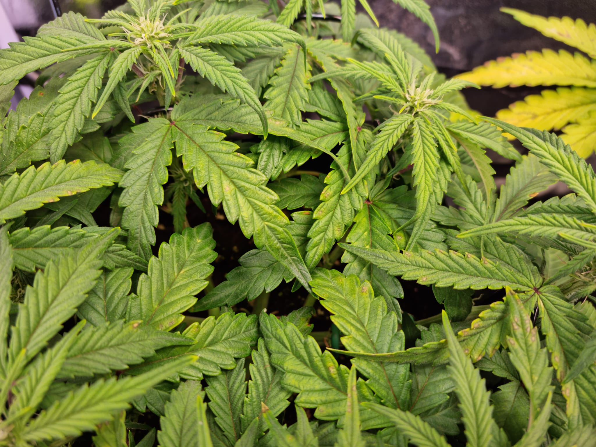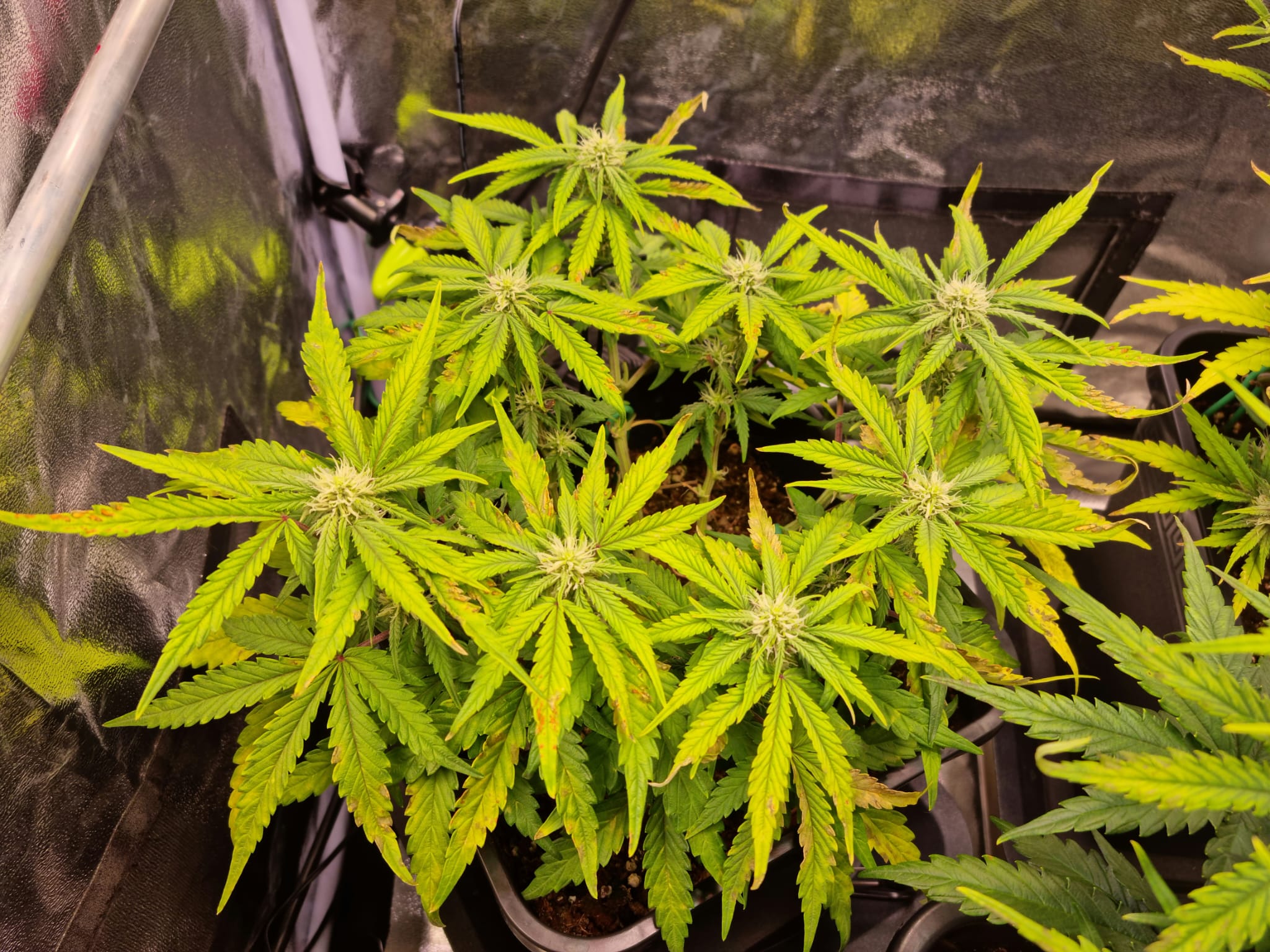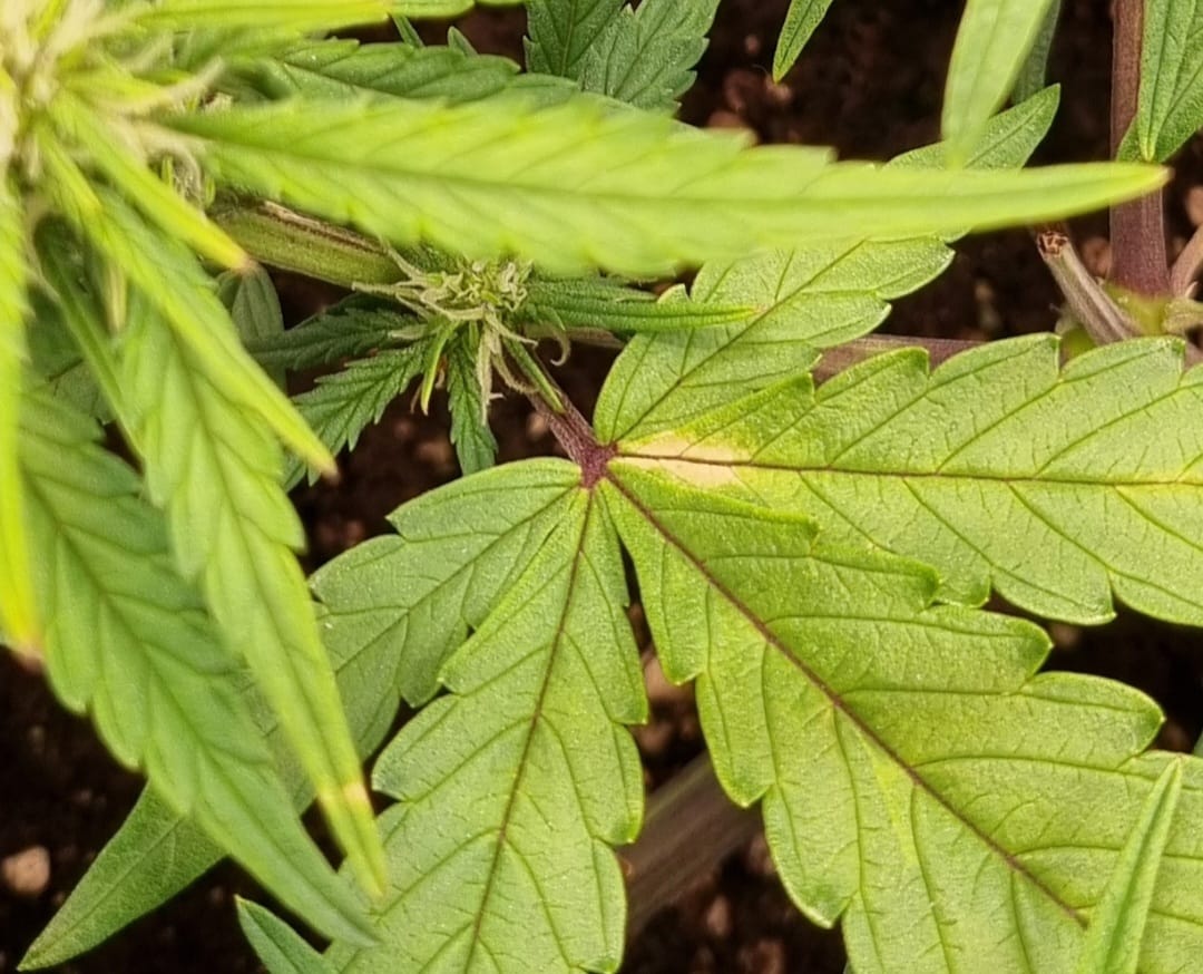 Wie soll es auch anders sein, Umstellung auf Blüte beginnt, und im unteren Bereich werden die ersten Blätter heller, die Flecken lassen nicht auf sich warten: