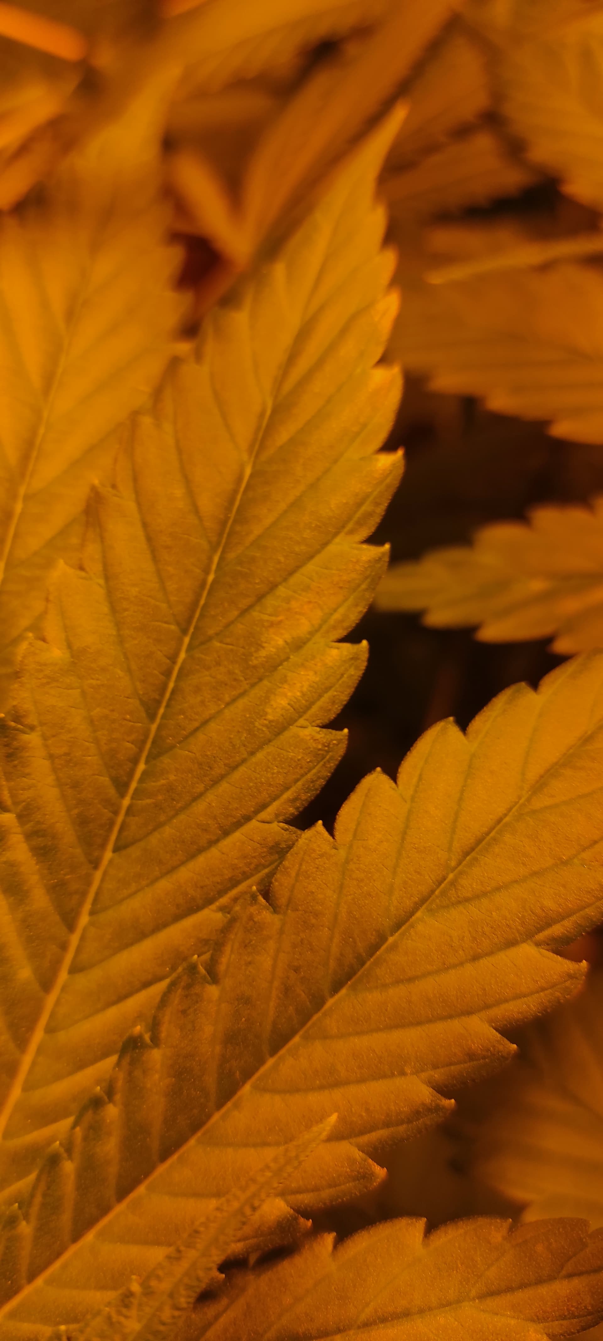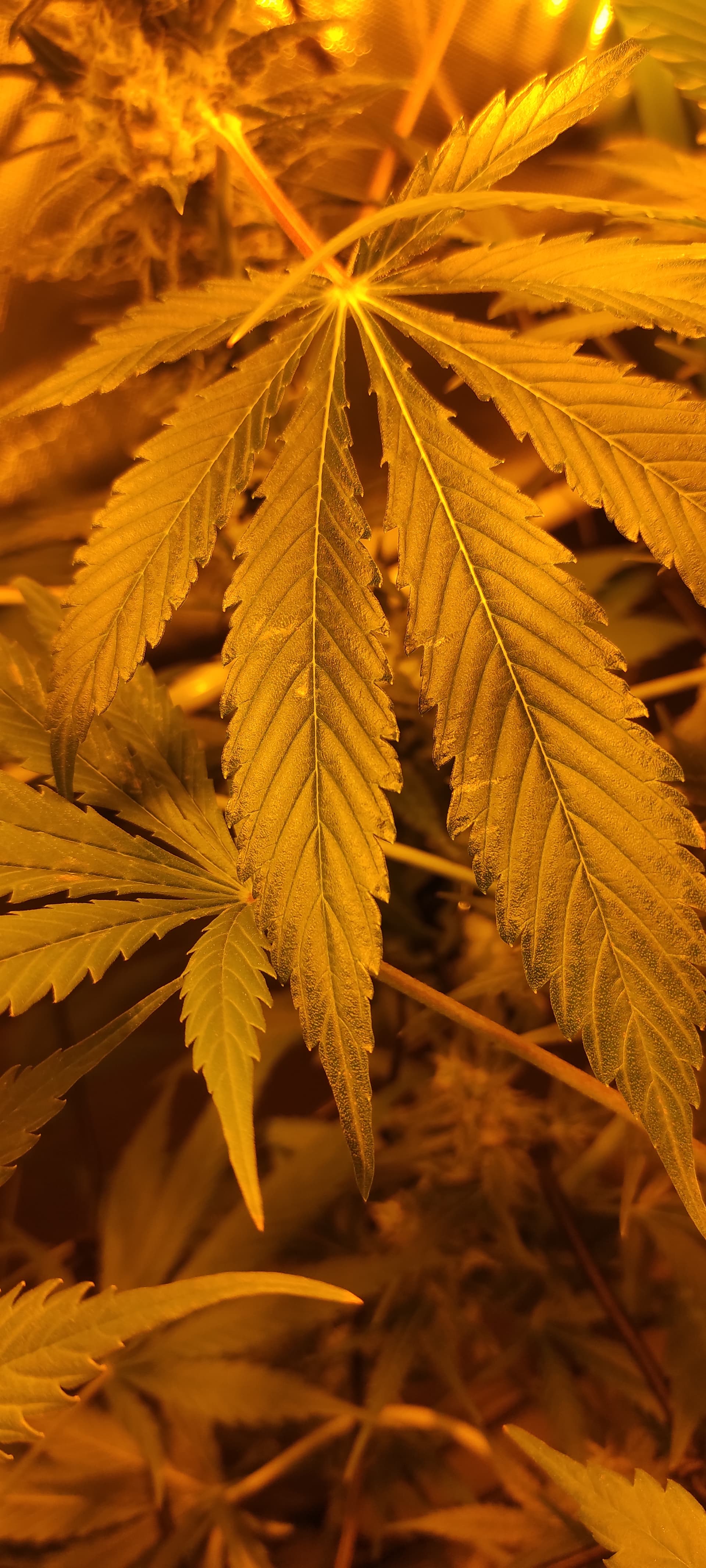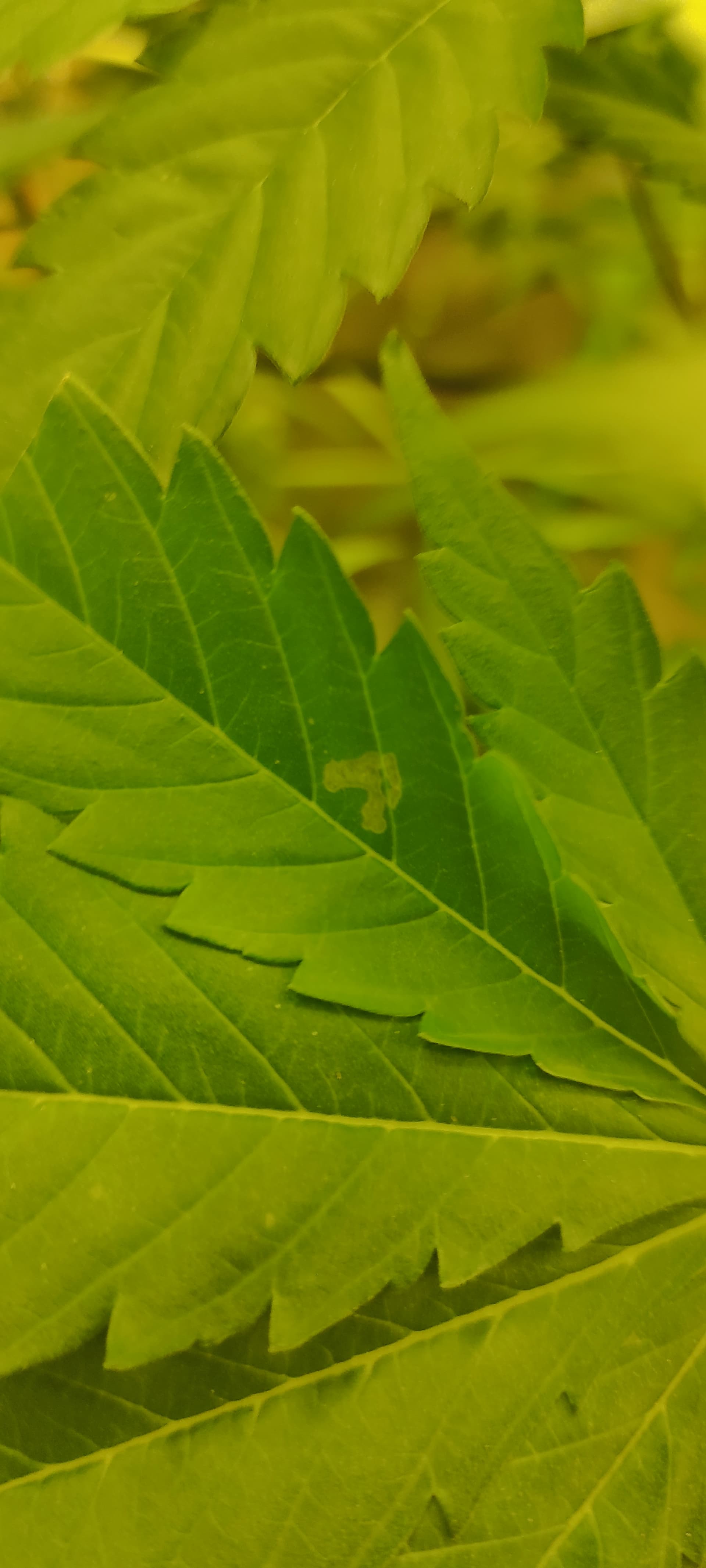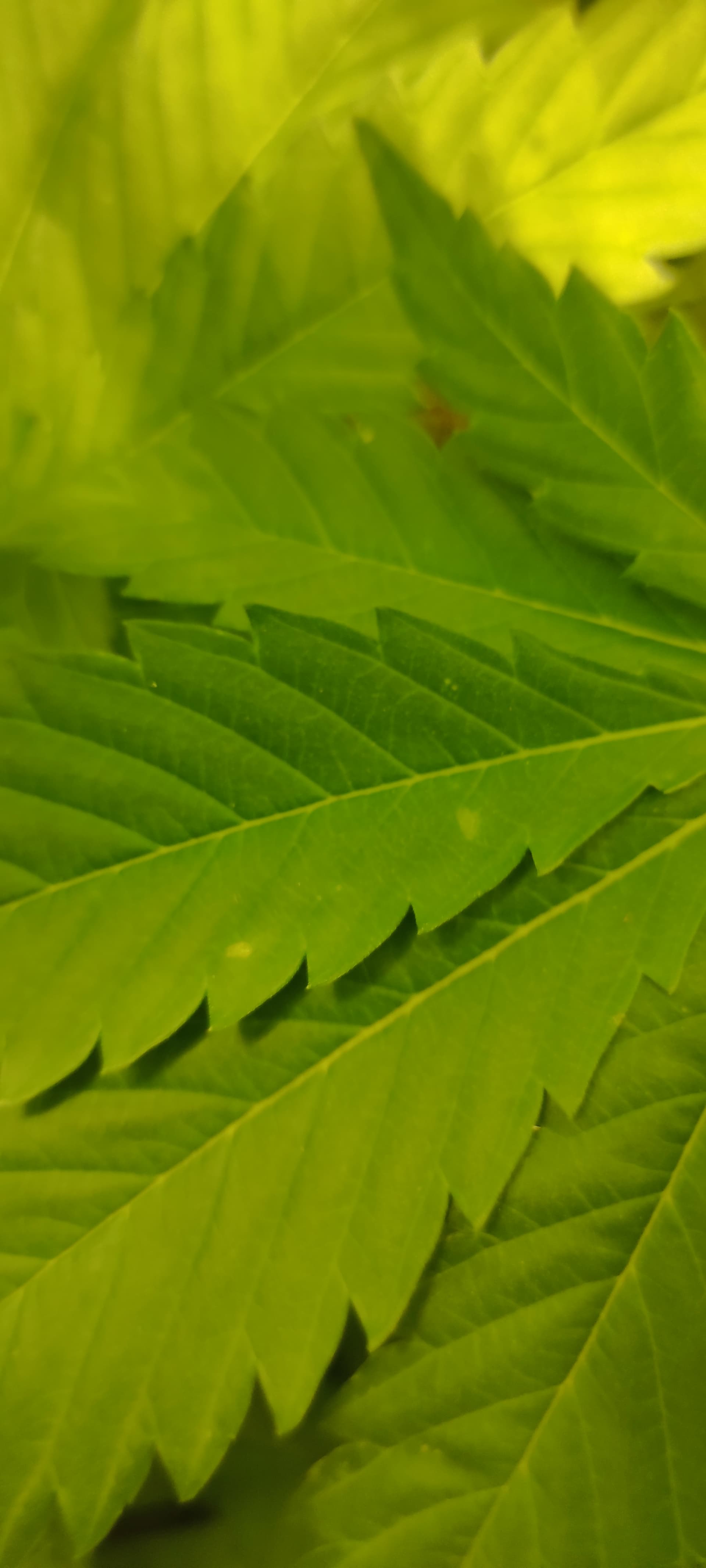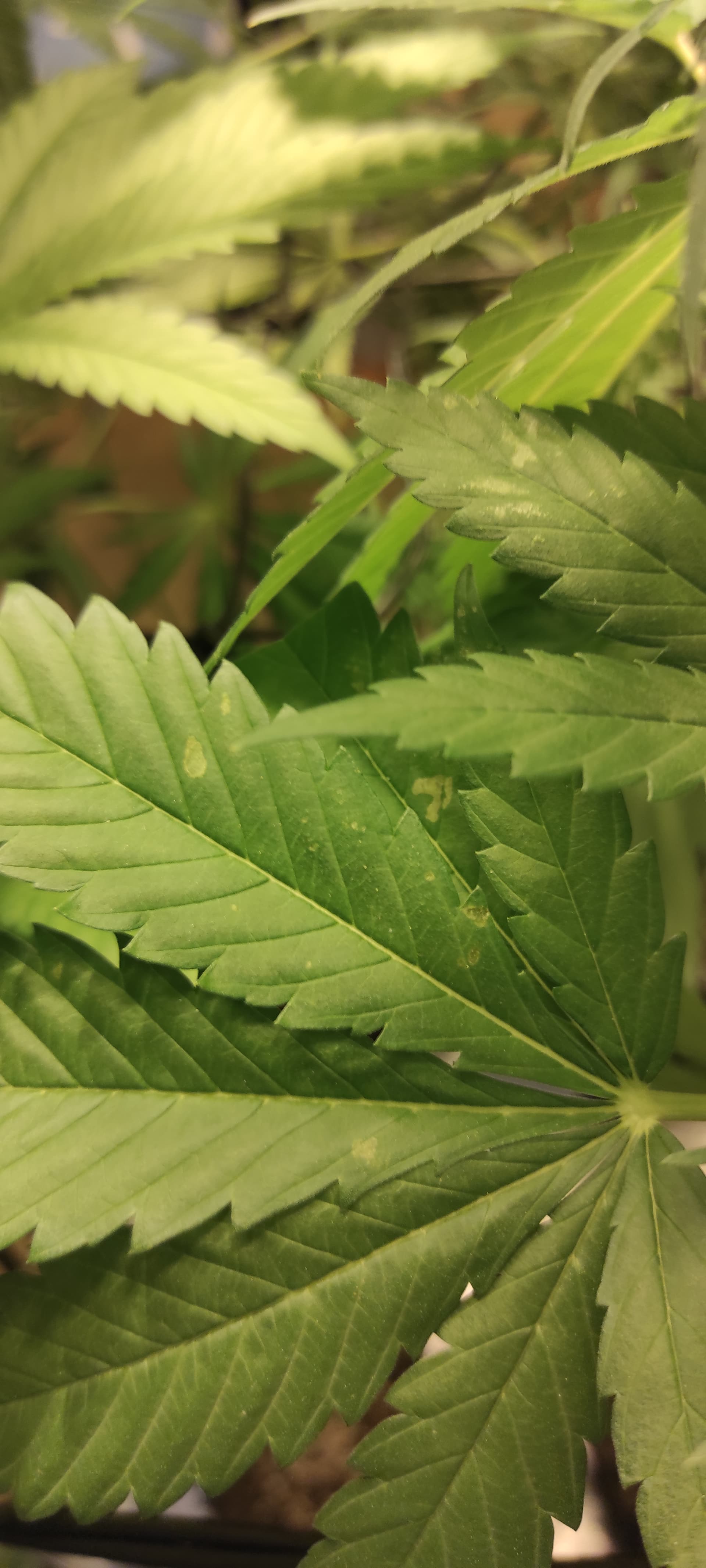 - Die Temperatur ist teilweise sehr hoch(>26°C), die Pflanzen haben zu wenig Abstand zur Lampe. Die Symptome sind aber alle an den mittleren Blättern.