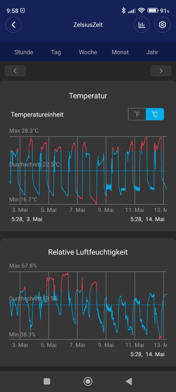 - Die Luftfeuchtigkeit geht über 60%, vor allem nachts, wenn das Licht aus ist.
