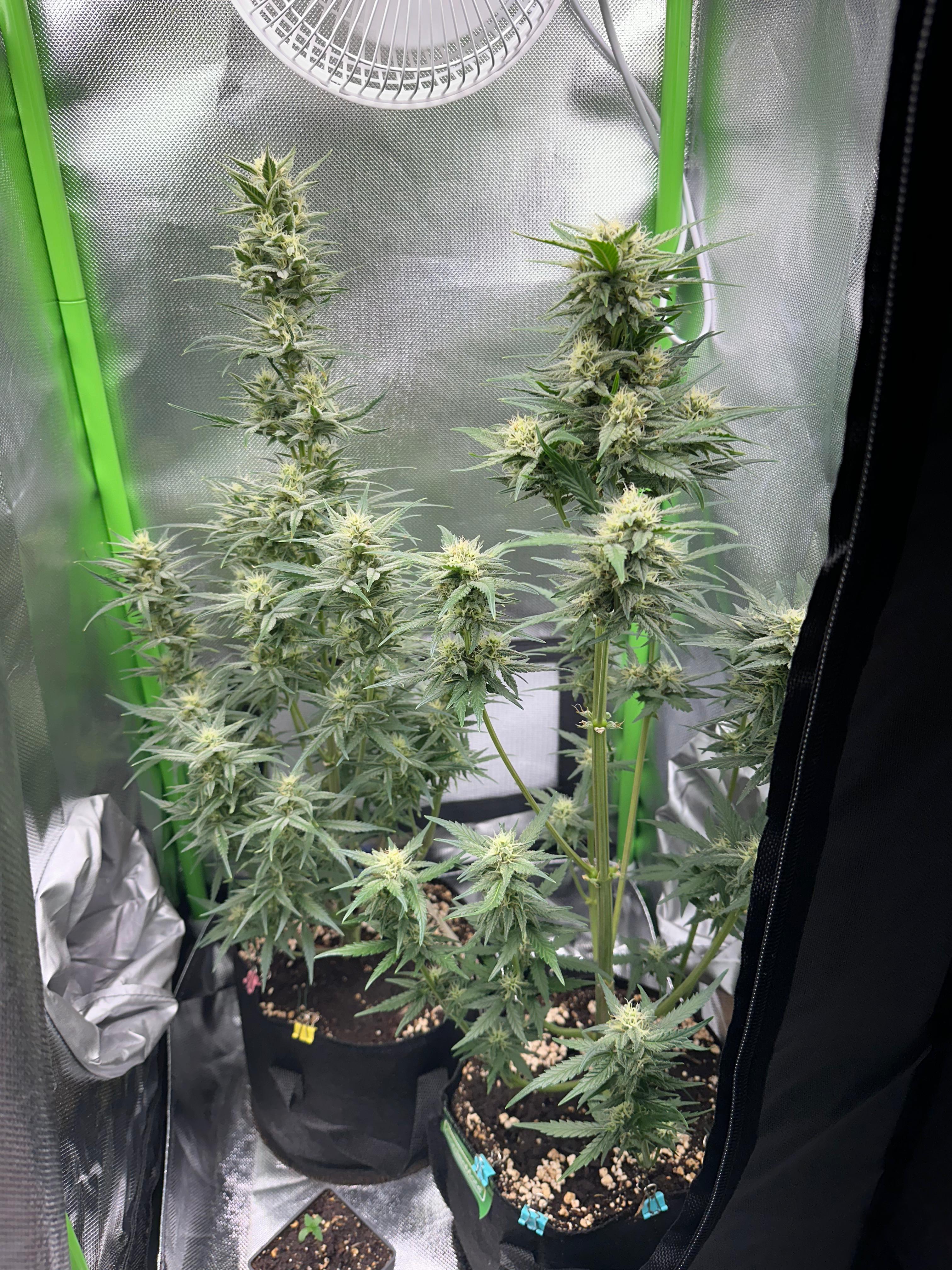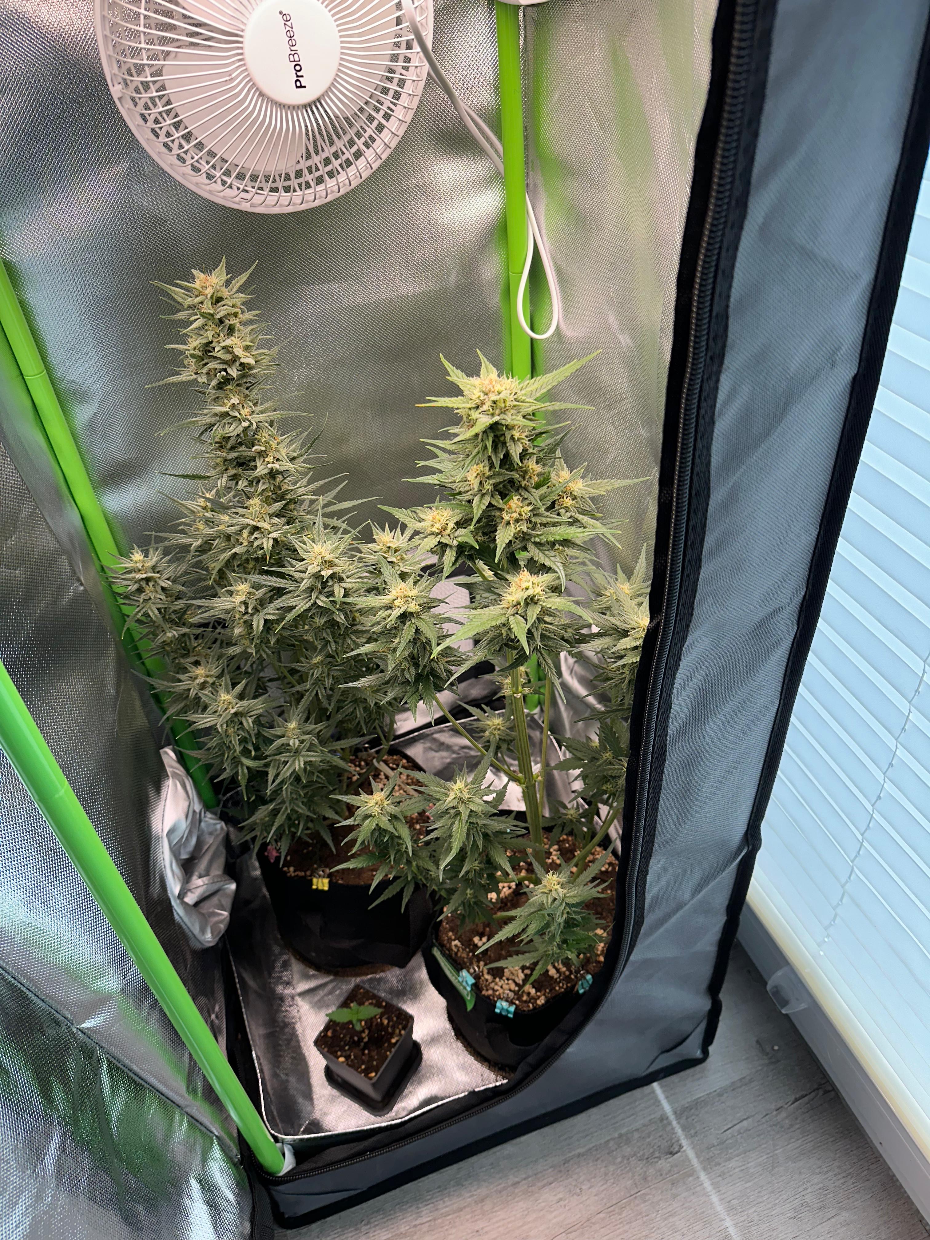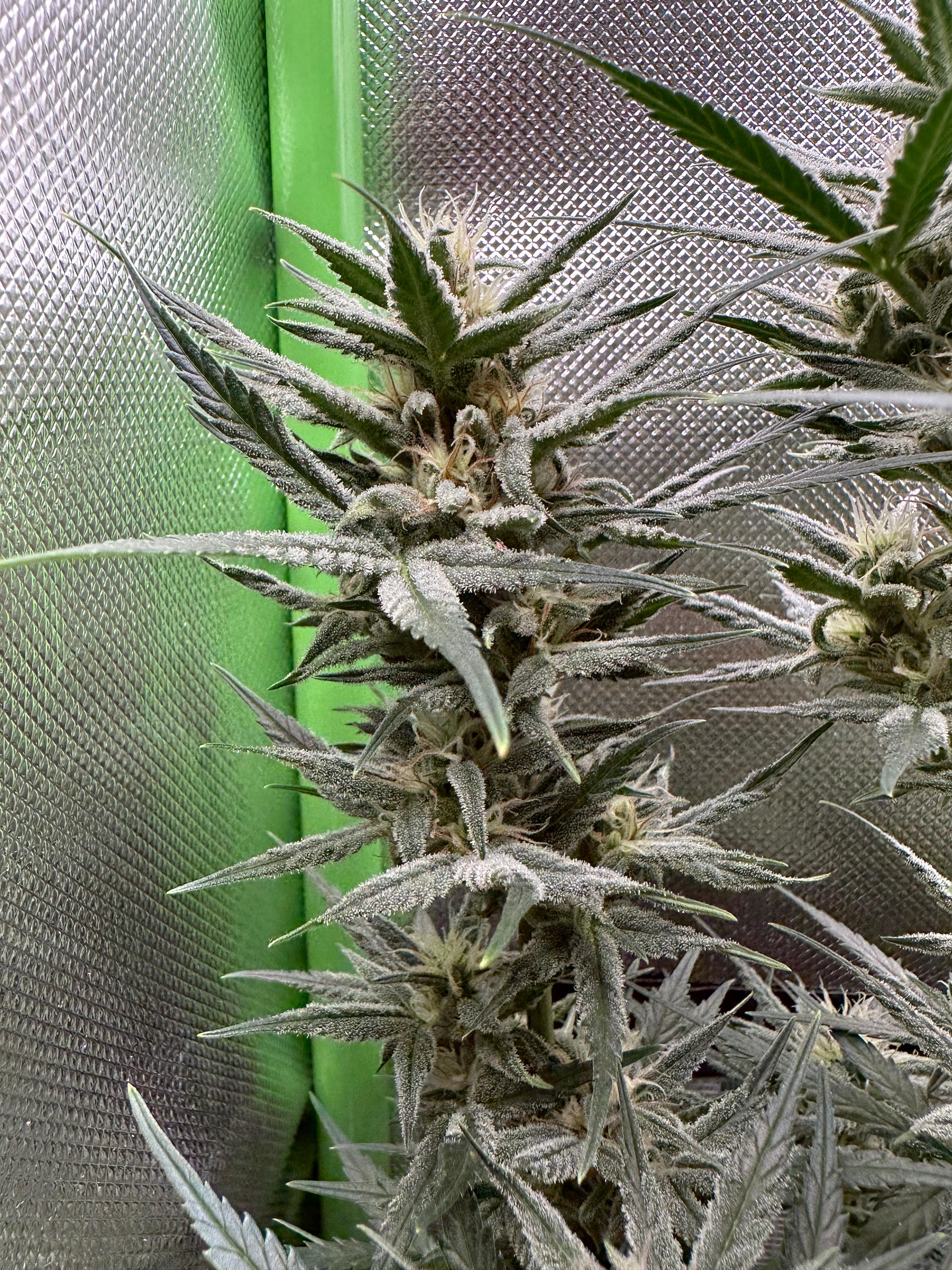 Eigentlich alles in Butter. Die Buds reifen vor sich hin. Die Pflanze sieht im allgemeinen recht gut aus. Ich denke, dass das Ziel der Ernte in 2 Wochen eingehalten werden kann. Der Geruch der beiden ist aber gerade auf einem Level… krass