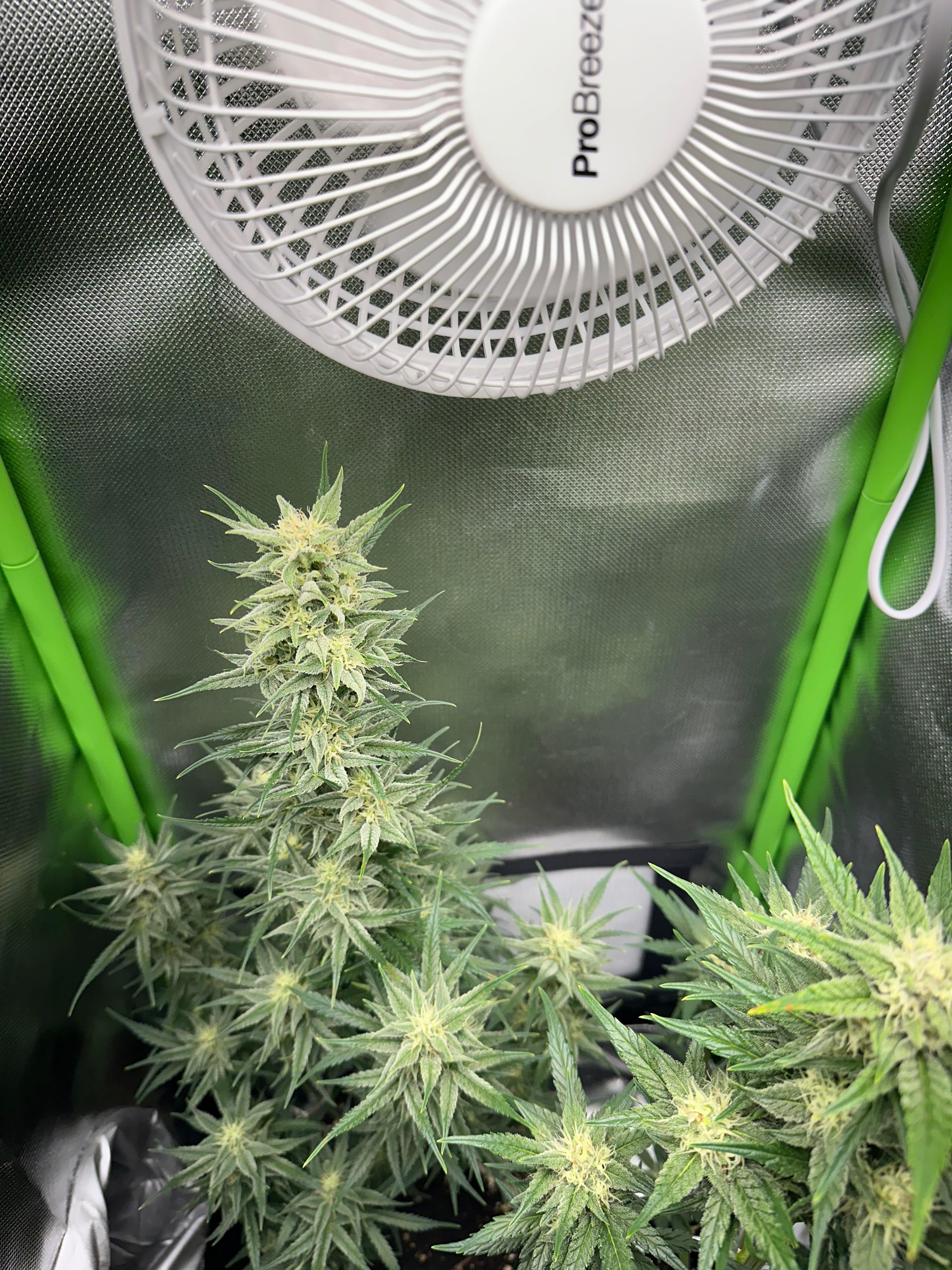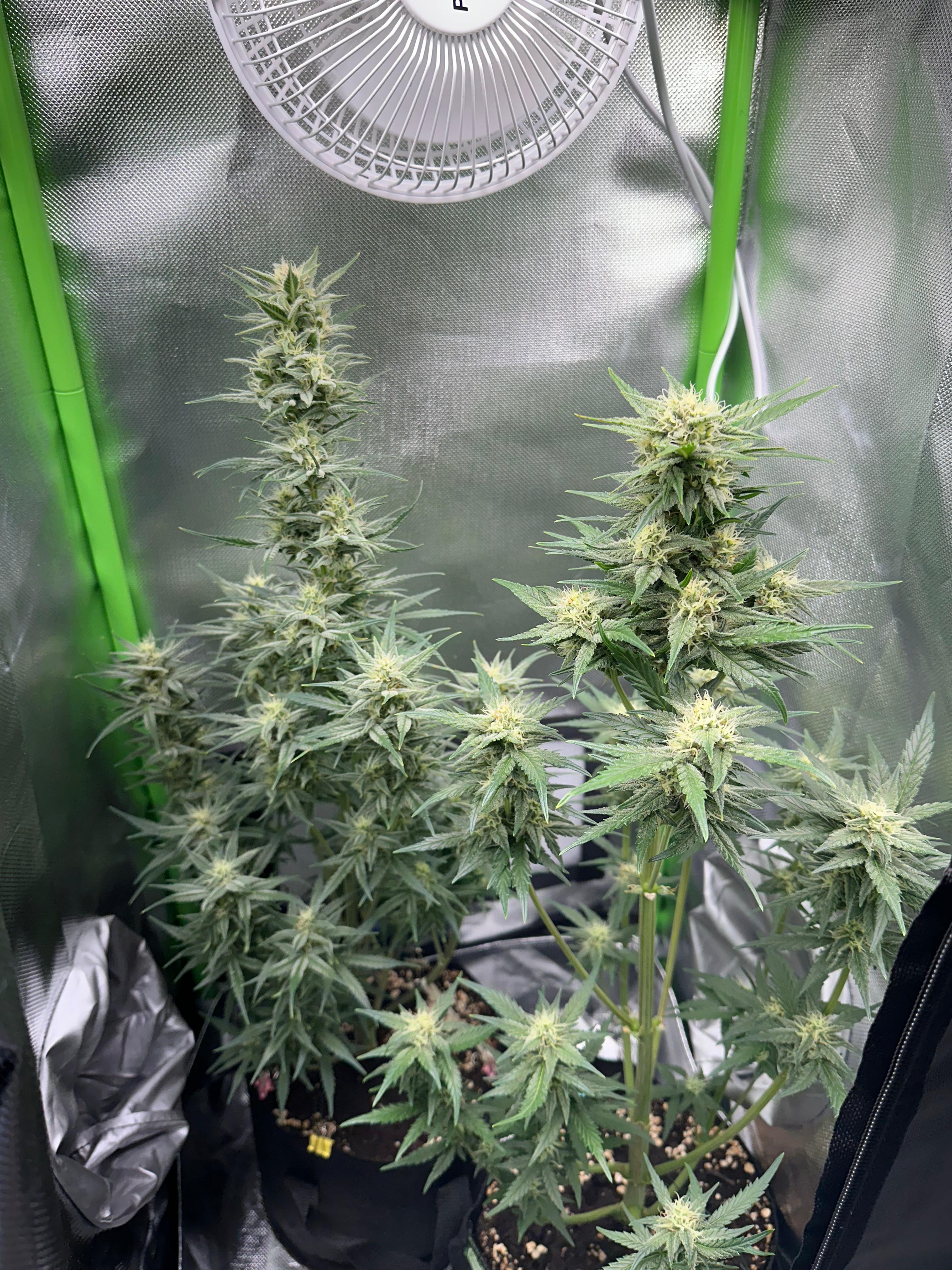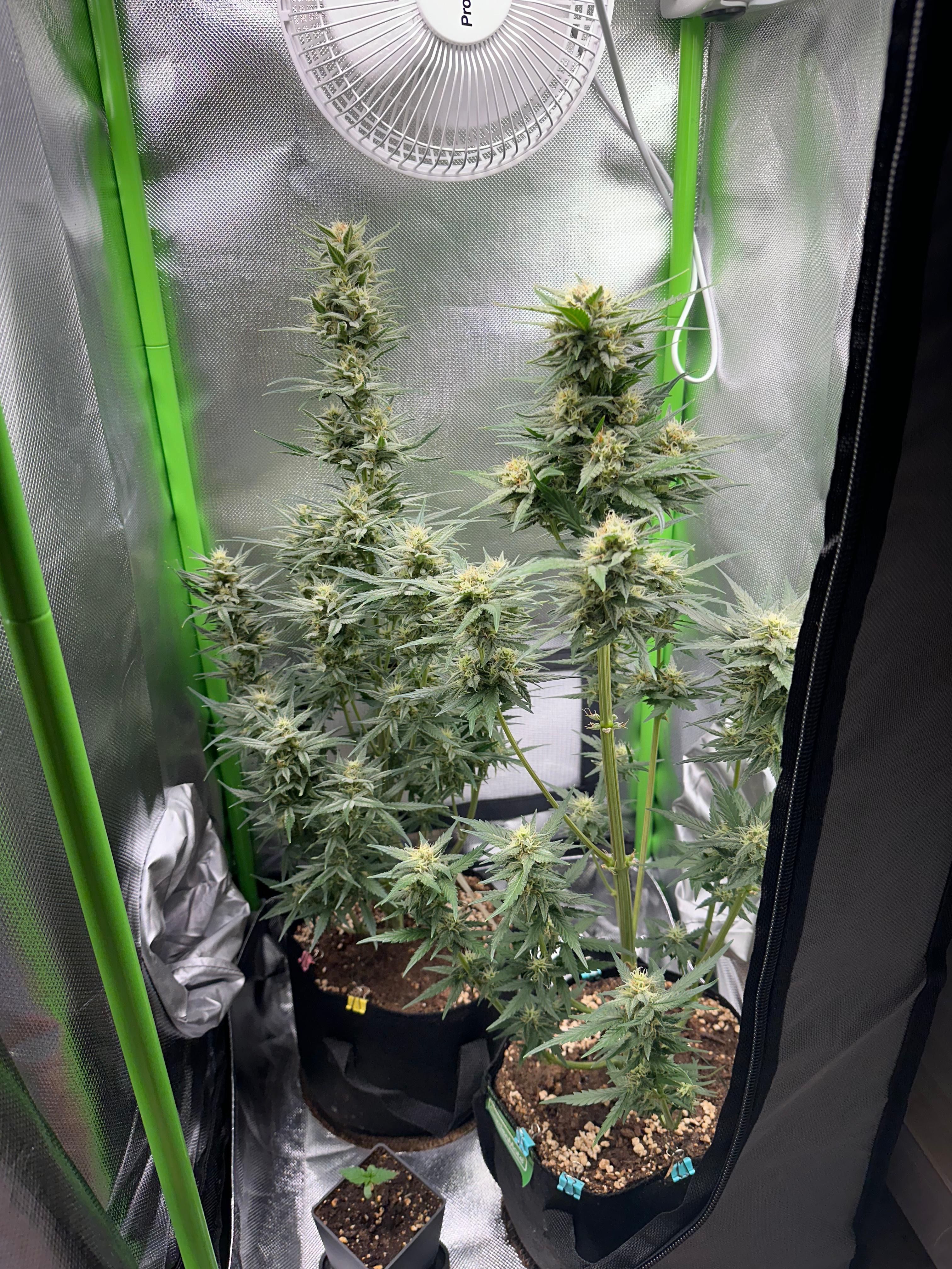 Eigentlich alles in Butter. Die Buds reifen vor sich hin. Die Pflanze sieht im allgemeinen recht gut aus. Ich denke, dass das Ziel der Ernte in 2 Wochen eingehalten werden kann. Der Geruch der beiden ist aber gerade auf einem Level… krass