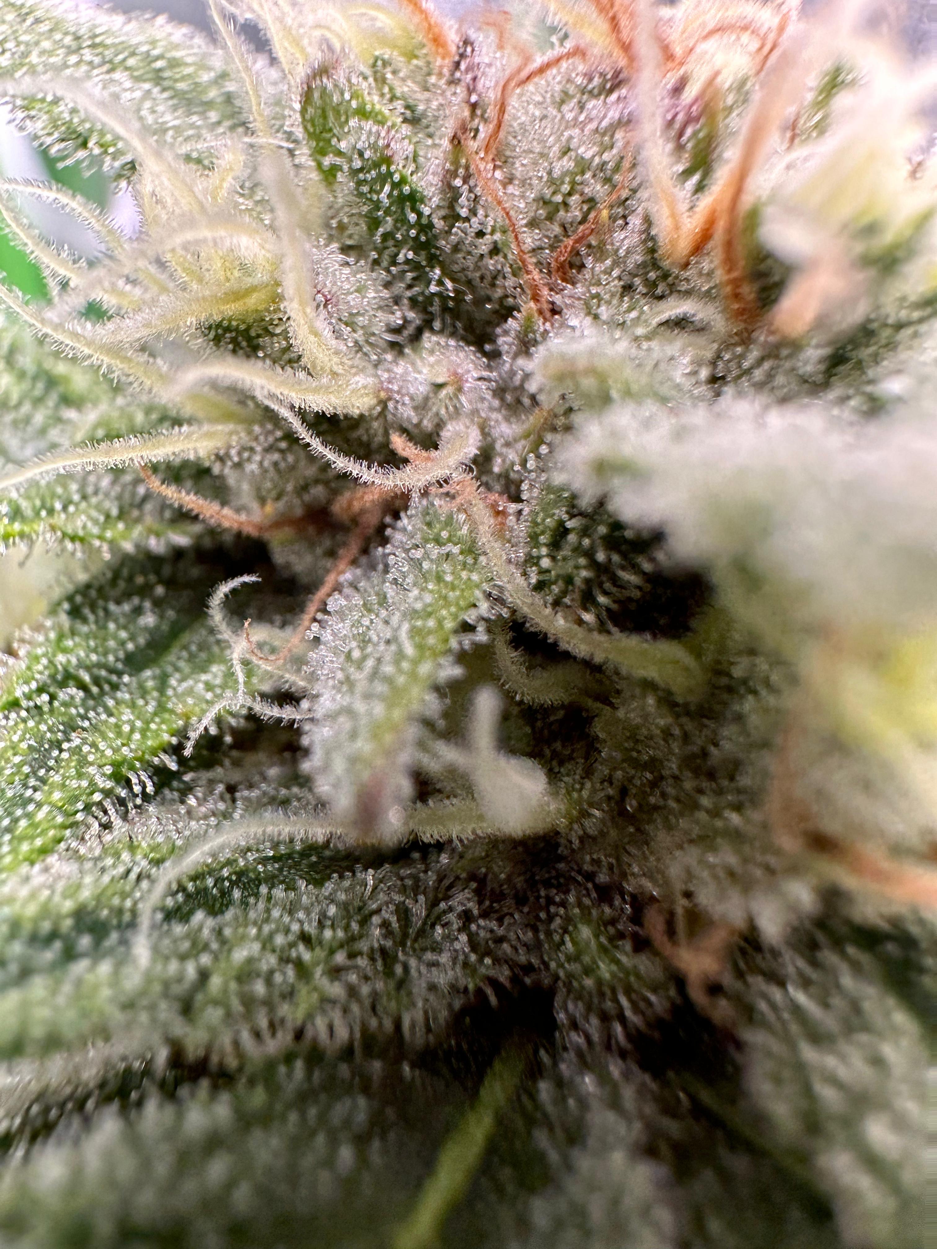 Ich habe ihm auch gesagt, er soll mal ein paar Aufnahmen der Trichome machen, da ich aktuell an den Punkt komme, wo ich überlegen muss, wann ich zu düngen aufhöre.