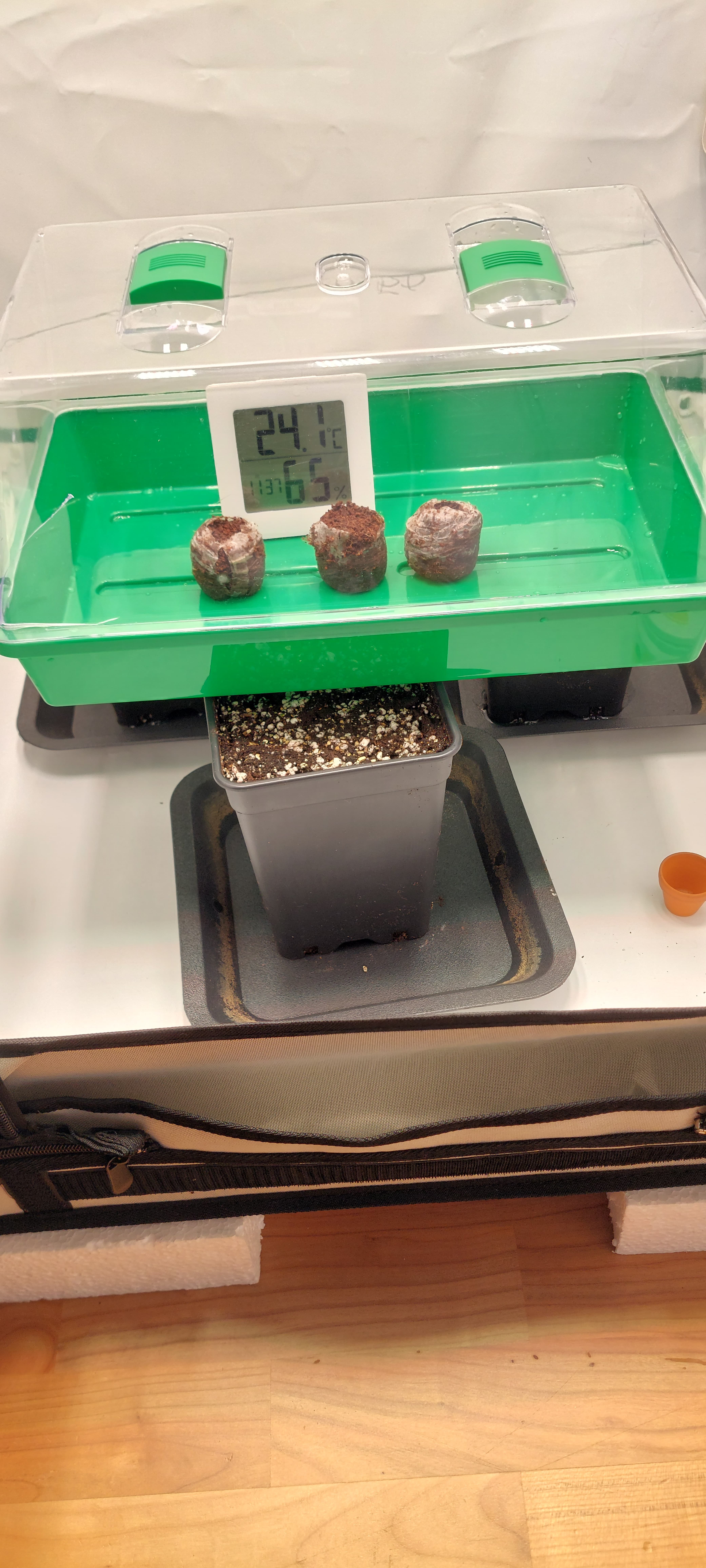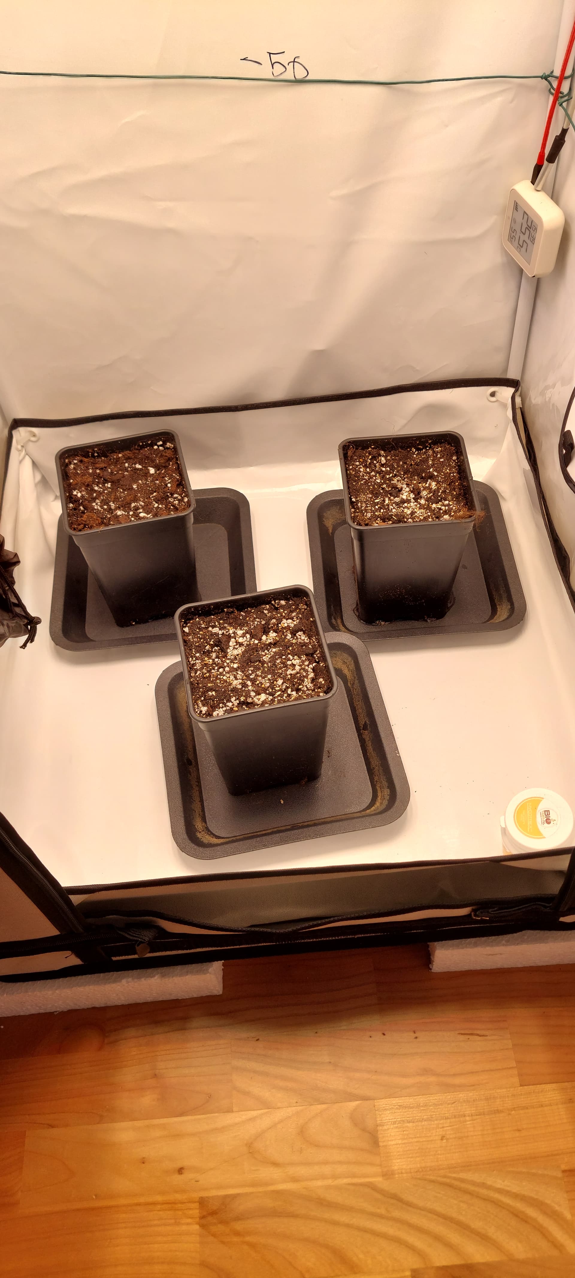 Das ist der aktuelle Stand, nun heisst es warten und hoffen dass min. 2 keimen. Sollten alle drei schlüpfen, habe ich für Nummer 3 einen besonderen Topf (unten rechts) ![]()