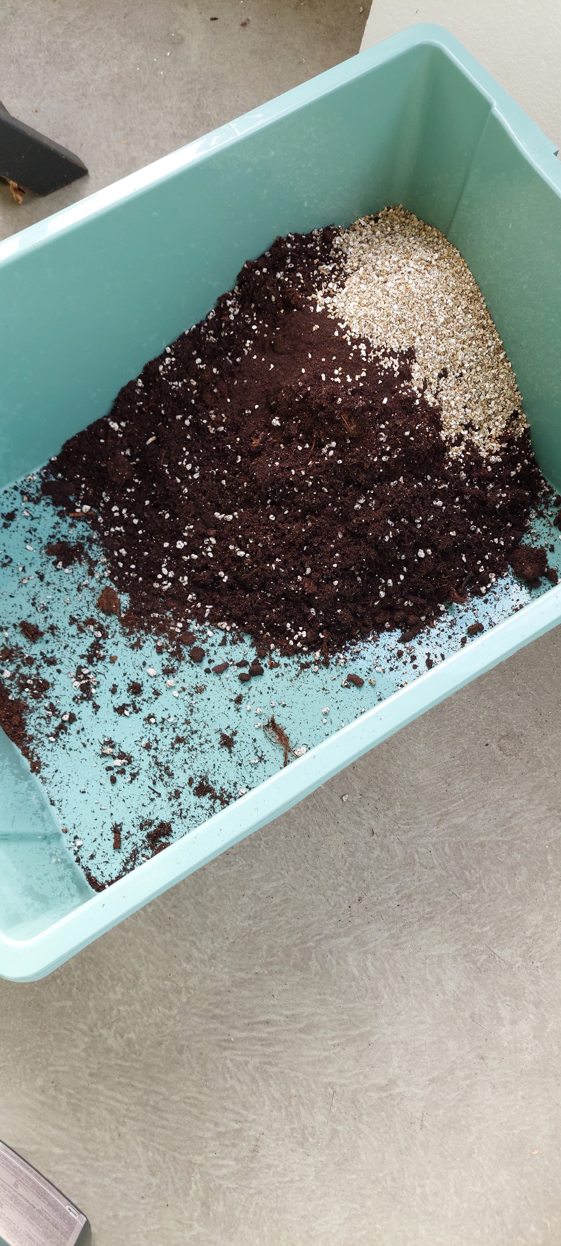 Weil heute das Wetter so schön war, habe ich aufm Balkon gleich noch die andere Erde zusammengemixt.