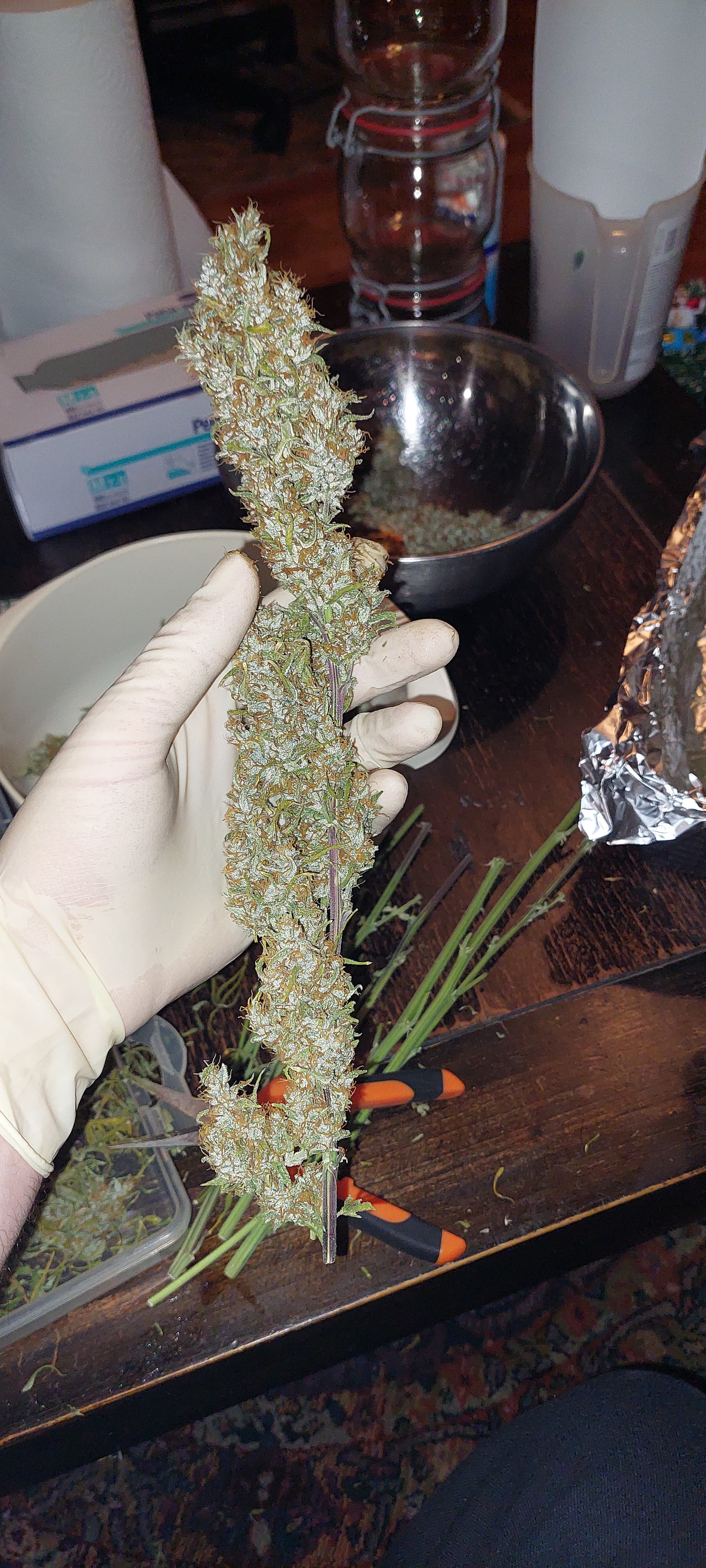 Ich habe die Abluft auf Stufe 2/5 gefahren und noch 2 der USB Lüfter oberhalb und unterhalb der Buds pusten lassen. Das Ergebnis ist ein/e Ungleichmäßige Trocknung mini Tornado im Zelt. Schade, da ich diesmal bei ±5 75% einglasen wollte nach Schema Growlege @ExStrain , jetzt sinds eben ~62% im Glas. Erfahrung Trocknung +1 mit dieser Konfig. ![]()