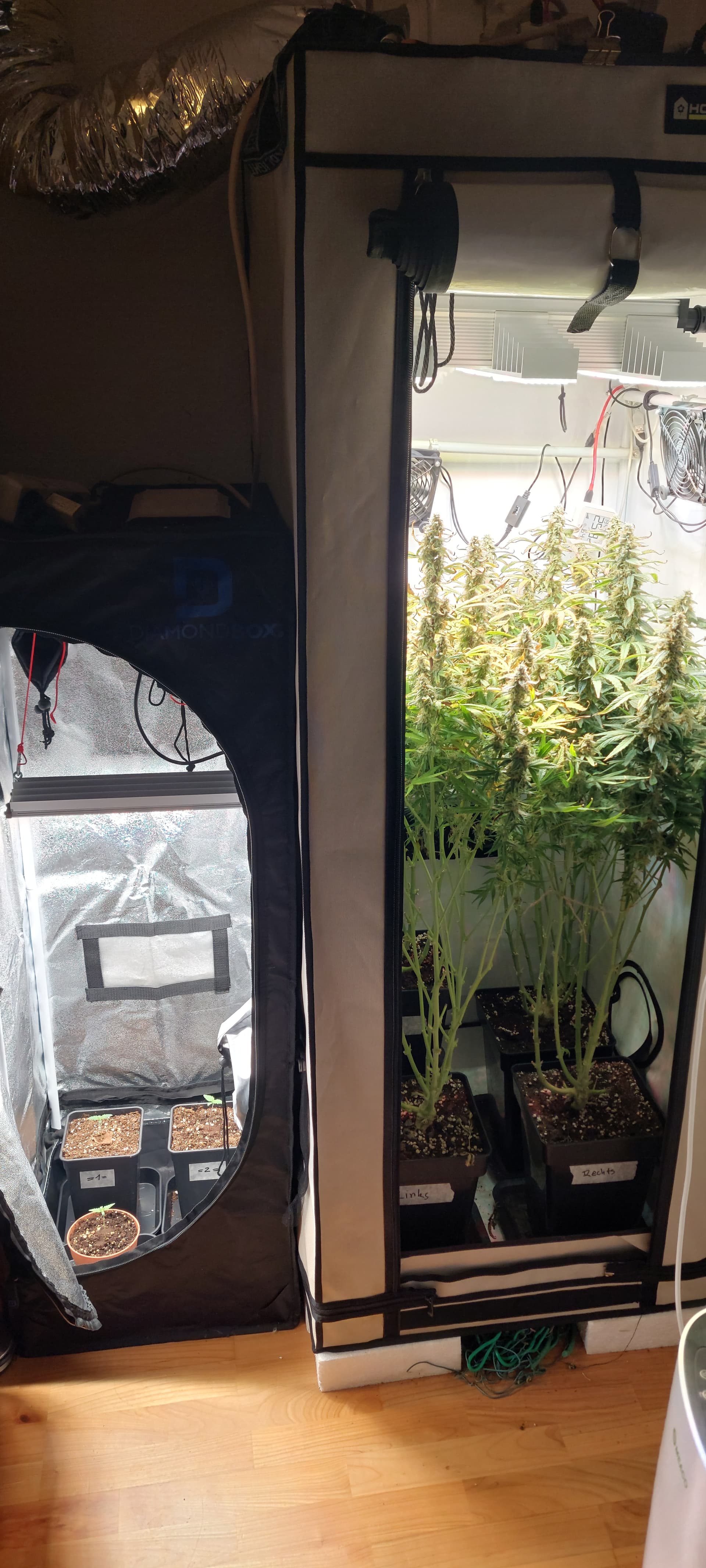 Location: (Erstes Mal mit) Zelt2: Anzucht im 40x40x120, danach in Zelt1: 60x60x160 HomeBox.