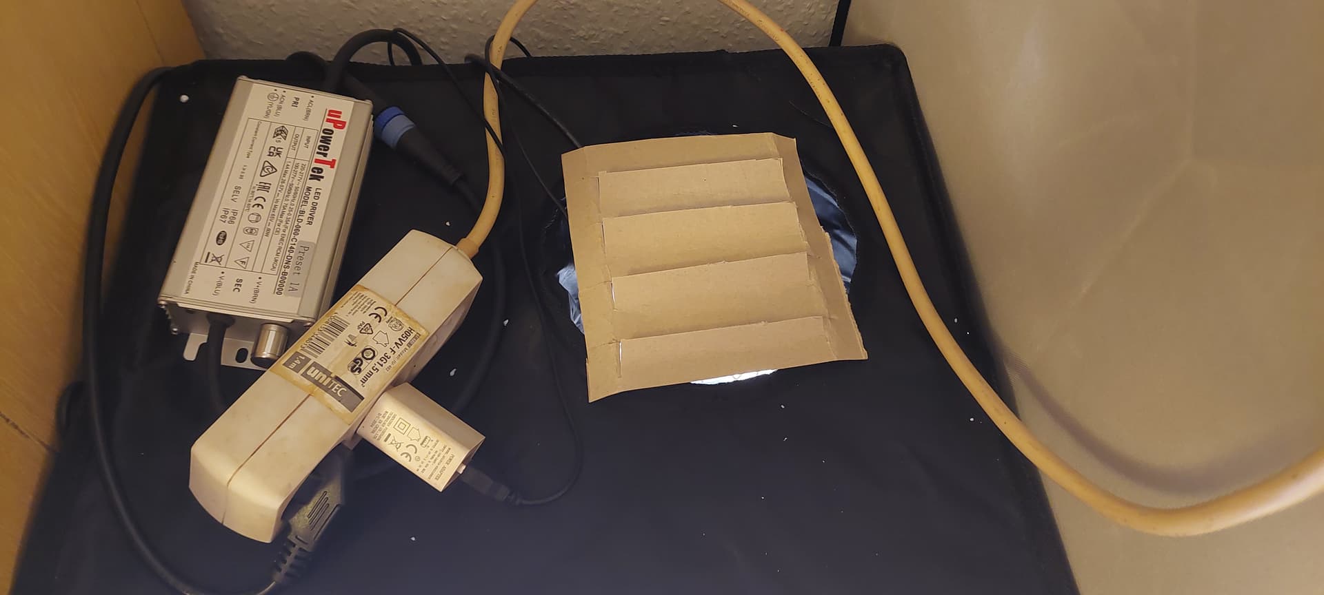 ² Das Anzuchzelt ist nicht mit dem „Großen“ 60x60 verbunden, ergo nix Luftfilterung und ein Billo-USB Venti fürn Schreibtisch zunächst als Abluft, der pustet aus dem Zelt nach oben raus.