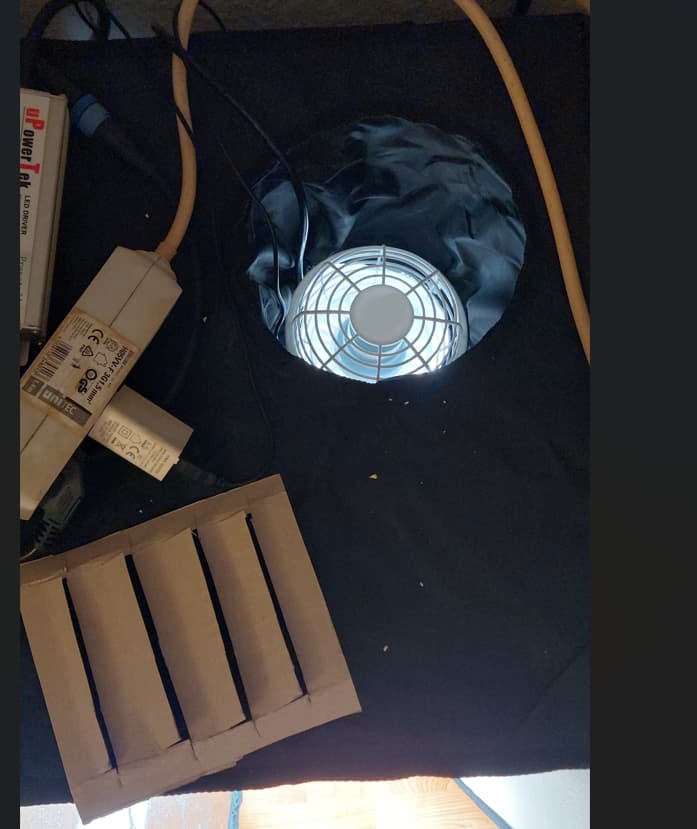 Belüftung: NoRealName 187m³ manuell gesteuerte Abluft, wird vllt. noch in diesem Grow mit irgendwas leiserem ausgetauscht. Ich plane einen besseren, überdimensionierten EC Lüfter mit Box zu kaufen/bauen, kann sich aber noch ziehen, ma gucken wann ich darauf Lust habe. ![]()