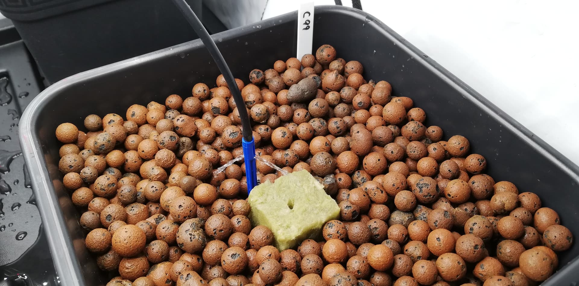 Seid einer Woche werden 4x4 grodan Würfel und Euro Pepples gepuffert.