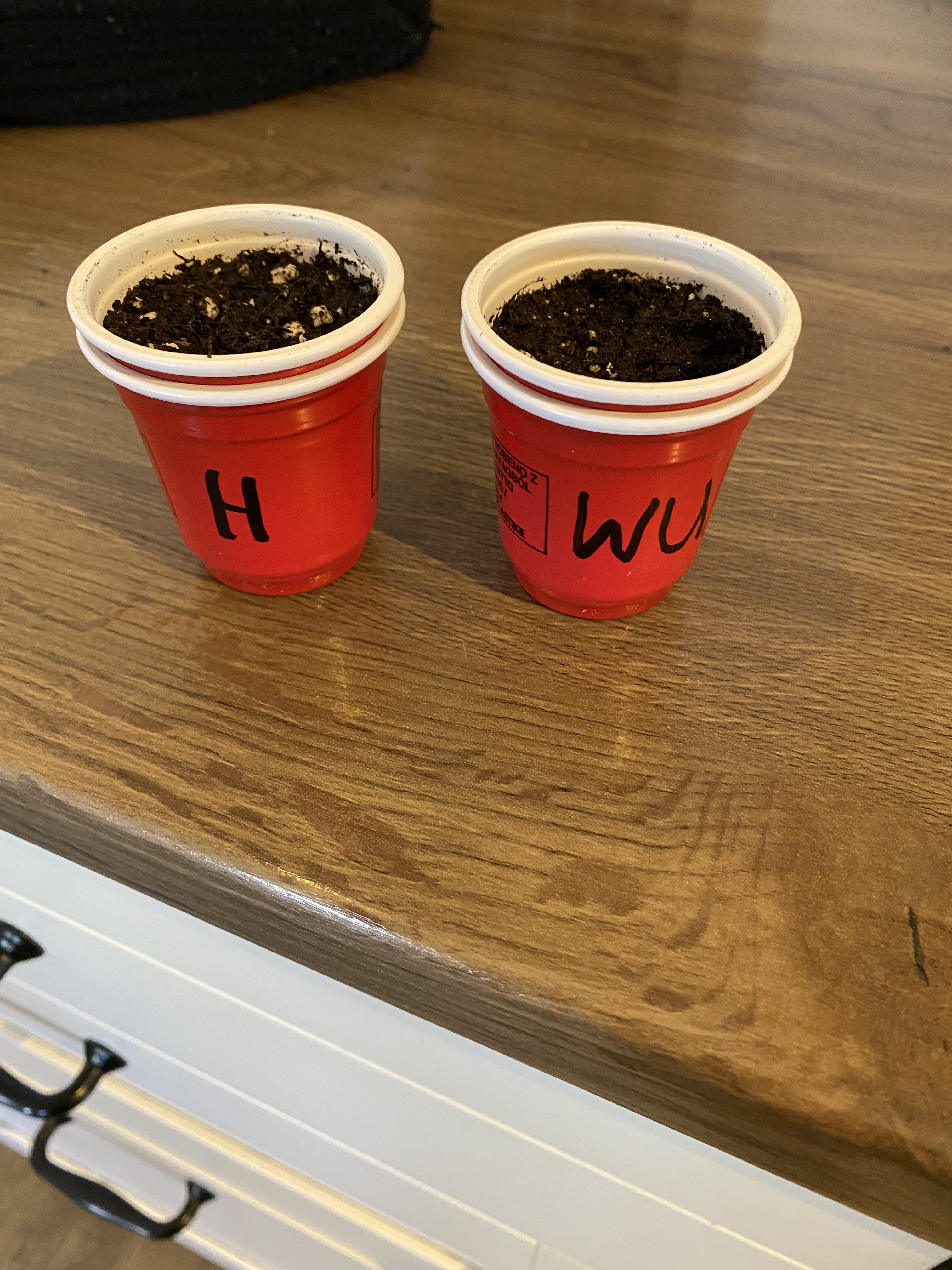 Ich habe die Shotbecher in weitere ohne Löcher gesetzt damit ich sie in den Untersetzer mit Wasser stellen kann ohne das die Erde nass wird.