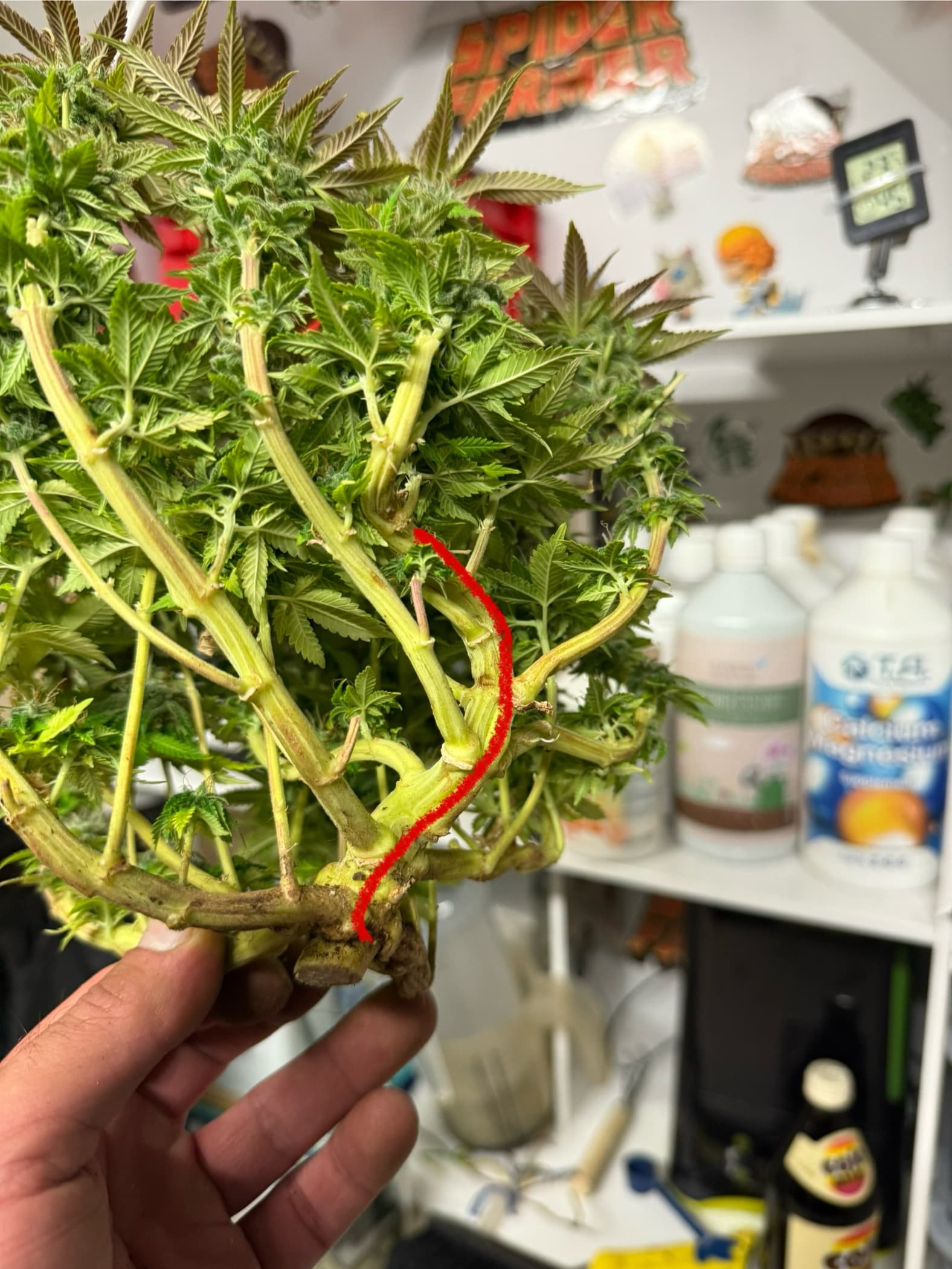 Ich hab bei der Banana die ja nicht getoppt sondern frĂŒh am Anfang gequetscht und gebogen und da hab ich jetzt bei den Bildern mal den Haupt trieb rot markiert um es veranschaulichen zu können