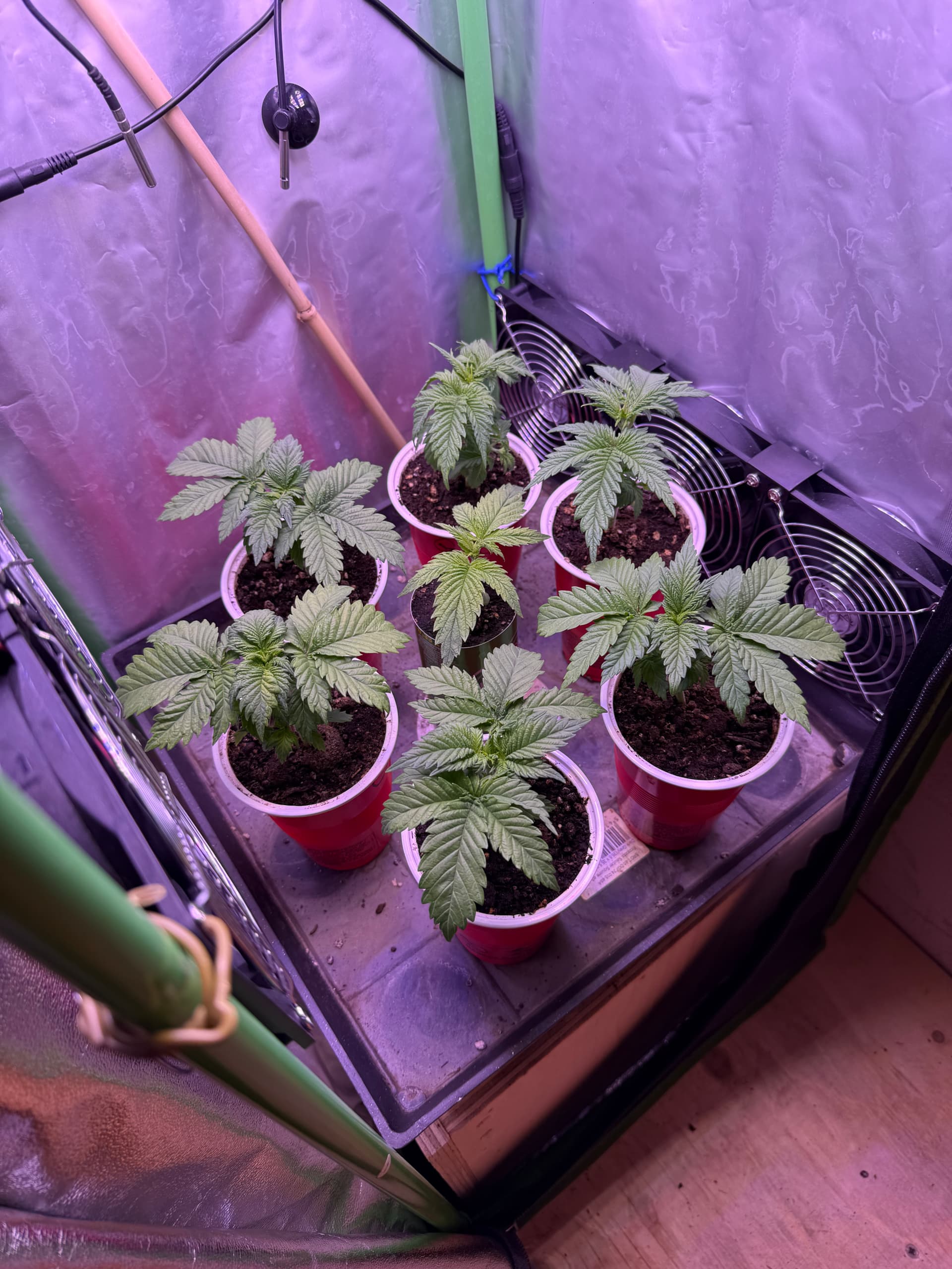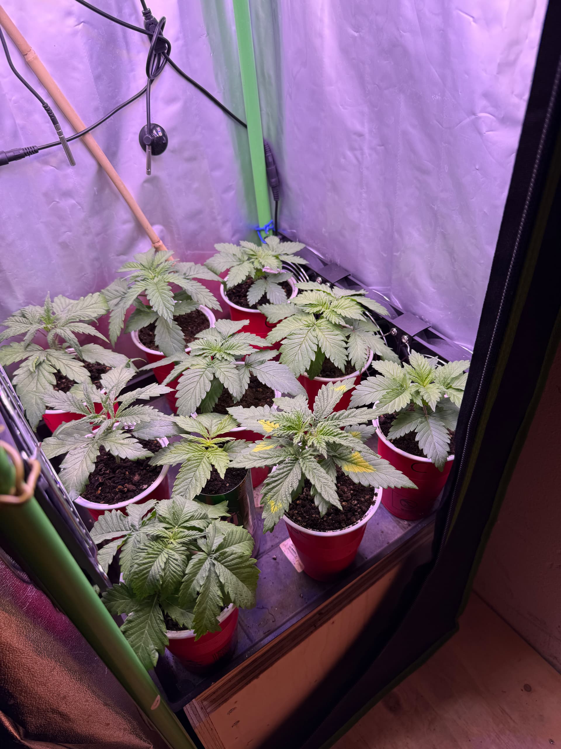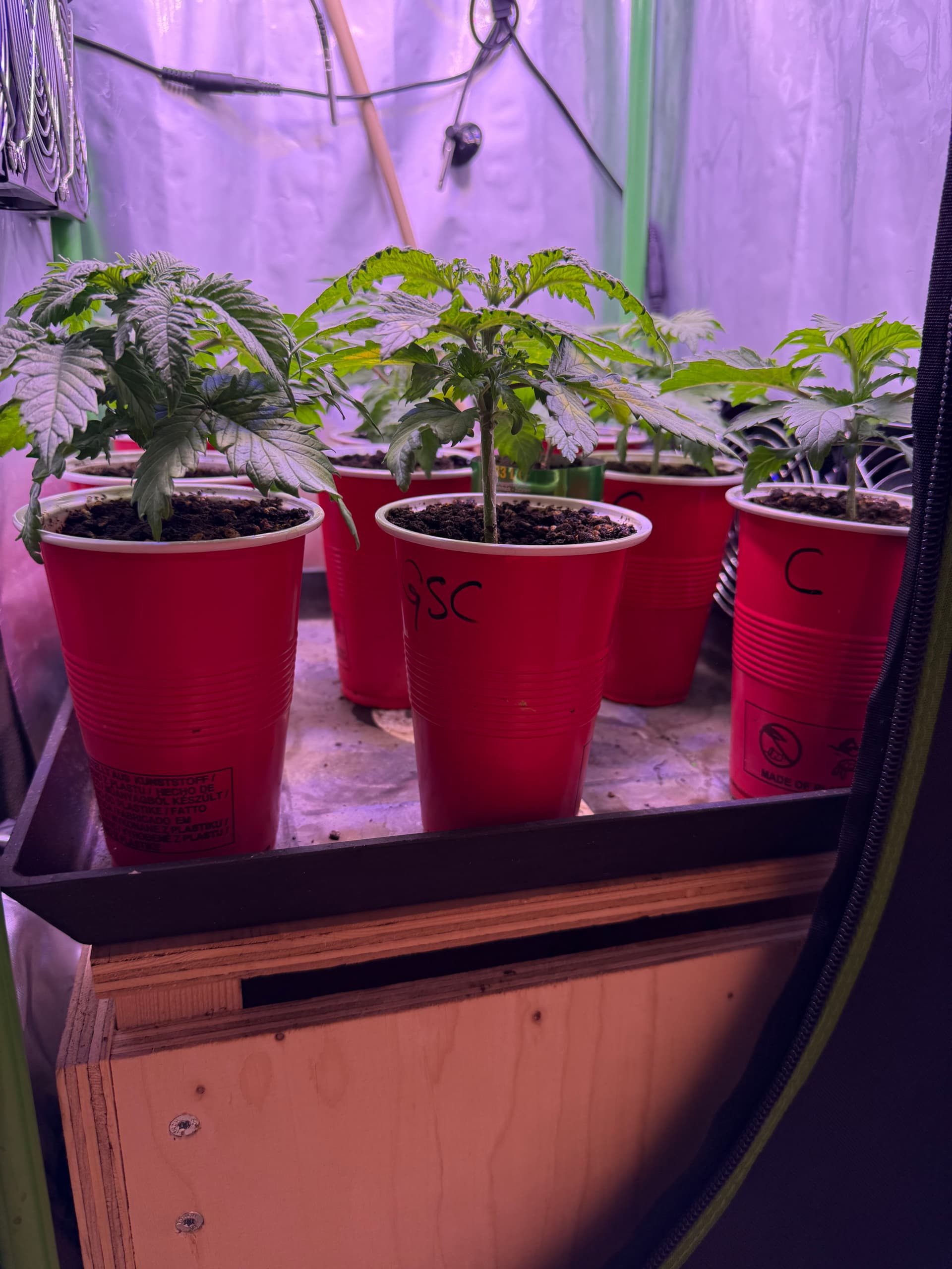 Anzucht war in meiner selbstgebastelten Keimbox mit Licht und dann in die Becher und ja erstmal unter dem ChinaLicht und jetzt geht’s weiter mit der neuen caluma die ich mir gegönnt hab und demnächst kommt die Seitenbeleuchtung dazu