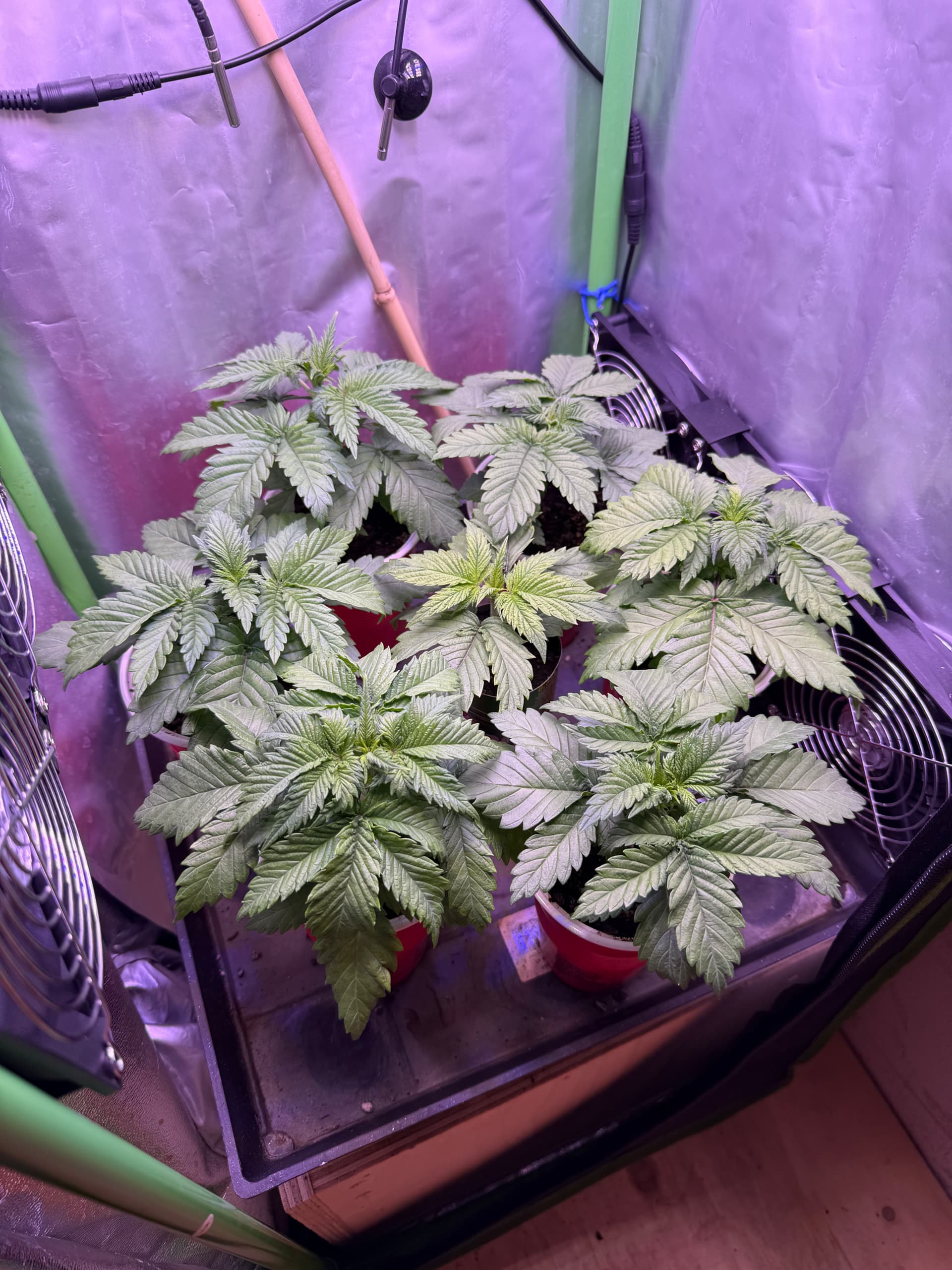 Wenn sie ins große Zelt kommt, steht dort bereits eine Pflanze bei Tag 1 der Blüte und eine bei etwa 2,5 Wochen. -