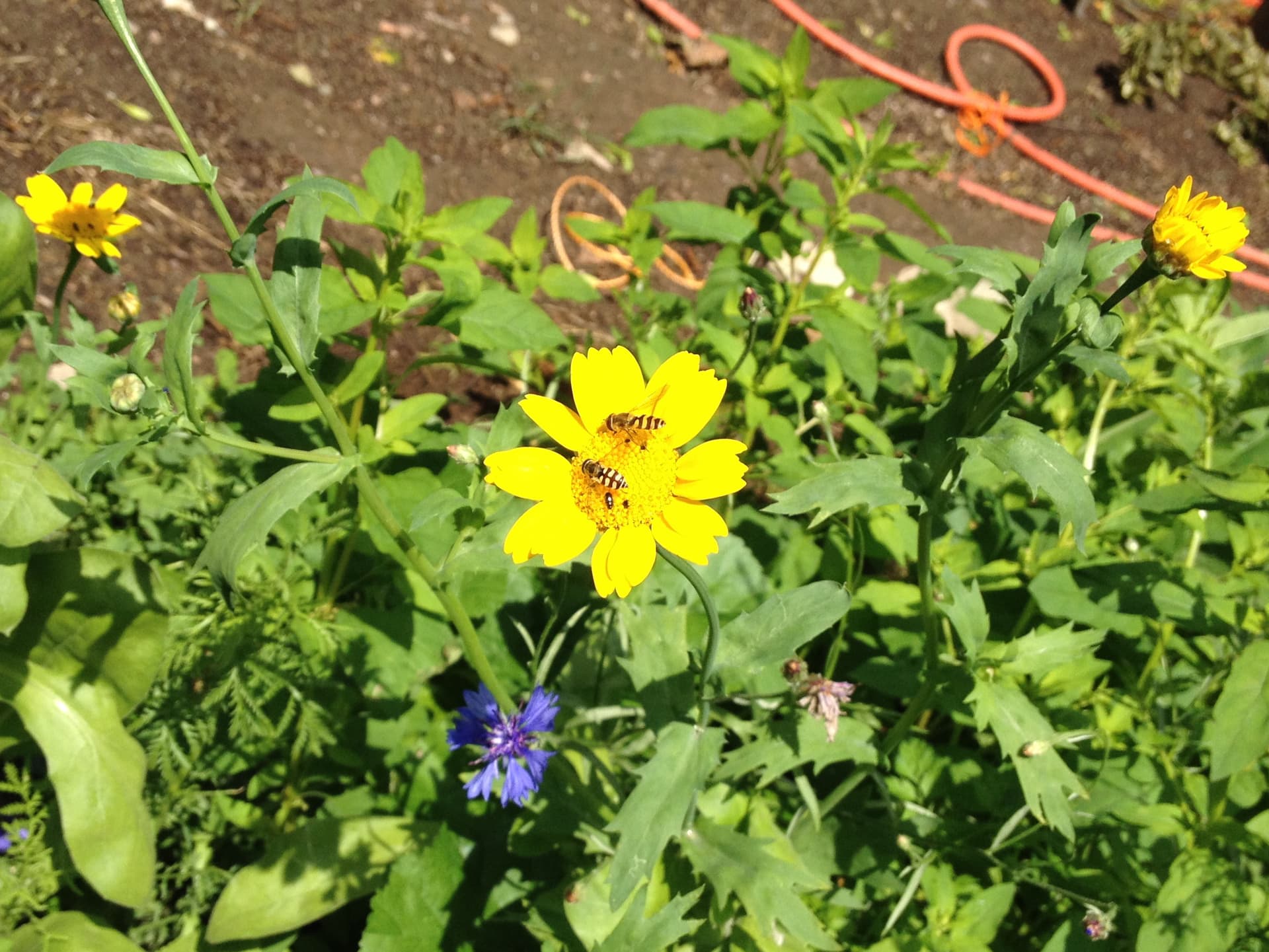 Das meiste spielt sich in den Baumkronen ab, am Boden geht es noch … die Schwebfliegen scheint es nicht zu stören ![]()
