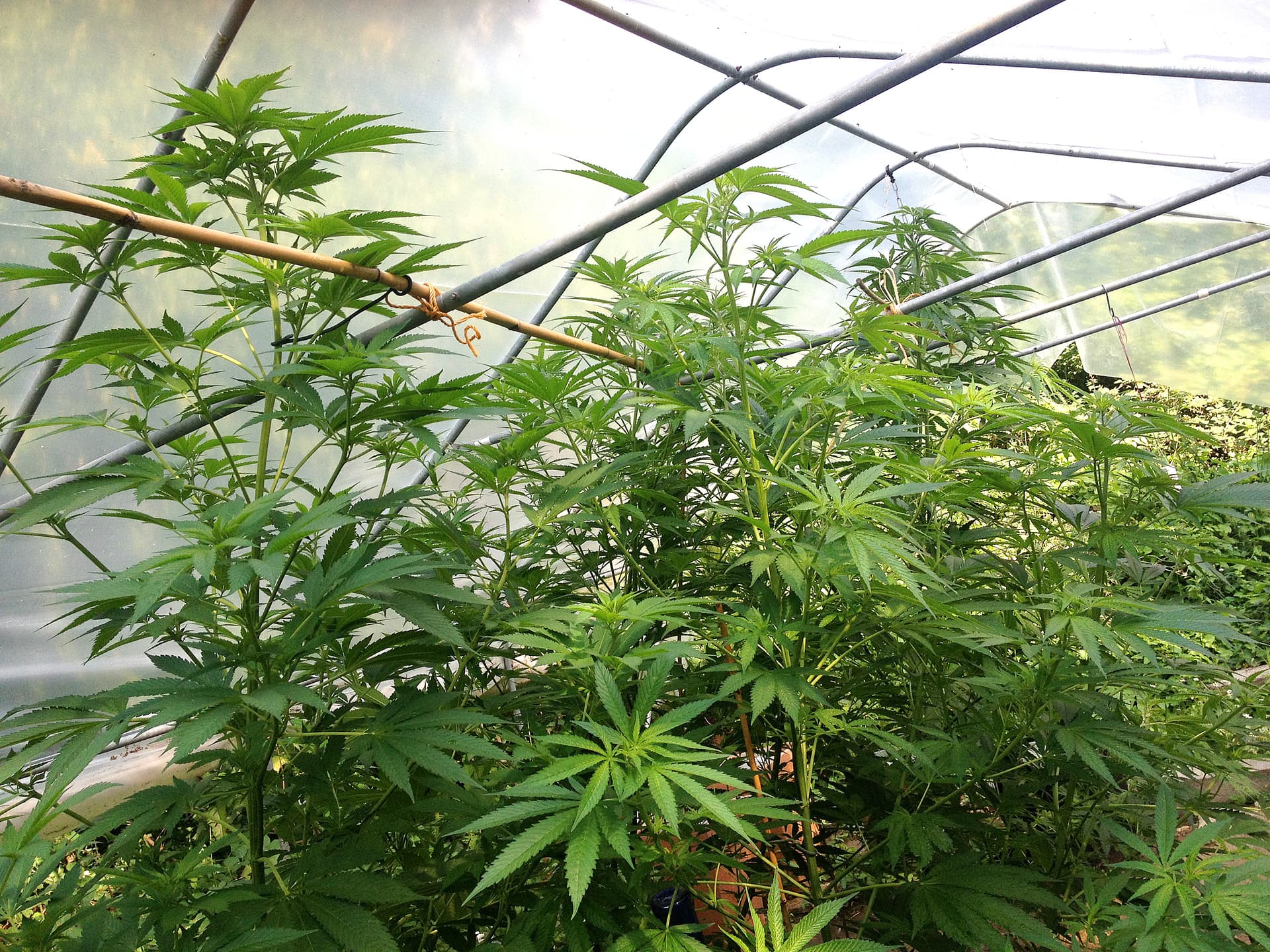 Mittlerweile sind alle großen Pflanzen über die Querstangen (1,85) hinausgewachsen, sogar die Blueberry.