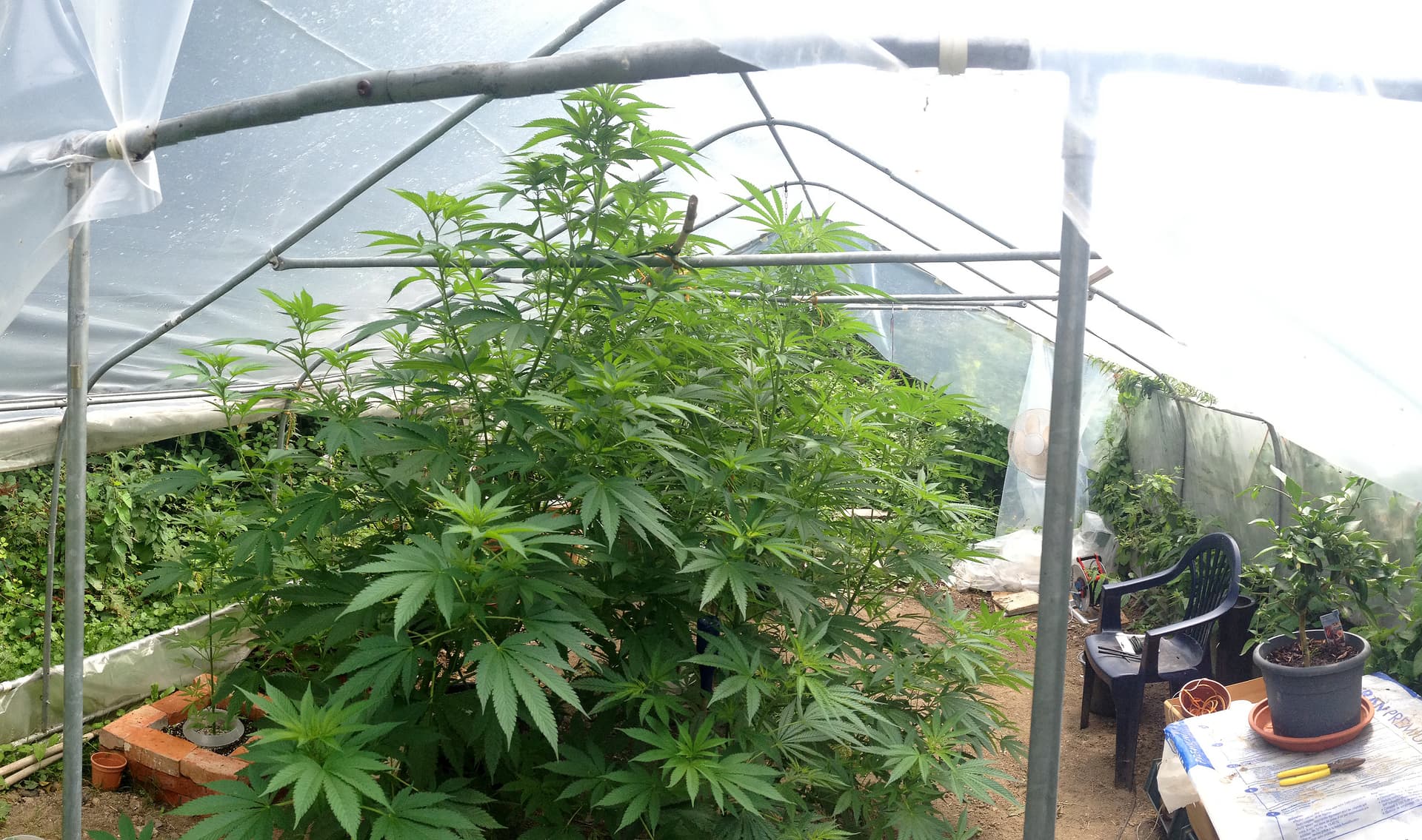 Das Dach verhindert in Regenzeiten, dass die Pflanzen ständig durchnässt sind, und man kann den Boden trocken halten. Das bringt schon etwas, aber wie gesagt: Umluft ist essentiell.