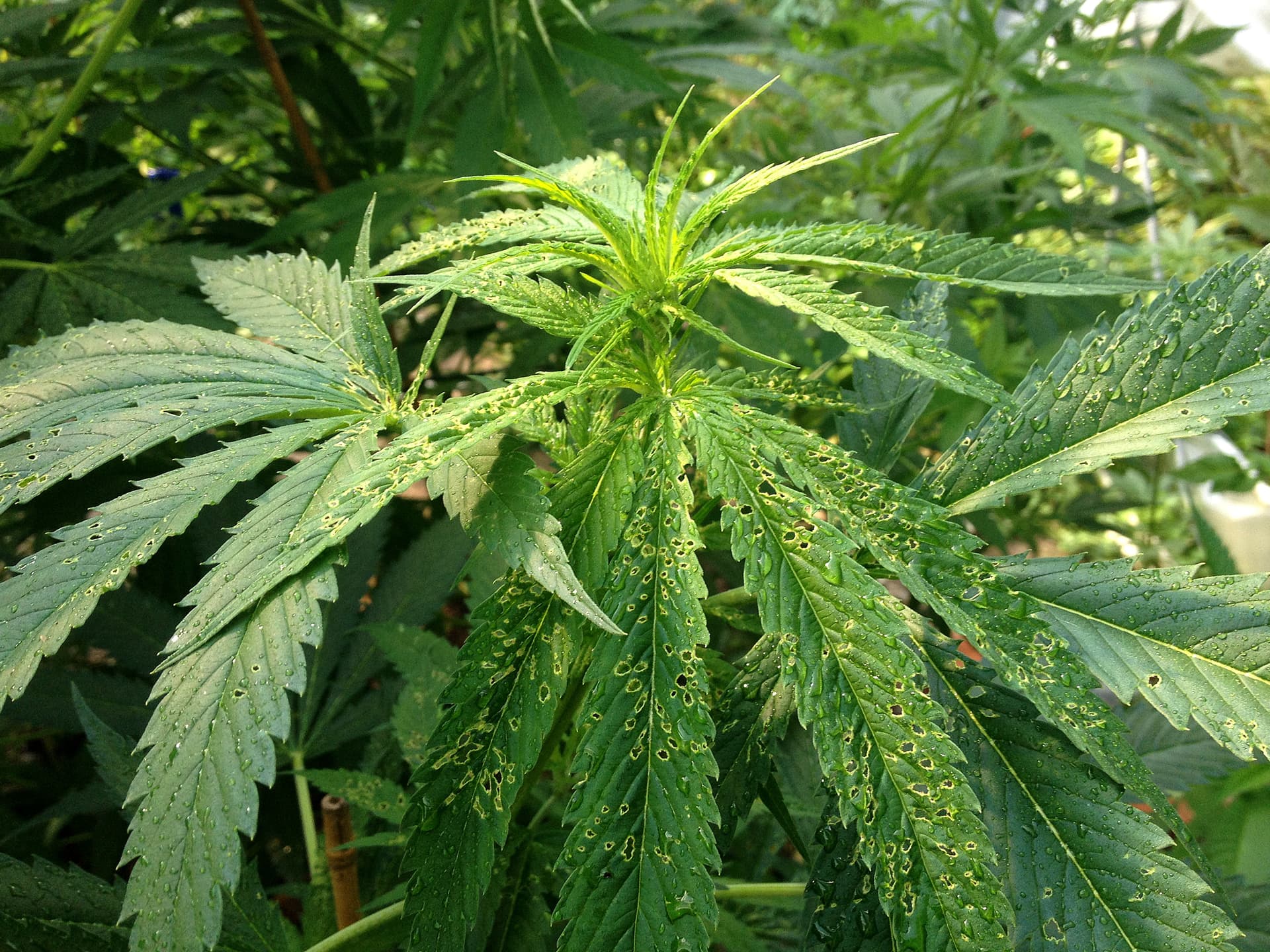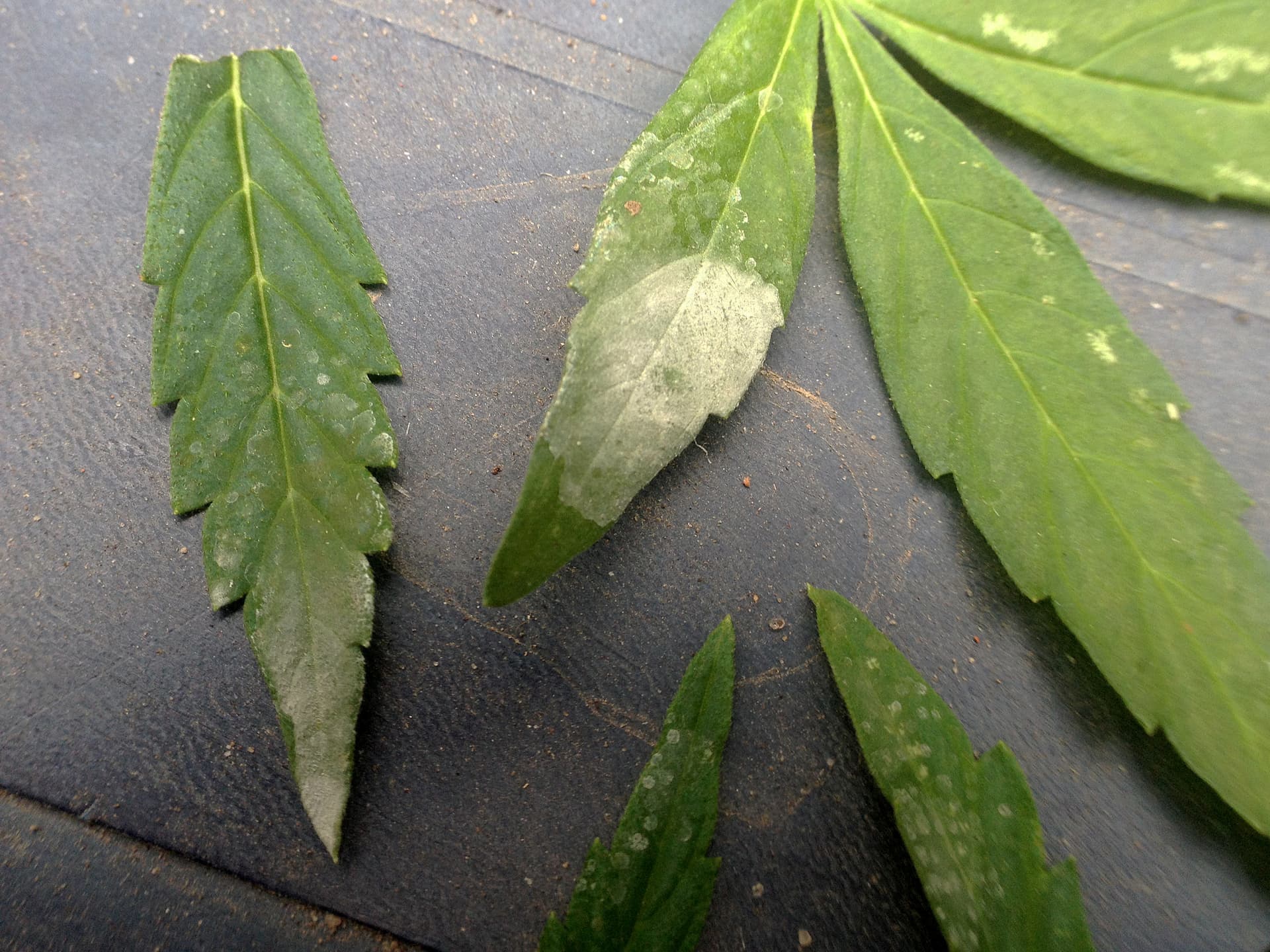 Bisschen Mehltau (?) hab ich auch gefunden. Scheint irgendwie mit Tropfwasser gekommen zu sein …