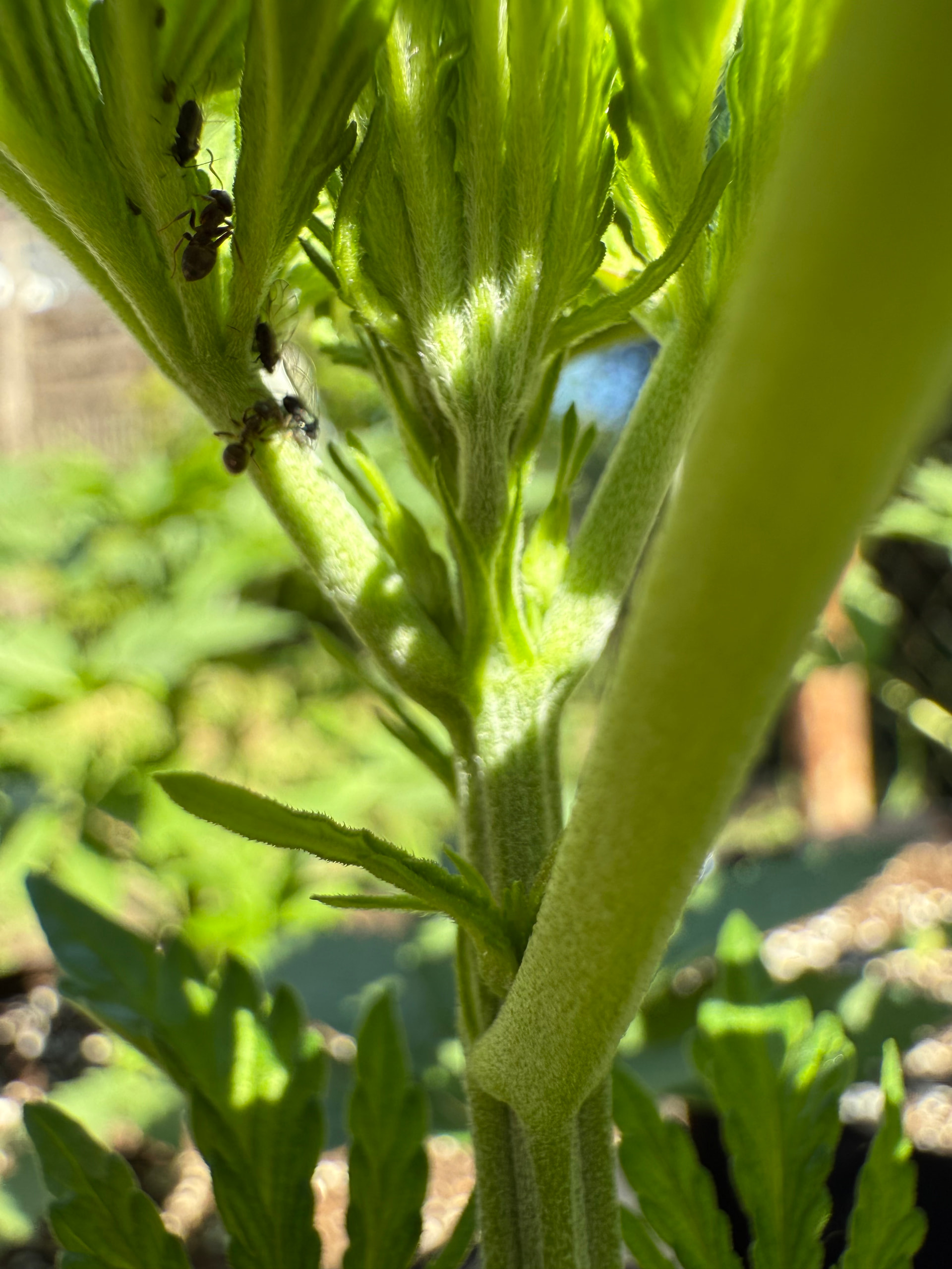 Nehme an das war irgendne Art BlattlĂ€use mit irgendwelchen gröĂeren, hellgrĂŒnen Soldaten die einmal pro Trieb vertreten waren und âArbeiterâ. Die Sklaventreiber theoretisch.