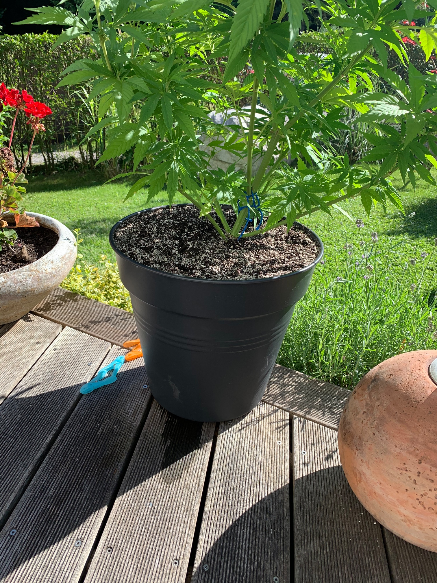 Hab die Pötte jetzt ans andere Ende vom Haus gestellt, da ist die Sonne nur bis ca 15:00