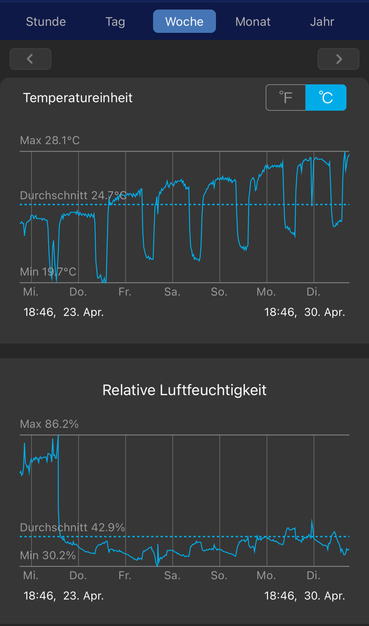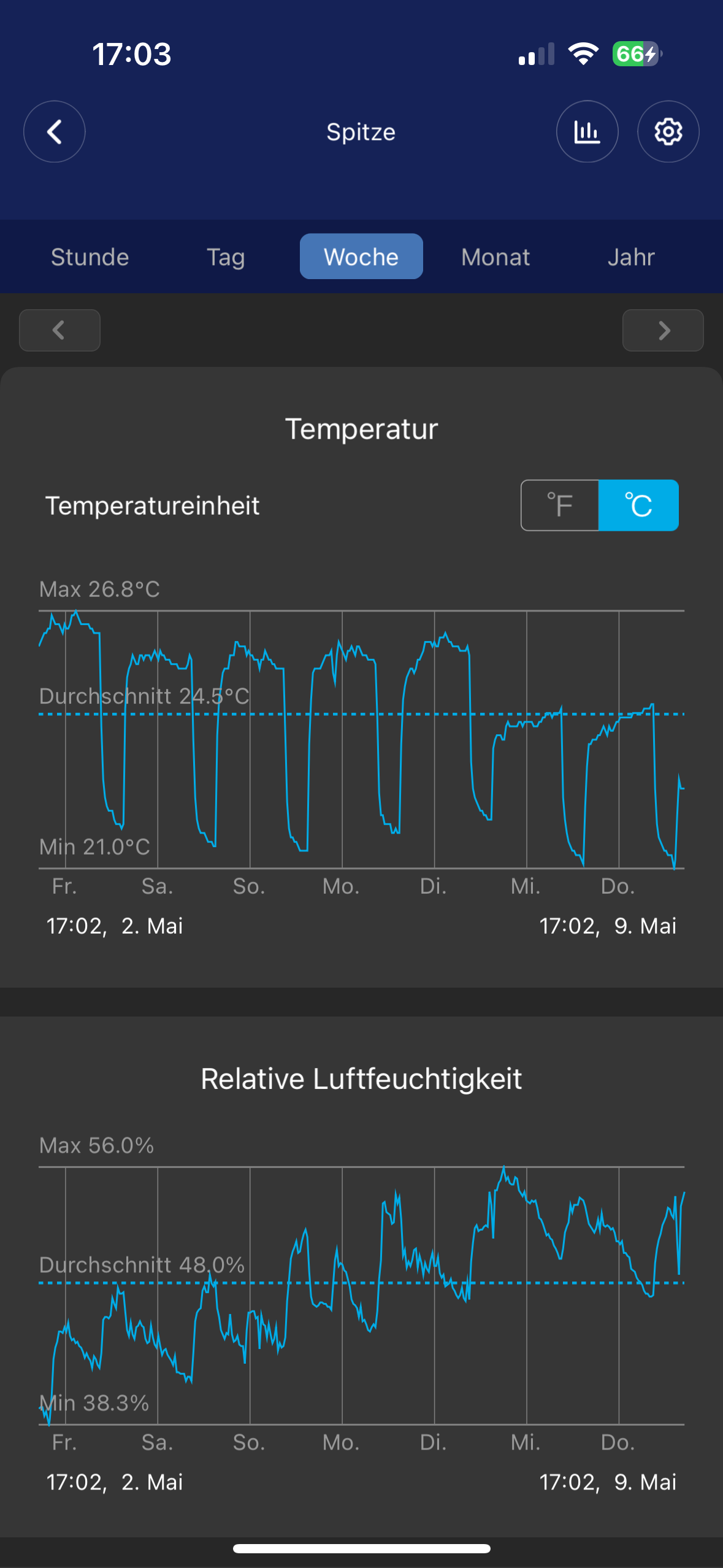 Klima der letzten 7 Tage, bin soweit zufrieden, RLF sollte nach dem heutigen entlauben noch etwas sinken