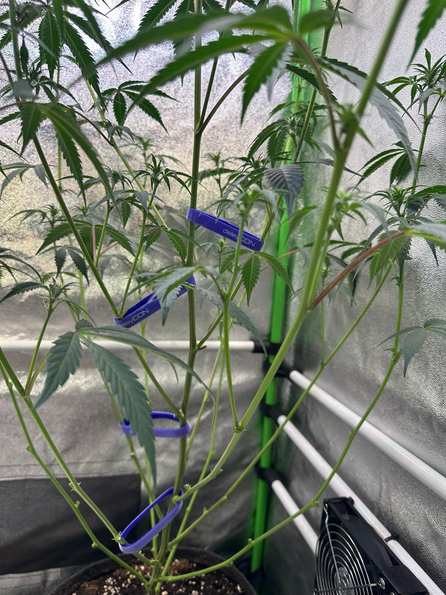 Ich muss sagen, eine wirklich windige Dame, das sind keine richtigen Äste, sondern einfach nur Ästchen. Umluft läut natürlich kräftig von allen Seiten, ändert aber nicht viel. Ich habe heute in erster Linie für mein Gewissen mit diesem coolen Klettband die Triebe etwas mehr zusammen gezogen.