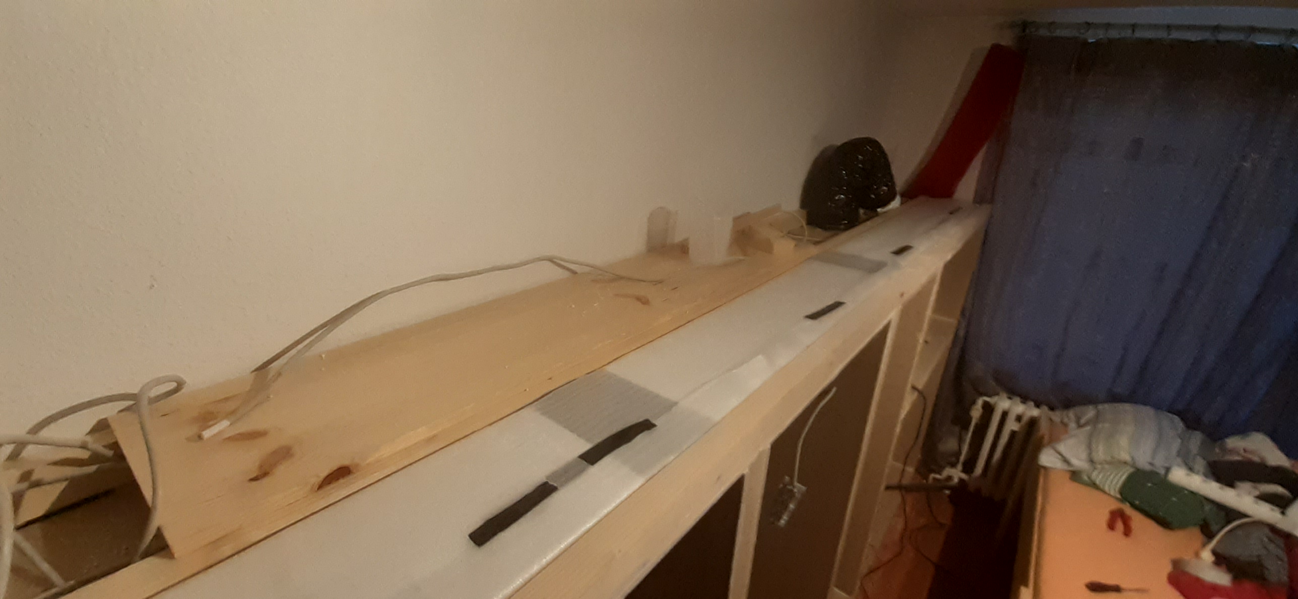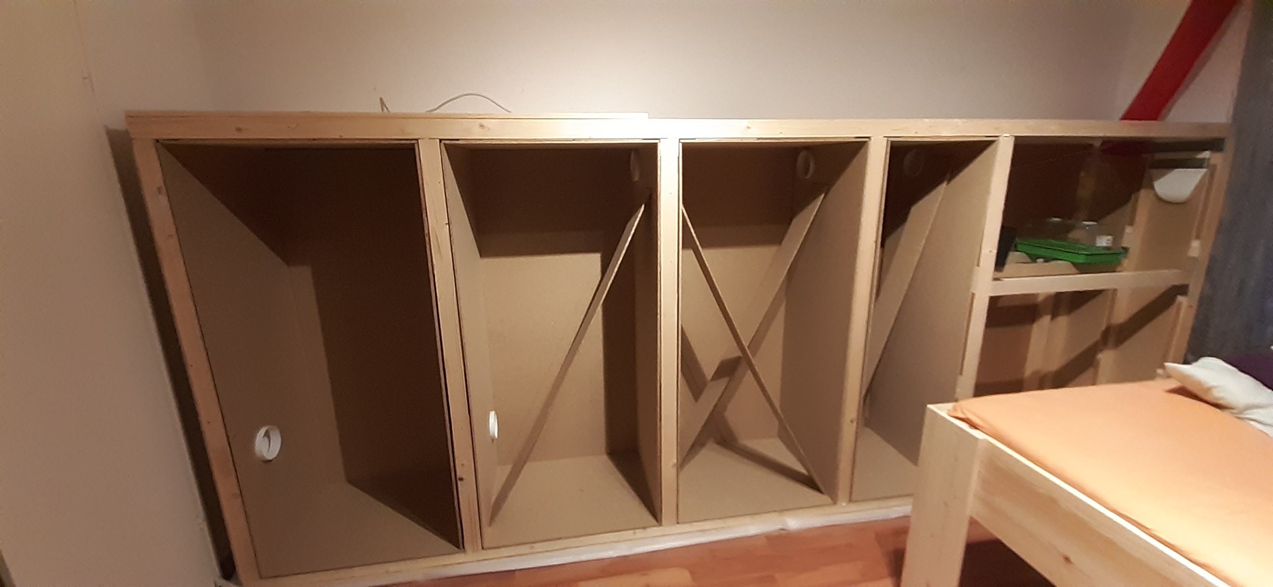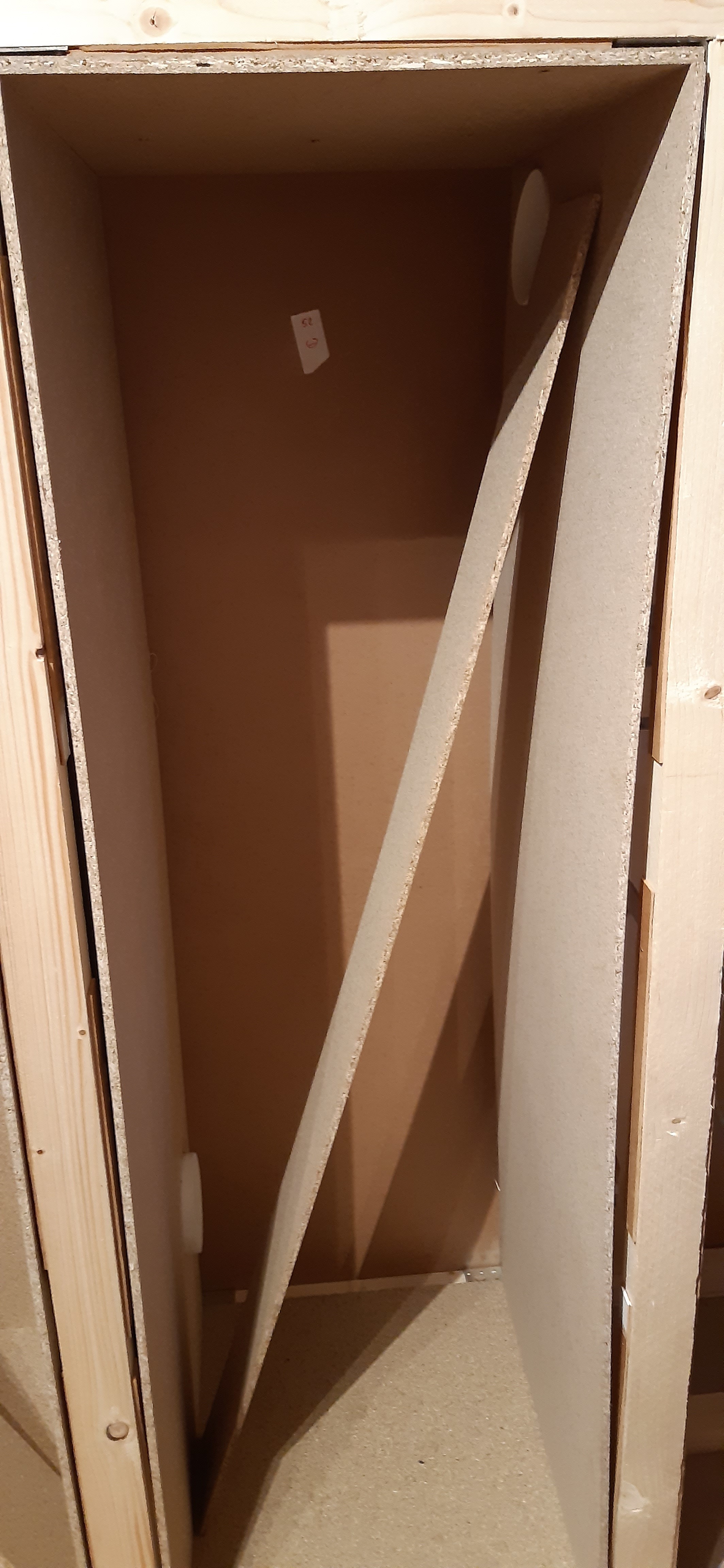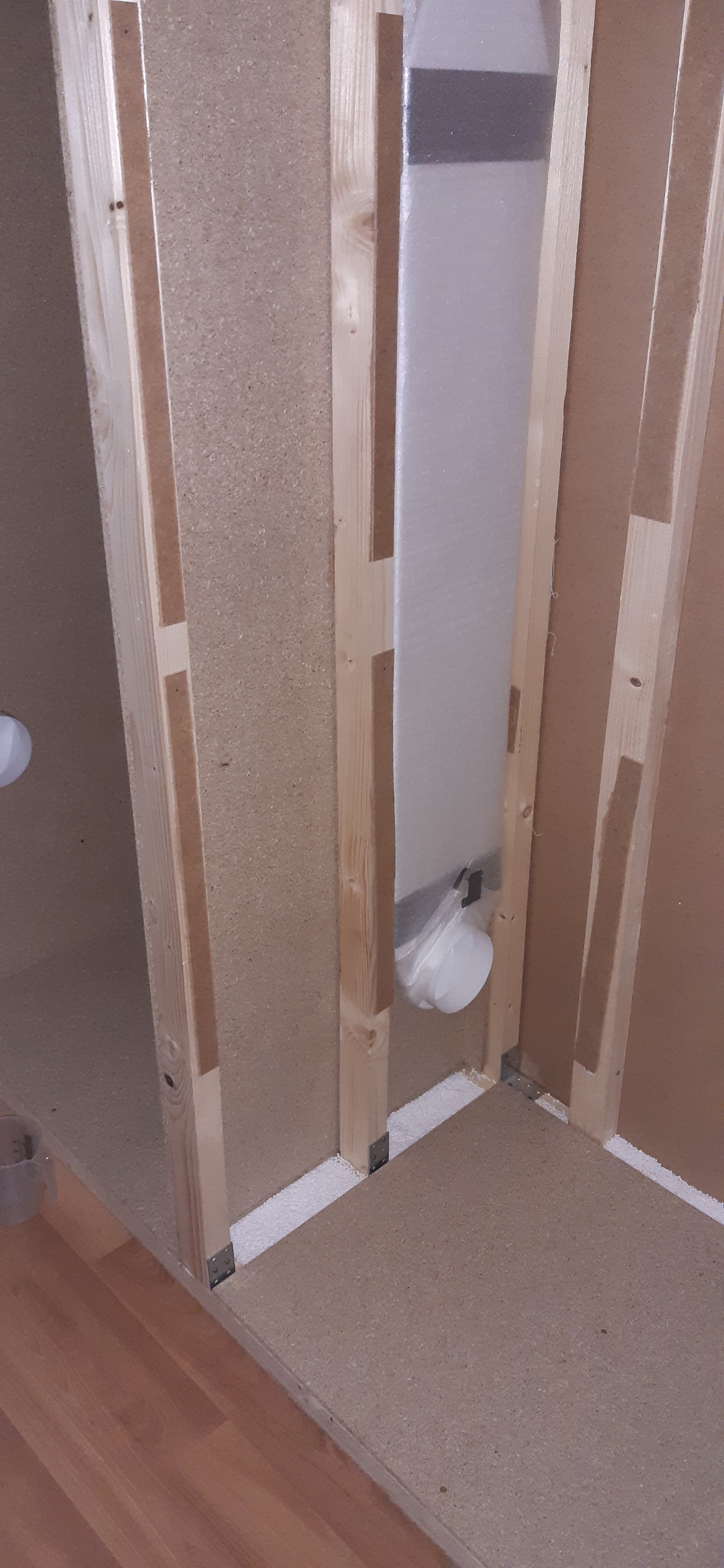 Als kleine Zusatz info ich werde die rüchwandscheiben die ich für den Abstand genutzt habe im innen Rahmen gegen neue ersetzten da meine Frau meinte einen Schimmel geruch vernehmen zu können und das könnte logischerweise nur von denen kommen, denn die sind aus dem Keller. Nicht’s desto trotz werde ich in dieser Woche den Schrank bis aufs Gerüst demontieren austauschen und dann endgültig befestigt und abgedichtete, dann werden auch die restlichen sparnplatten für den innen ramen geholt sein. und werden angepasst dann werde ich da wo die Türen hinkommen eine Folie einkleben um zu überprüfen ob alles richtig gemacht wurde, dann wird das abluftsystem installiert und ausprobiert. Und dann endlich habe ich die Hälfte geschafft.
