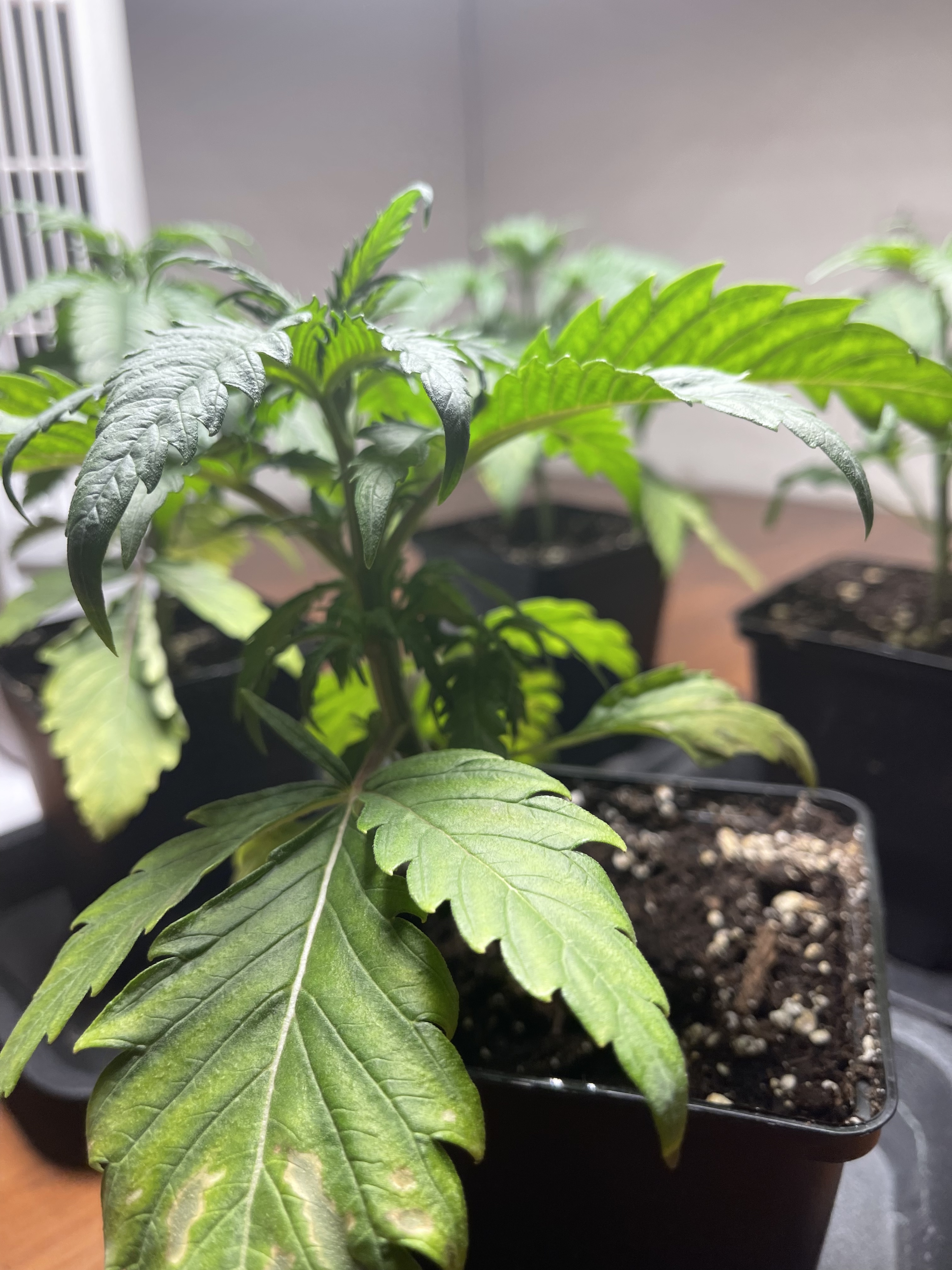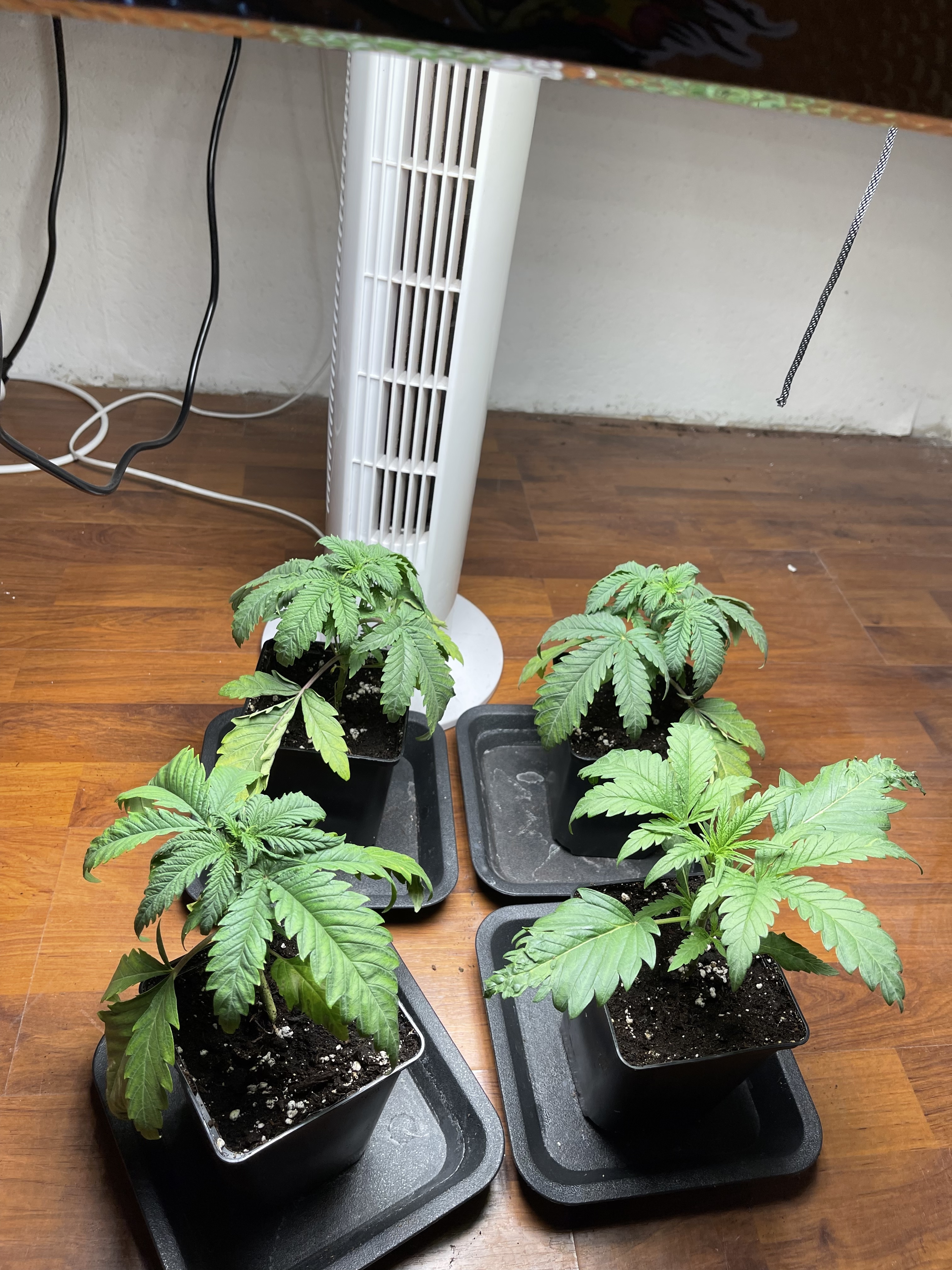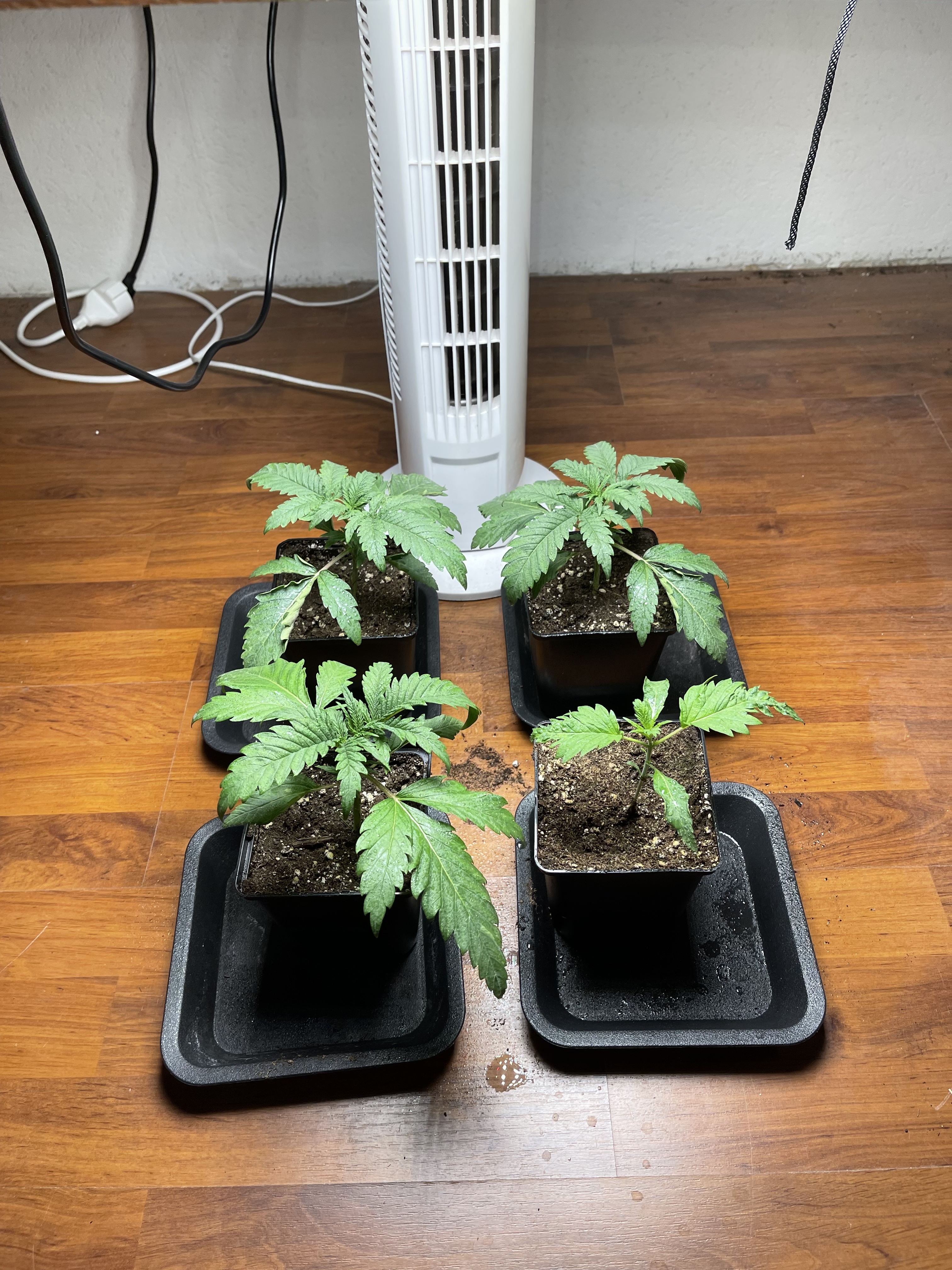 Jetzt schon zu spät drann was das umtopfen angeht eigentlich,ausser du willst warten bis alle 4 gleich ca. entwickelt sind.Eine hinkt ja was hinterher.