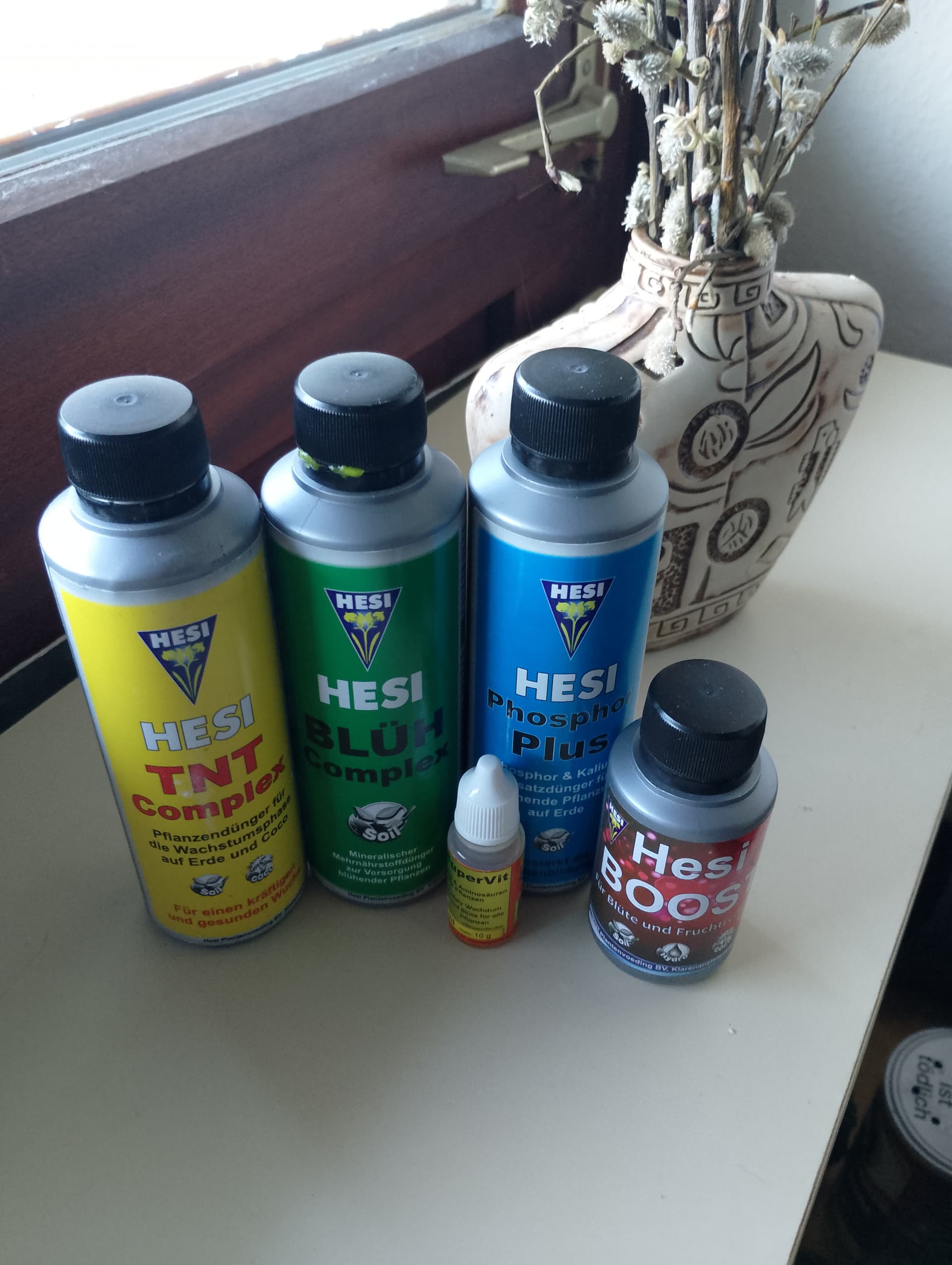 Hab nur die Hälfte vom Blütedünger gegeben da der Wurmhumus ja noch zusätzlich etwas abgibt, bei der nächsten Düngung gibt es aber volles Programm. 90 Prozent Blütedünger(Hesi) plus Phosphor plus