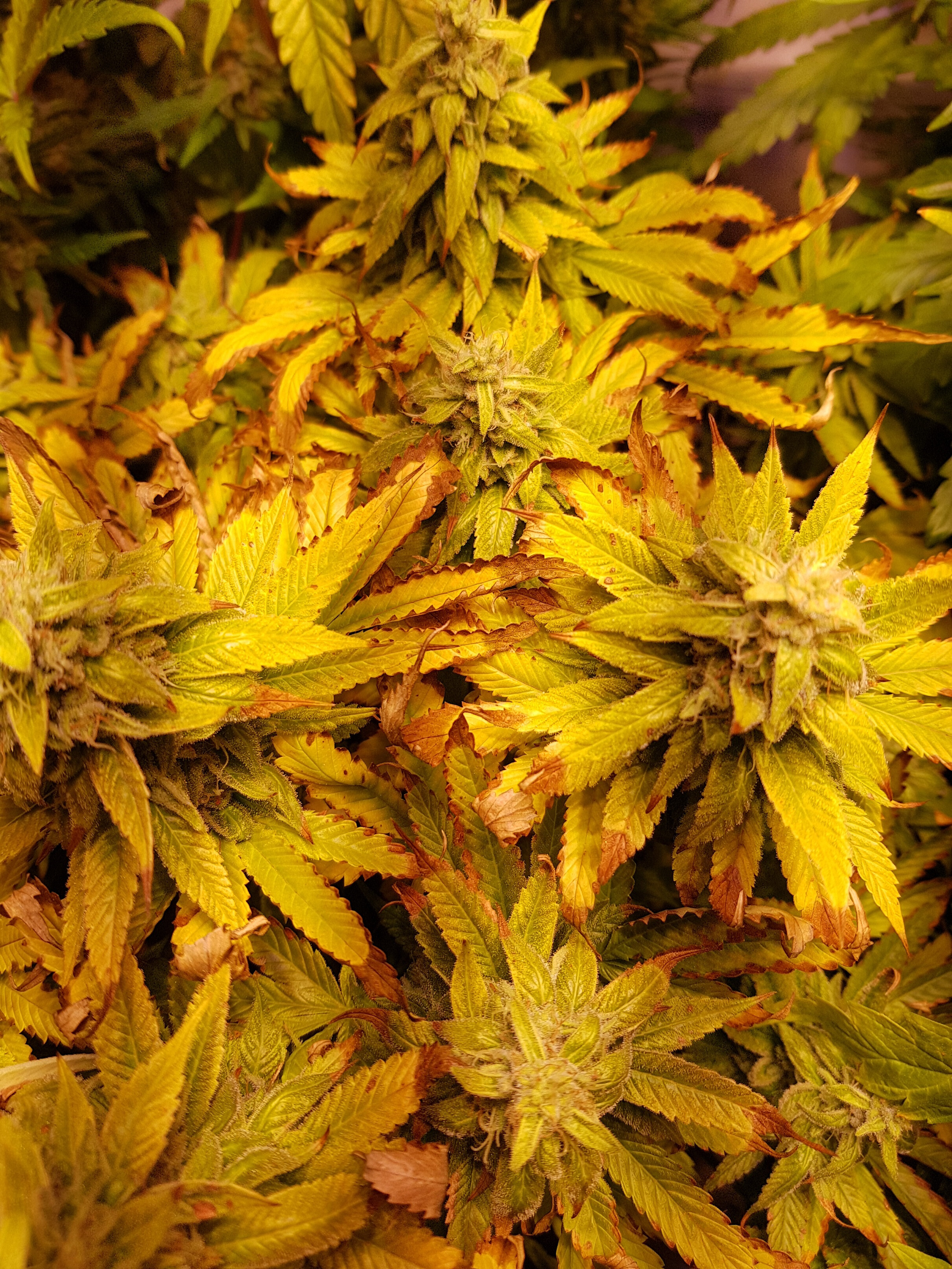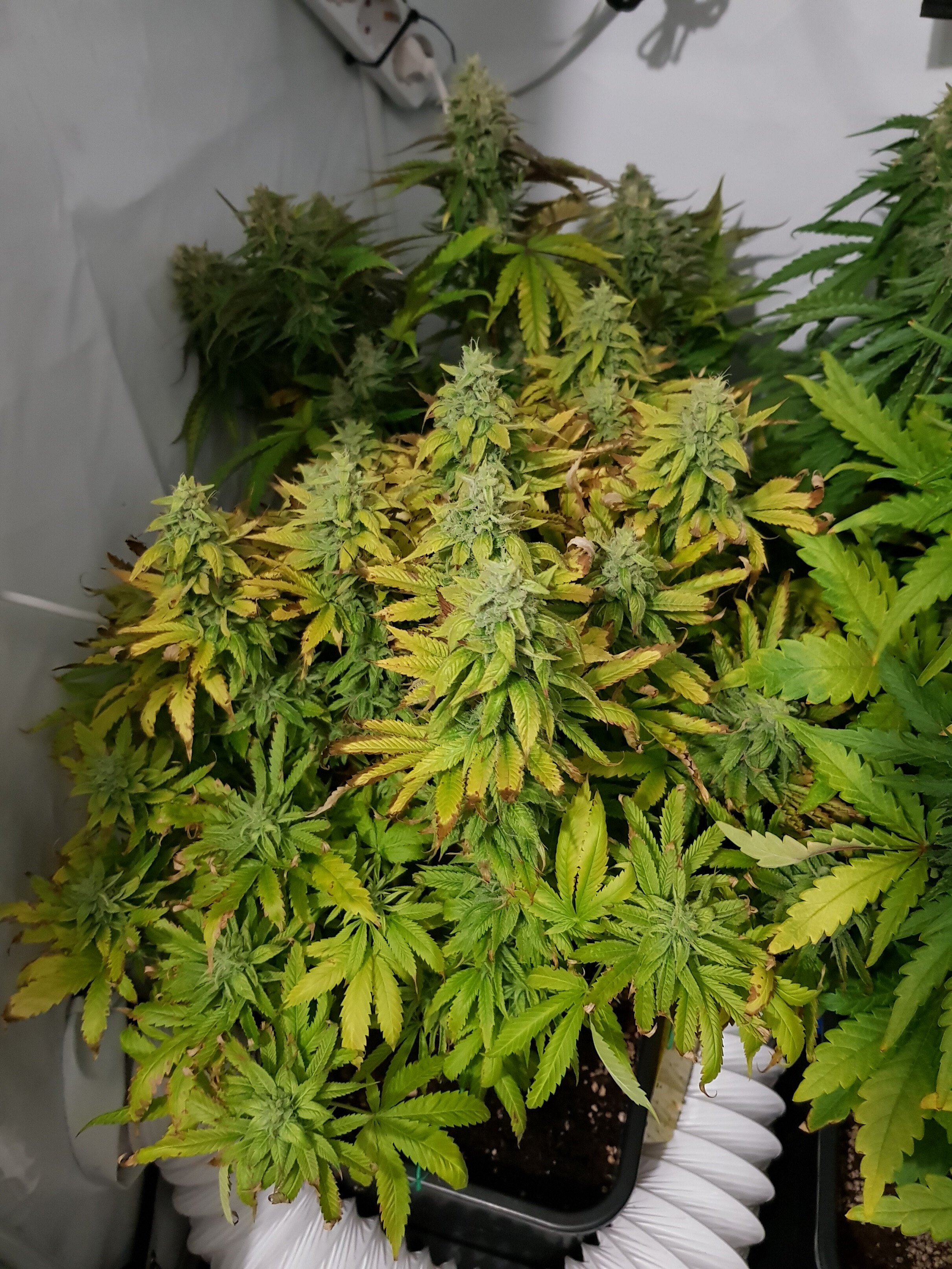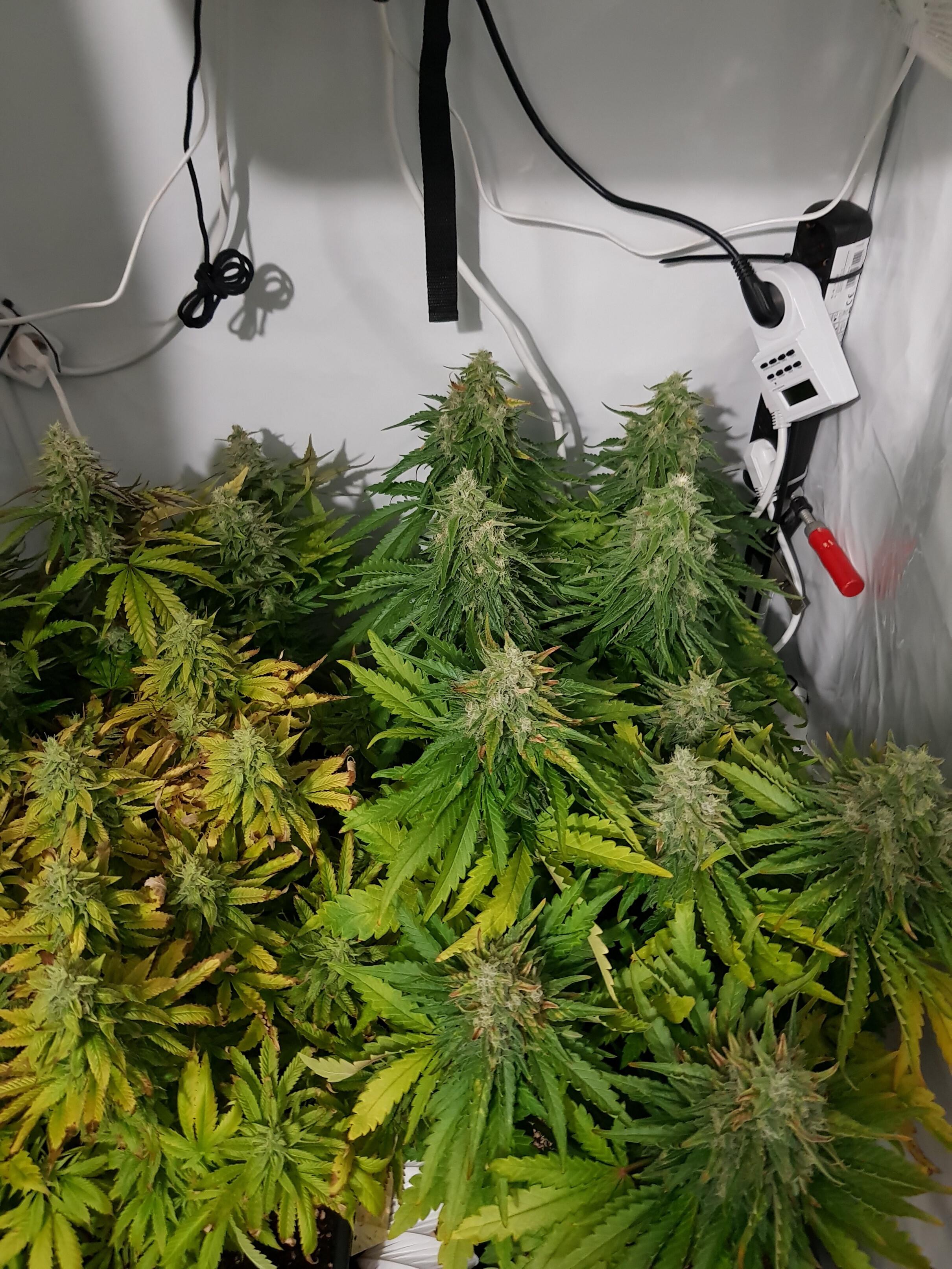 Pflanze hatte von Anfang an sehr helle Blätter. Letzten zwei Wochen dann fast nur gelbe Blätter und an den Spitzen vertrocknet. Es betrifft nur eine von vier so extrem (WhiteWidow Vegi von 7.11-31.12) Die anderen (Northern Lights Vegi von 5.12-31.12) fangen auch langsam an Mängel zu zeigen.