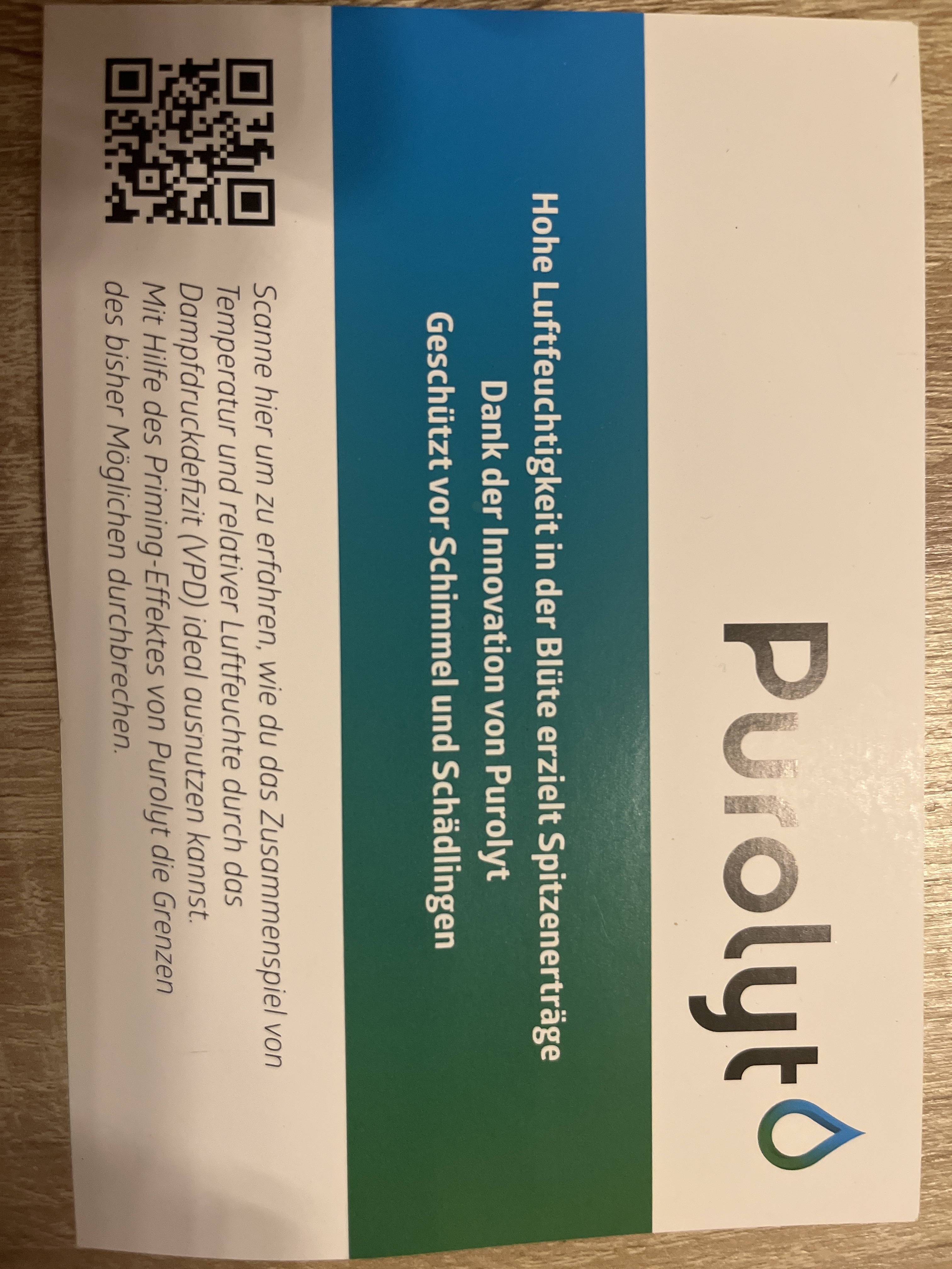 Danke das du meinen Run gut findest. Ich bin nicht so zufrieden. Wenn ich das richtig verstanden habe dann ist das Argument, dass die Pflanzen eine höhere Luftfeuchtigkeit auch in der Blüte benötigen. Fahren wir aber nicht wegen Schimmel. Und mit dem Purolyd kannst du diese erhöhen ohne Angst vor Schimmel.