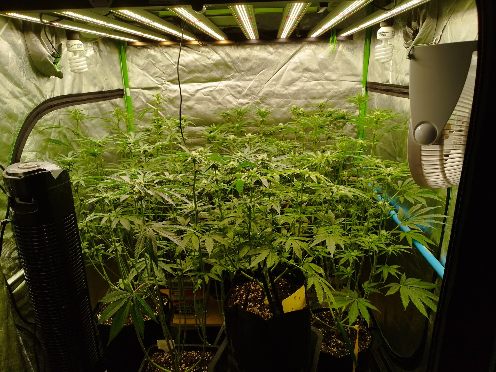 Unten habe ich PC Lüfter direkt auf die Pflanzen gerichtet.