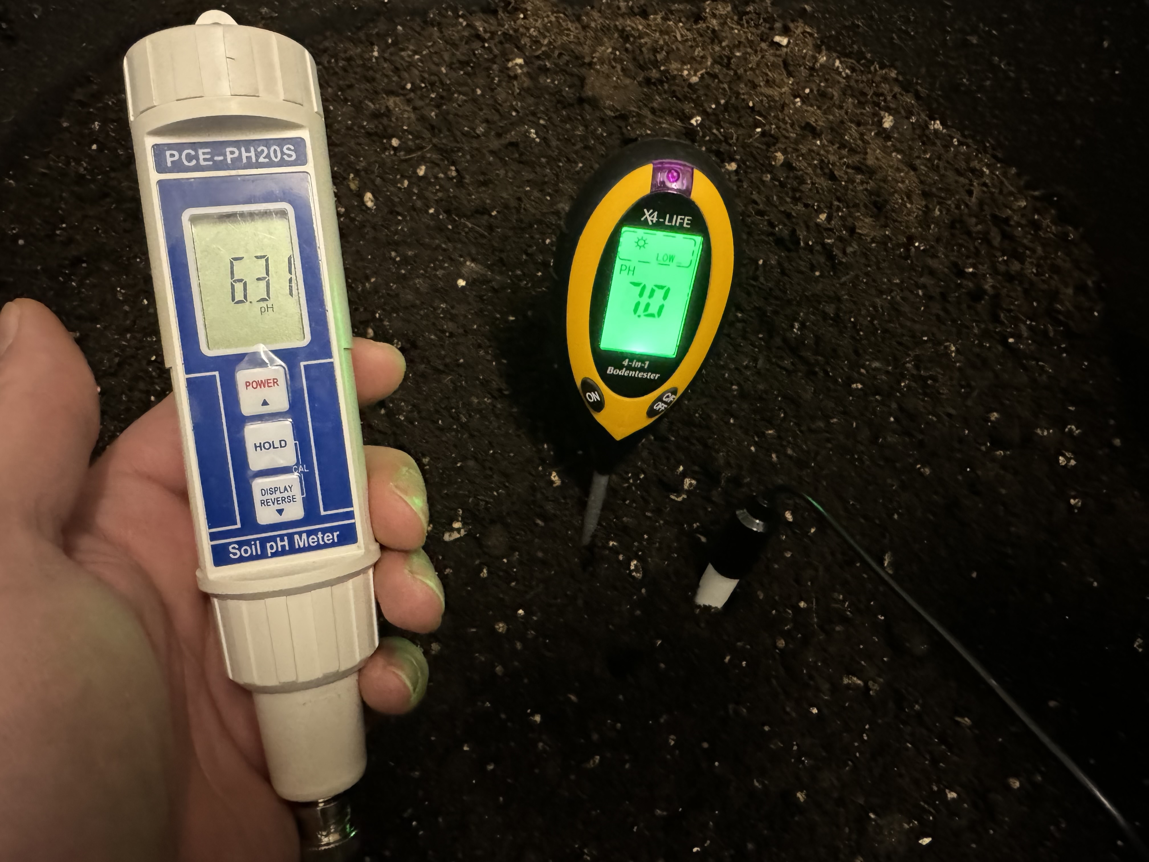 Ich würde dem Wert ja vertrauen, aber der hat mir manchmal schonmal Werte von 11 u.Ä. angezeigt oder ist zwischen zwei Werten (5,8 und 6,6) hin und hergesprugen uns seitdem.. Außerdem hatte ich mal irgendwo gelesen, dass der drain bei organischem Grow nicht aussagekräftig ist, deswegen dachte ich an so einen Stab, den man in den Boden stecken kann.