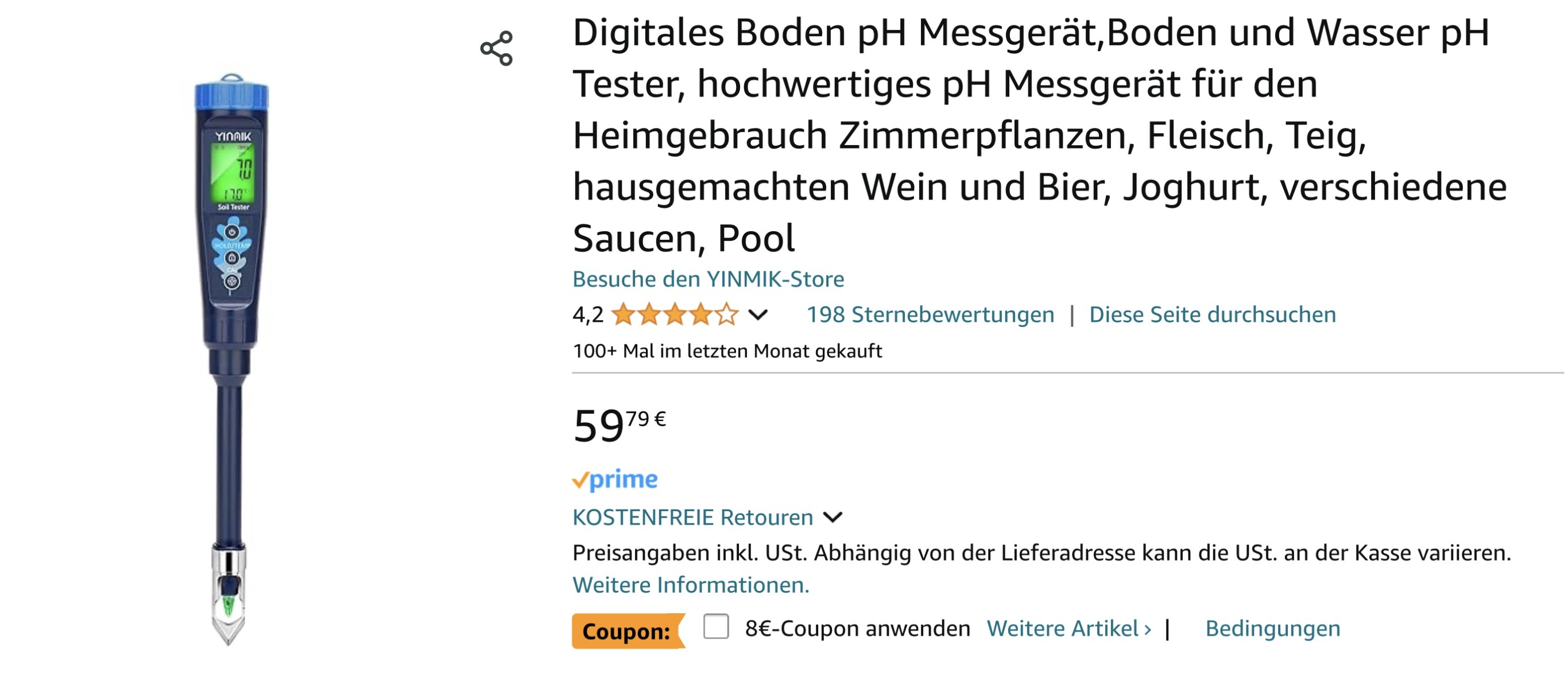 Schau mal ich habe mir bei Amazon mit Rabatt (ca 52€) diesen PH Tester gekauft.