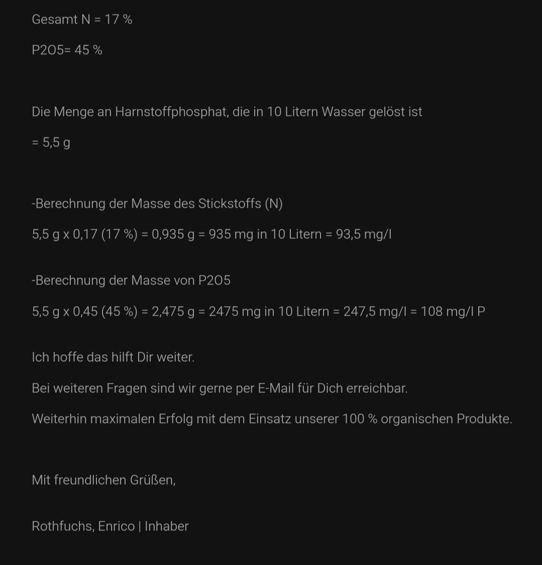 - organische Säuren (z. B. Citronensäure) → kein direkter NPK-Eintrag, aber andere Effekte