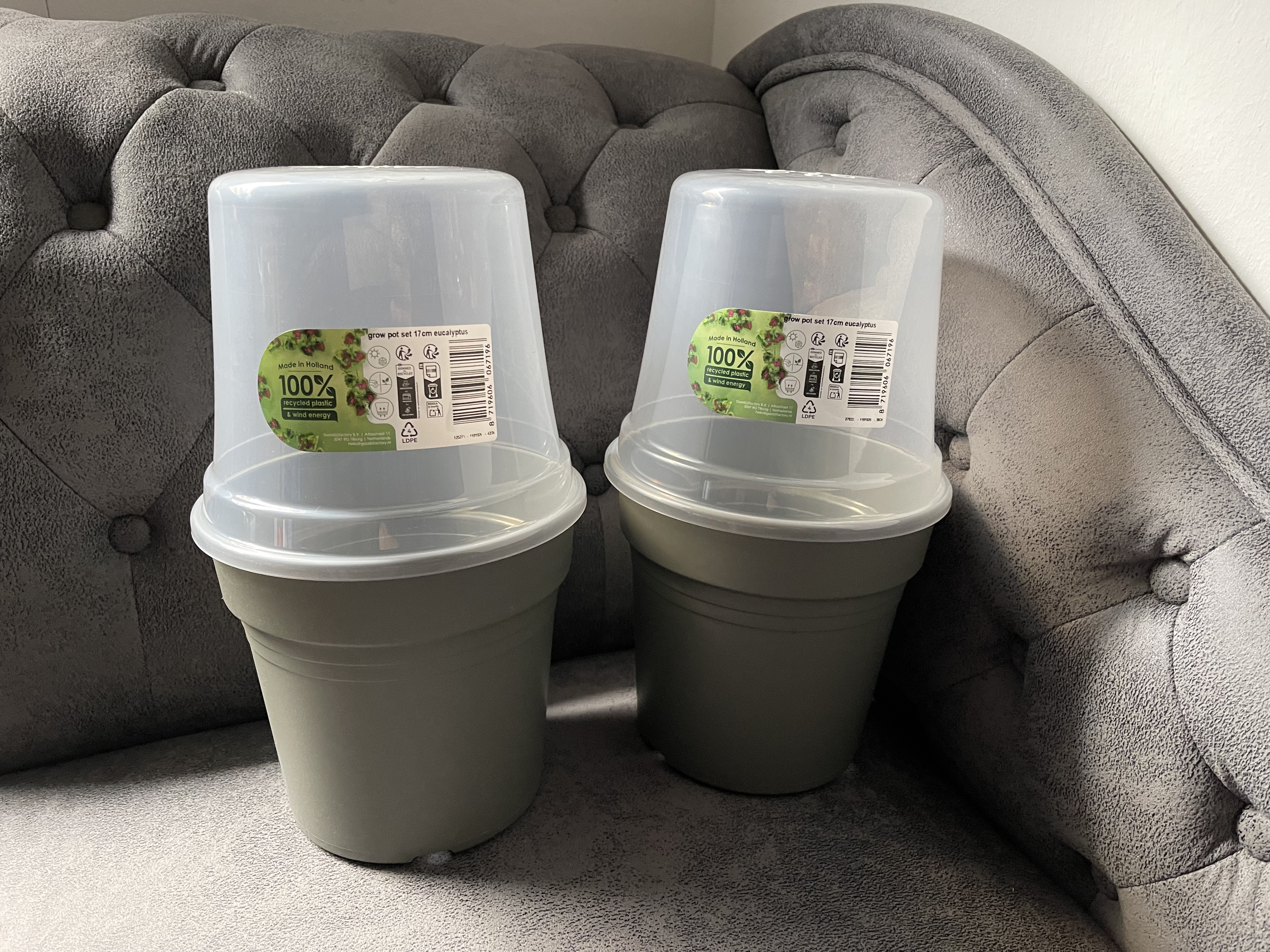 Der Graue Topf ist 16cm hoch und 17cm breit.