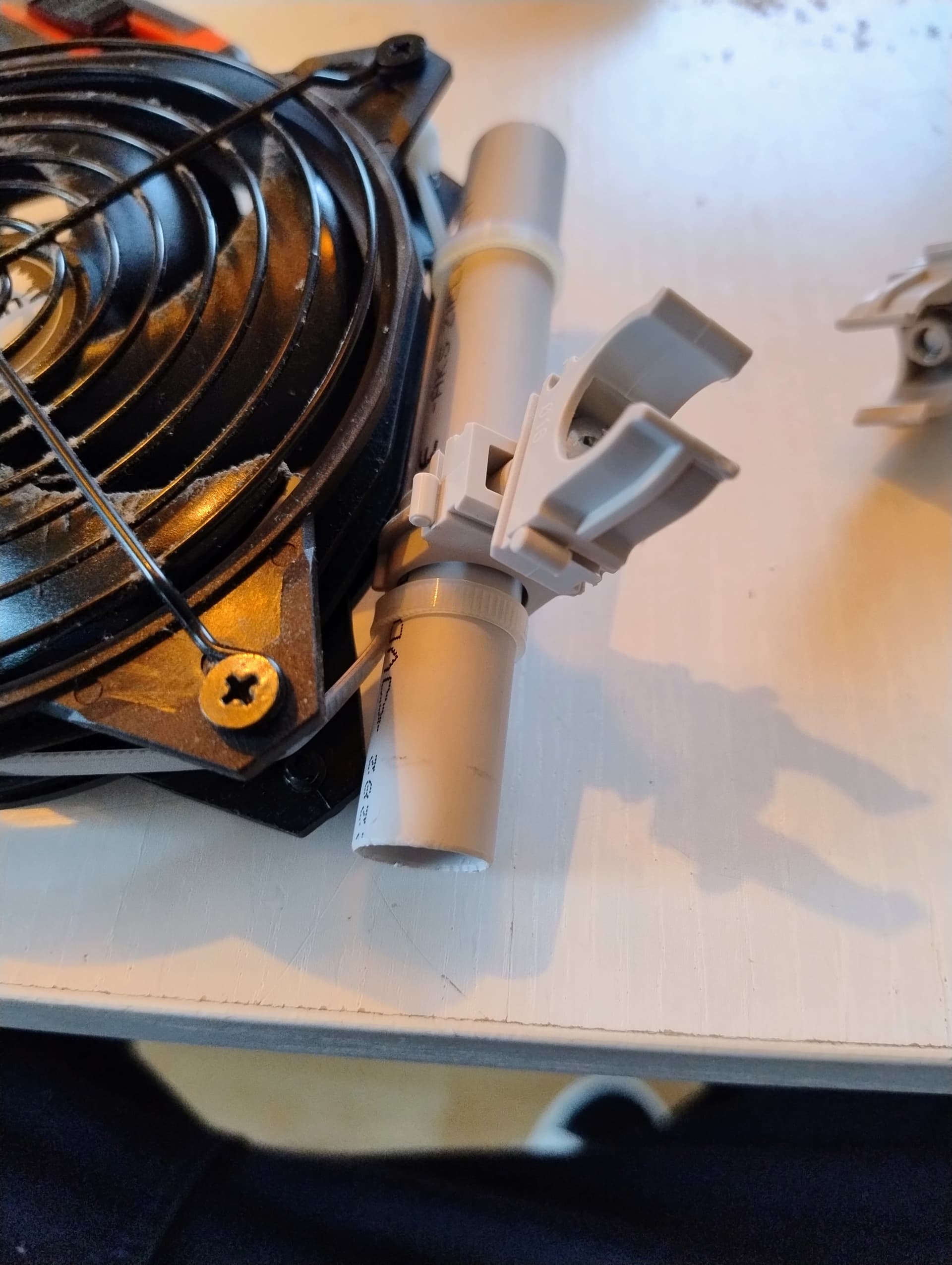werde nochmal testen die rohrschellen direkt am Lüfter zu befestigen. dann sollte es besser halten.