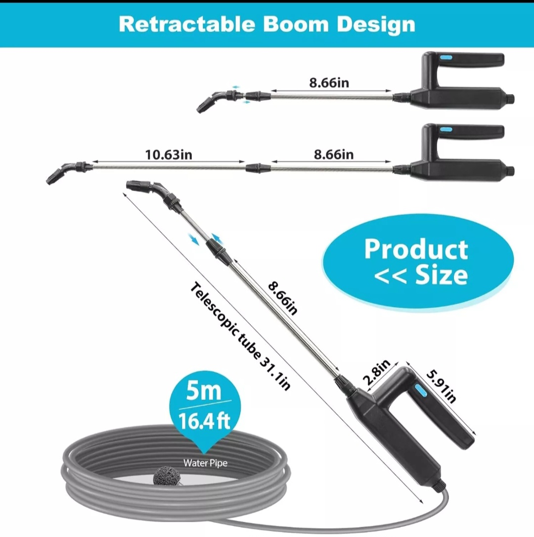 Das Teil wird mit USB geladen, die Lanze lässt sich ausziehen um auch an die hinterste Pflanze zu kommen.