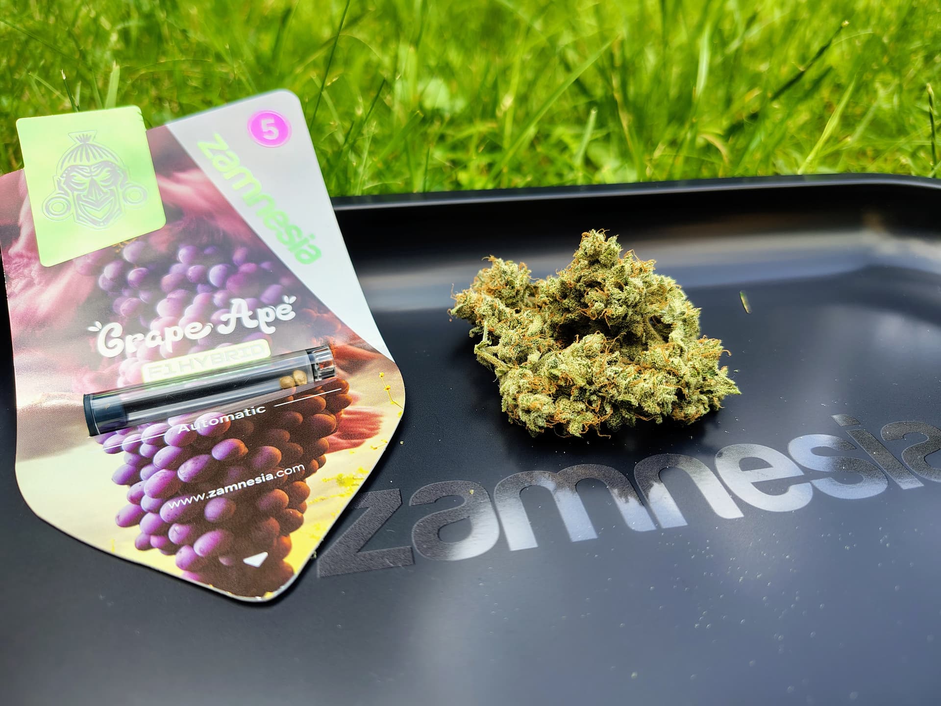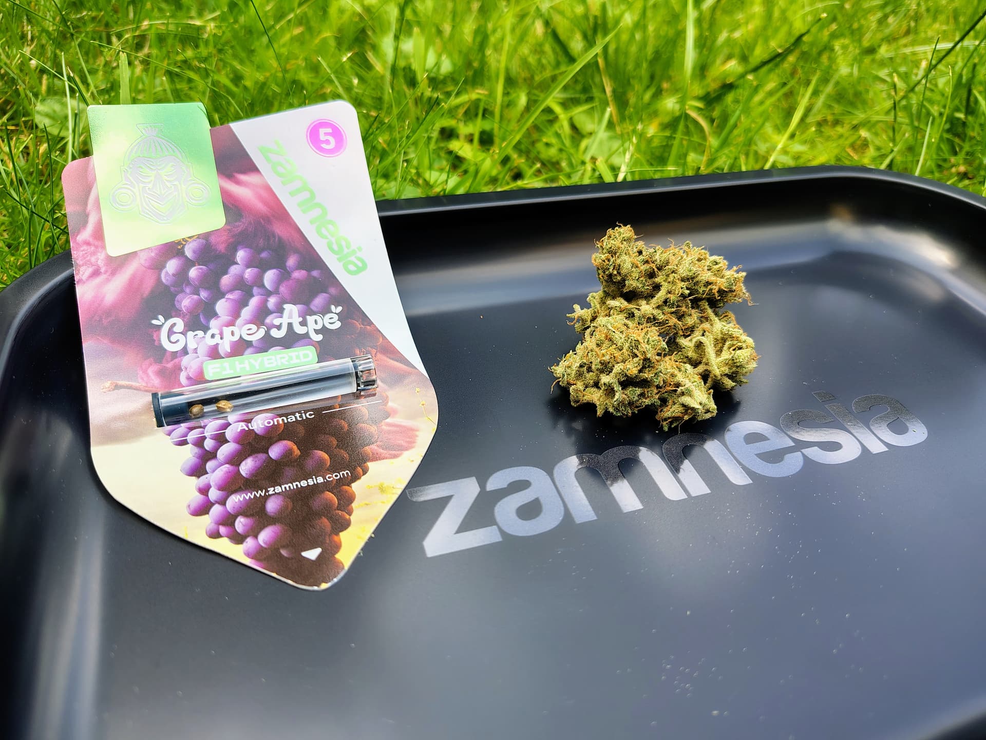 Die Grape Apes haben richtig Spaß gemacht sie zu ernten . Das Verhältnis von Blatt zu Blüte war sehr gut und angenehm zu bearbeiten . Sehr harzige und nach Traubensaft stinkende Knospen .