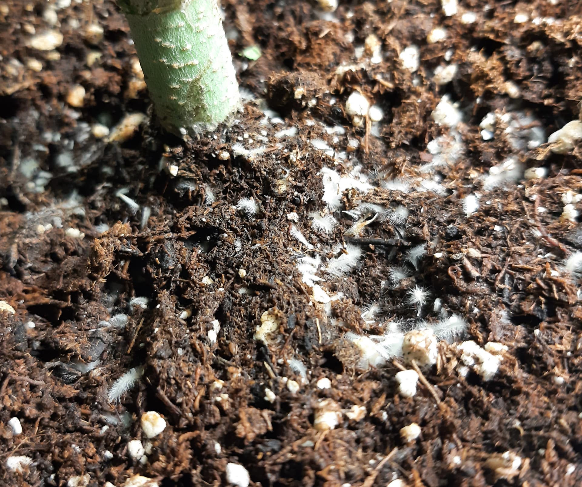 sind seitlich und aus dem reißverschluss der chilipötte gewachsen und selbst die oberste erdschicht war extrem durchwachsen.