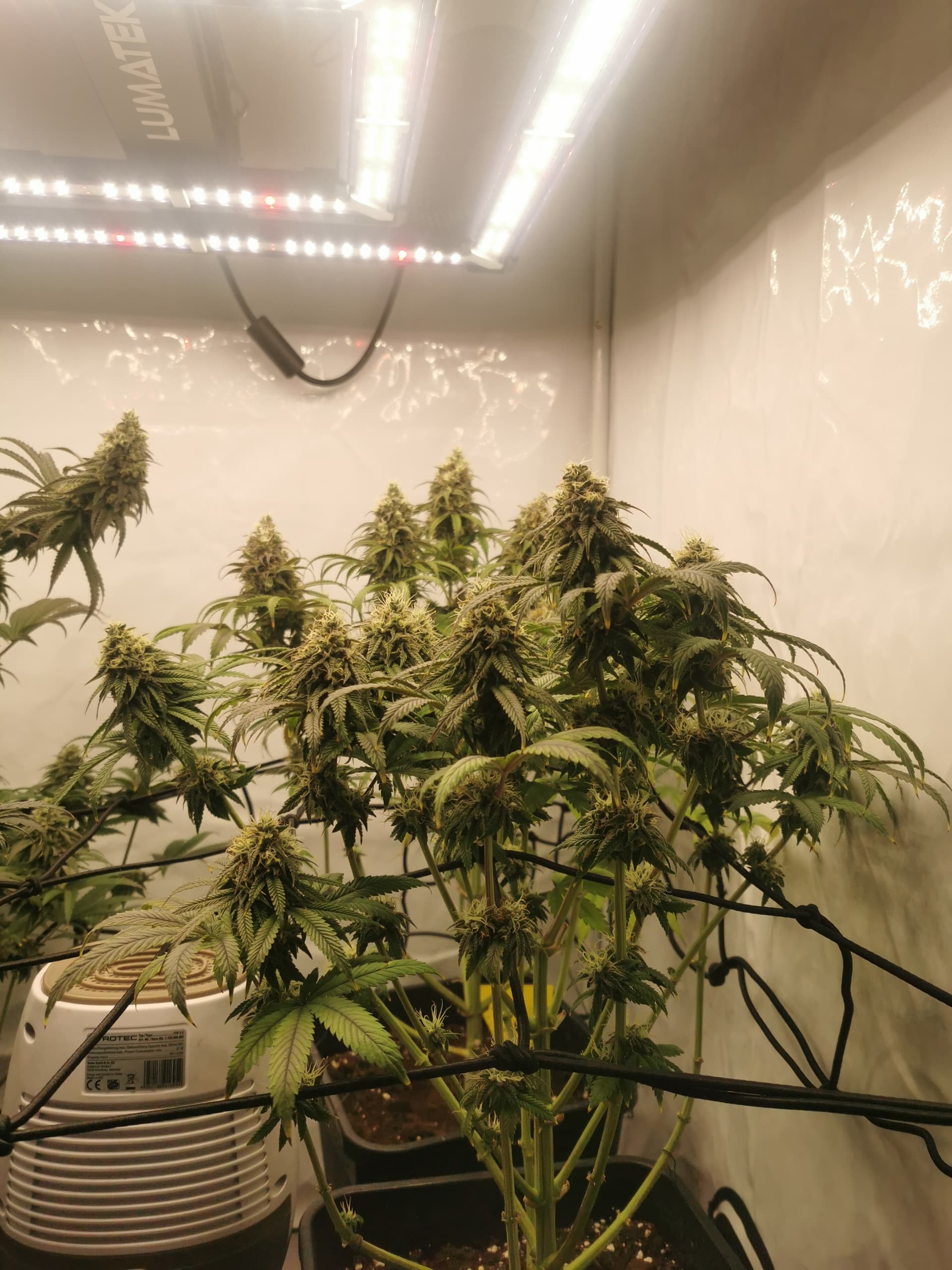 Eher zu schwache Umluft zwischen den Buds. sehe da viel Blattwerk was die Luft von guter Zirkulation abhalten kann. Wenn geht mehr Umluft und / oder Blätter ausdünnen, würde ich jetzt so sagen… @anon65664288 dein Tipp?