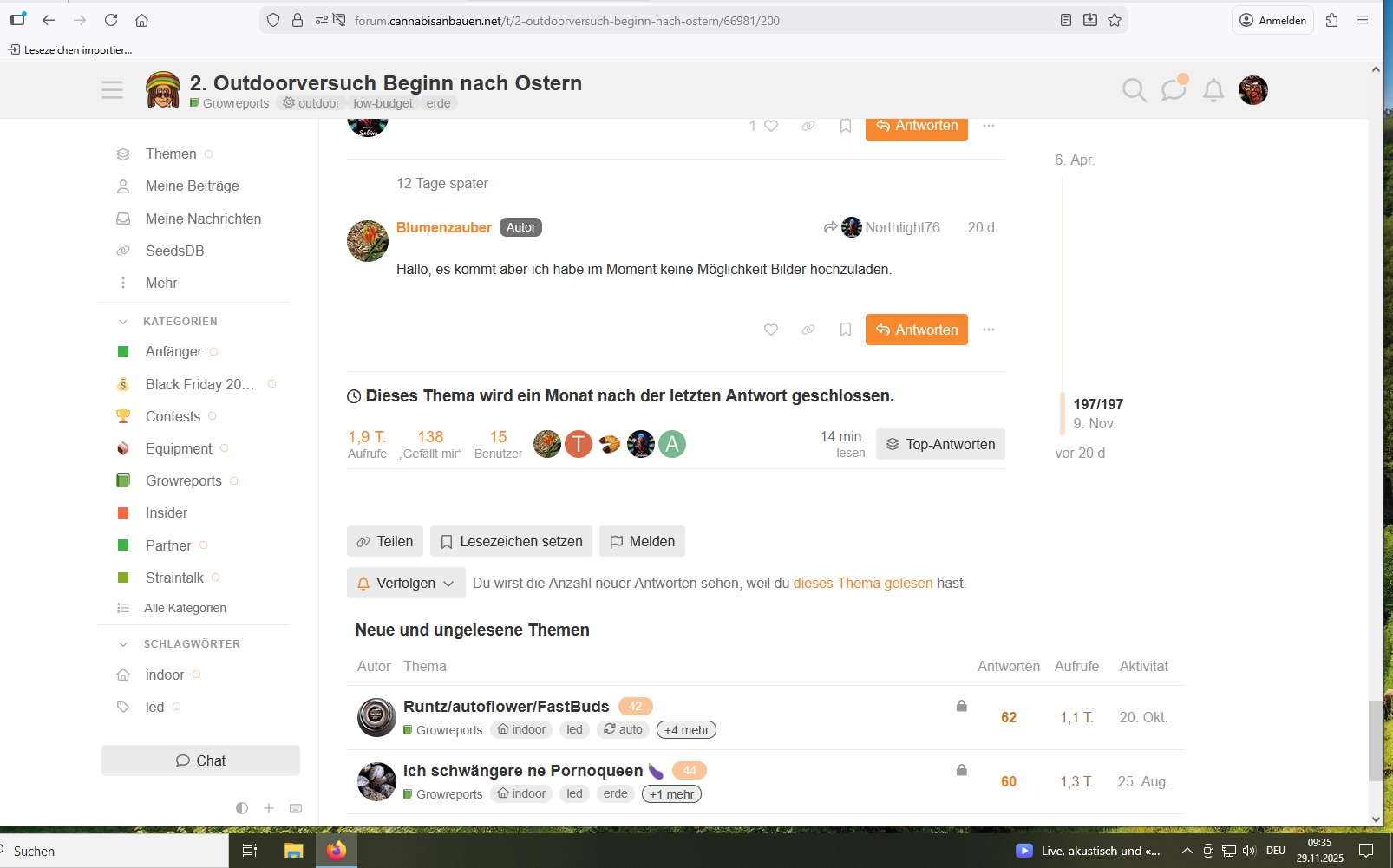 Ich kann auf Growreports von anderen Nutzern nicht mehr antworten, nur noch auf einzelne Beiträge. Auf meine eigenen Growreports antworten geht aber noch.