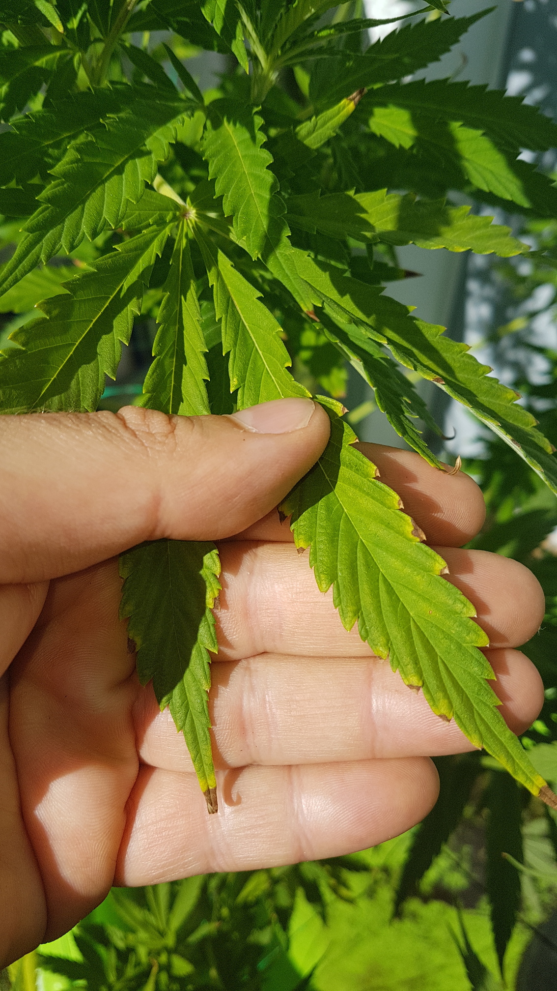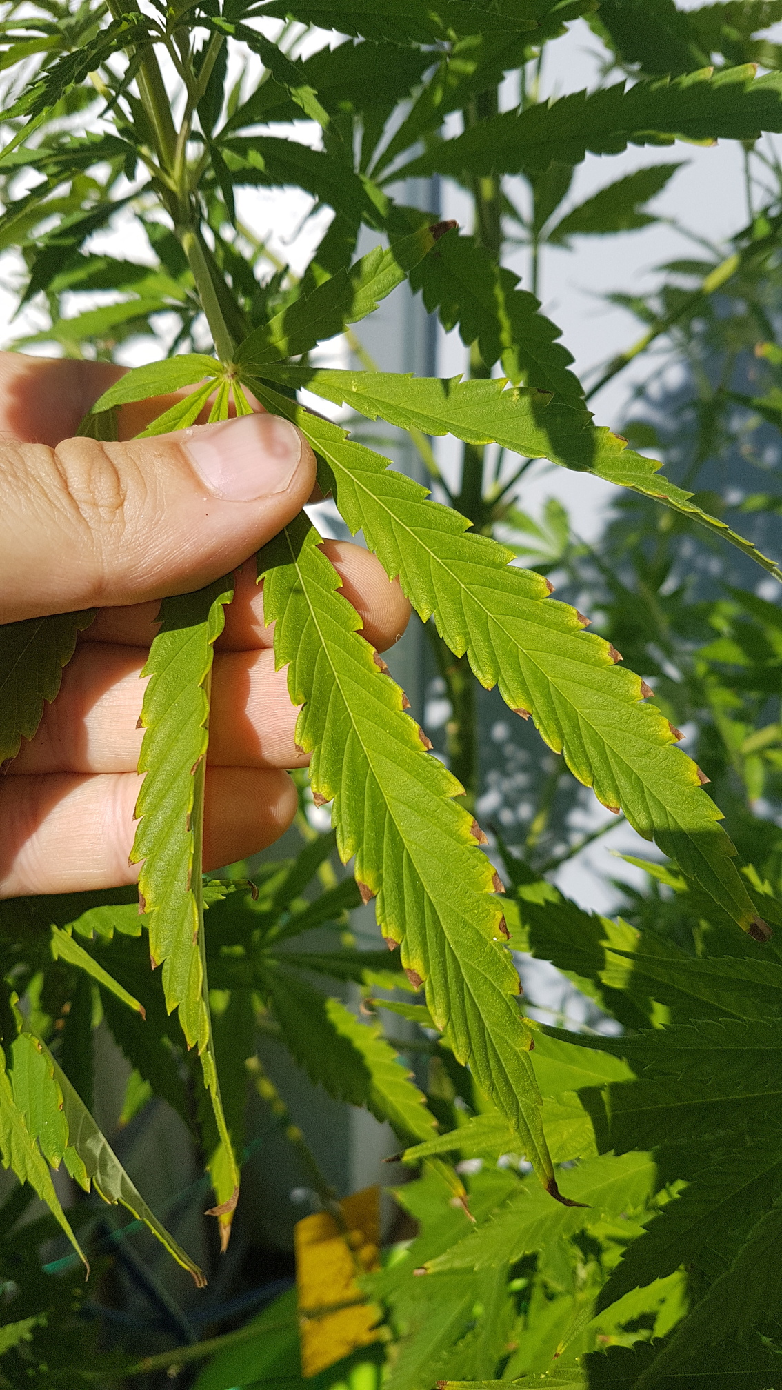 Könnte aber auch Nährstoffverbrennung sein, die Blattspitzen rollen sich hoch…