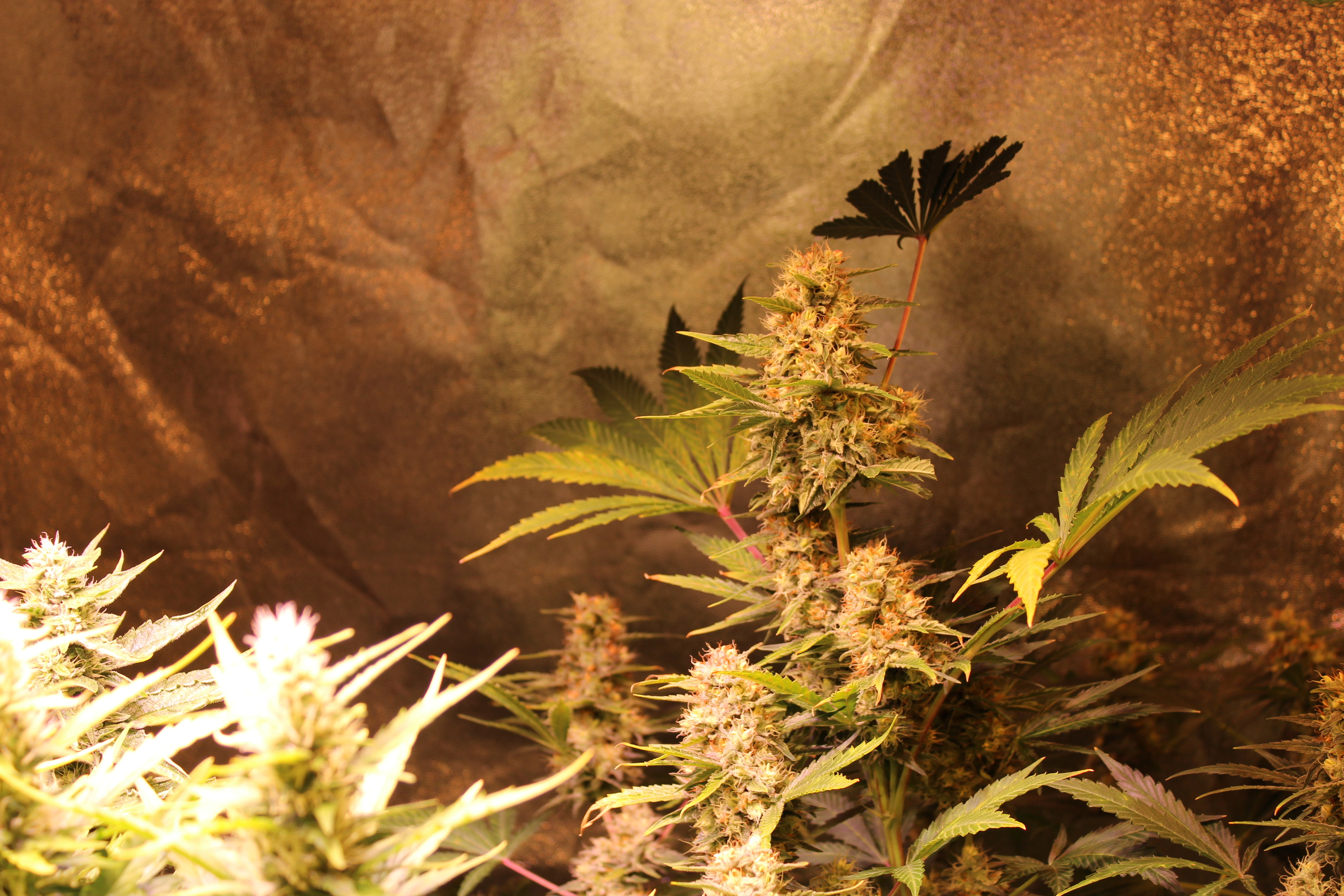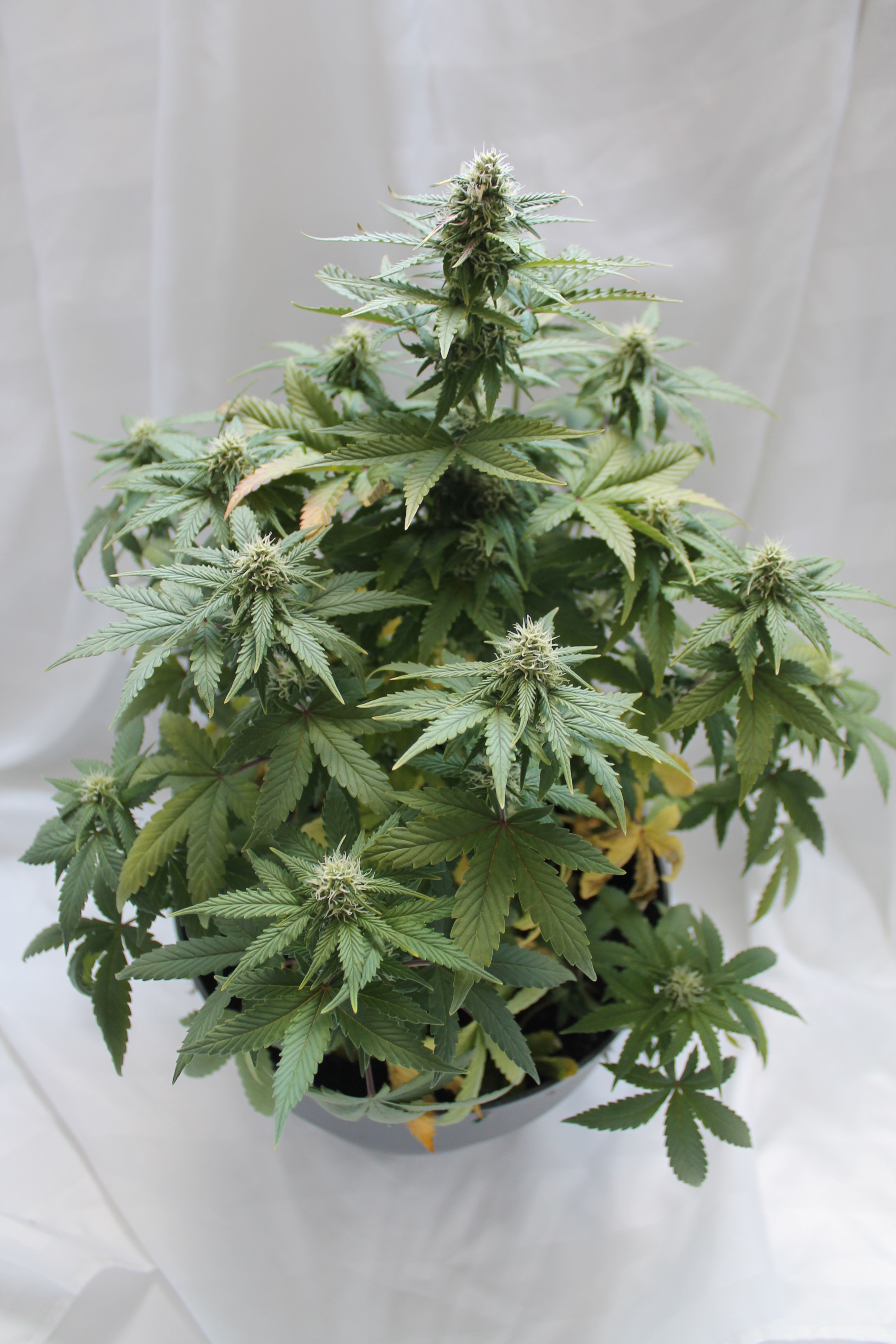 Es ist die 6. Blüttewoche, heute ist 39. Blüttetag. Hier mal ein bild der ganzen pflanze, da das zelt offen ist dehnt sie sich etwas, geschlossen ist sie enger zusammen wegen den einfallenden wänden.
