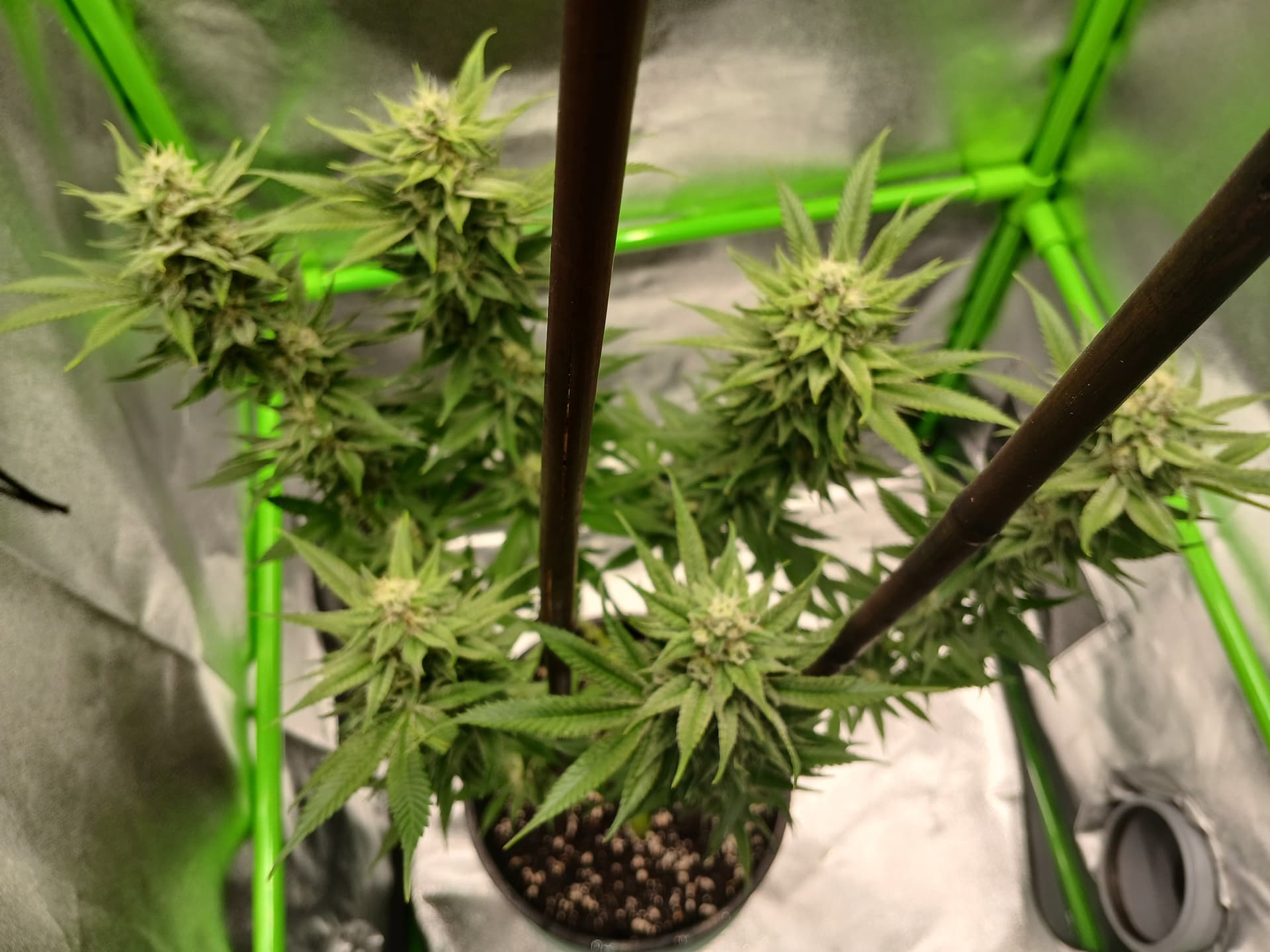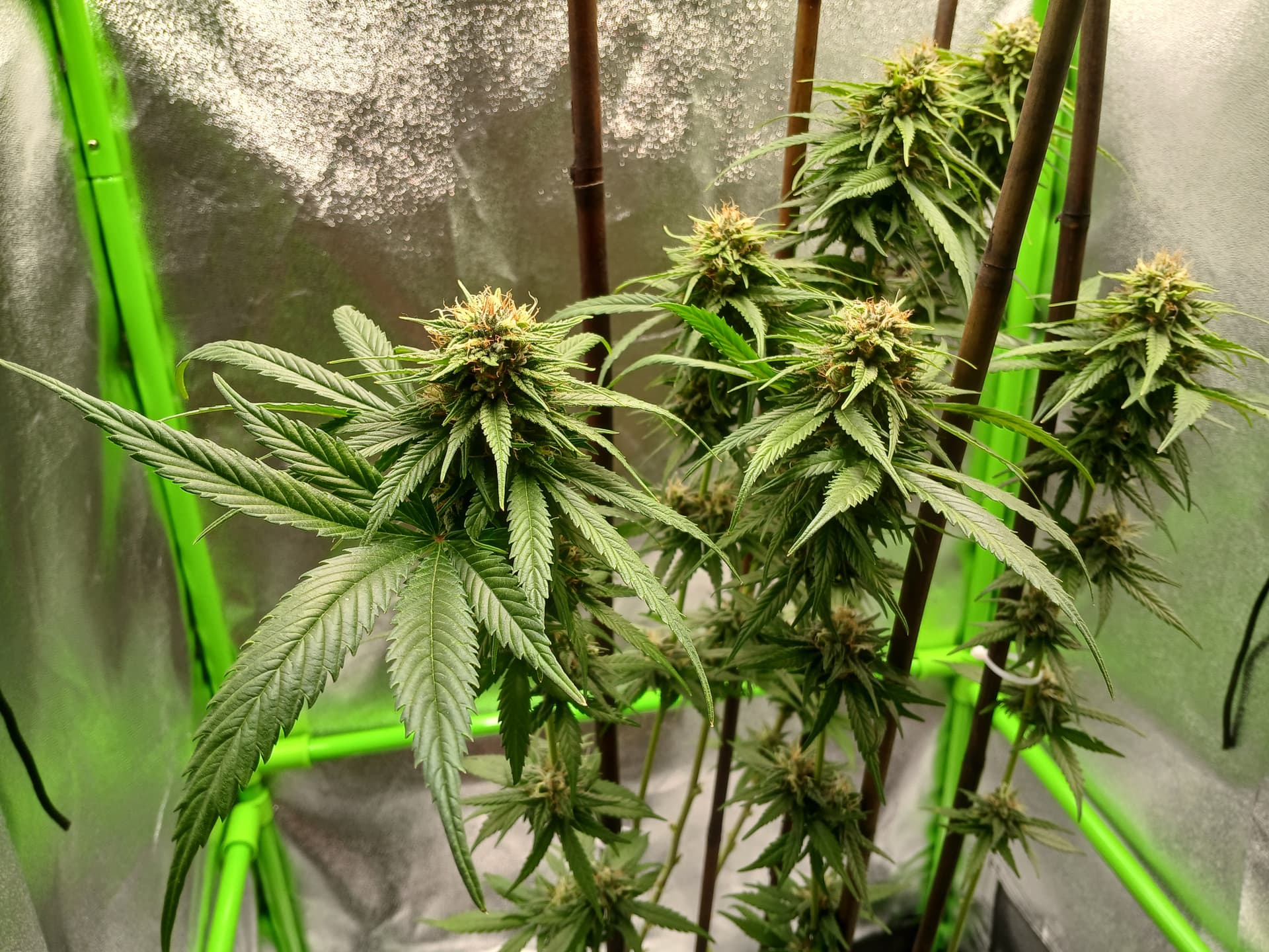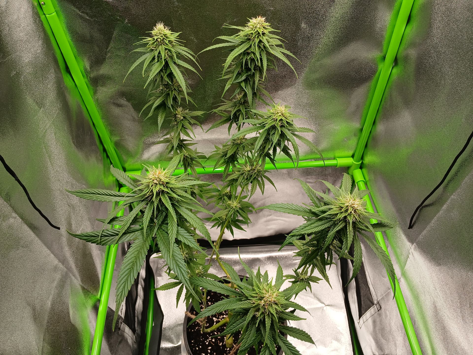 Wenn das so weiter geht überlege ich schon auf 4 Triebe pro Ppflanze runter zu gehen. Die Buds sind ĺocker doppelt bis ðreifach so groß wie bei den anderen.
