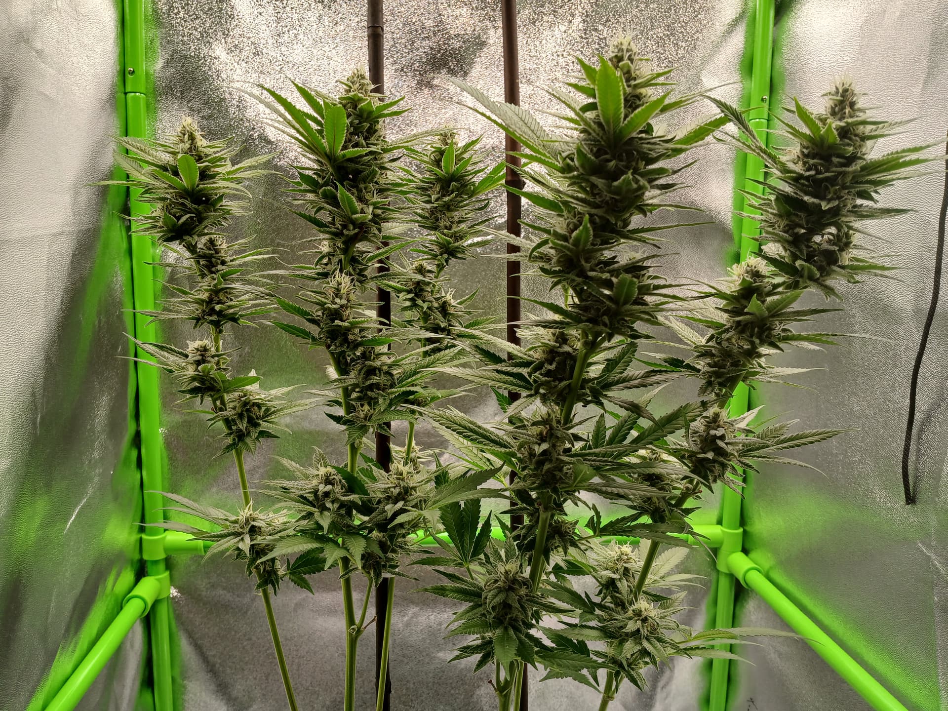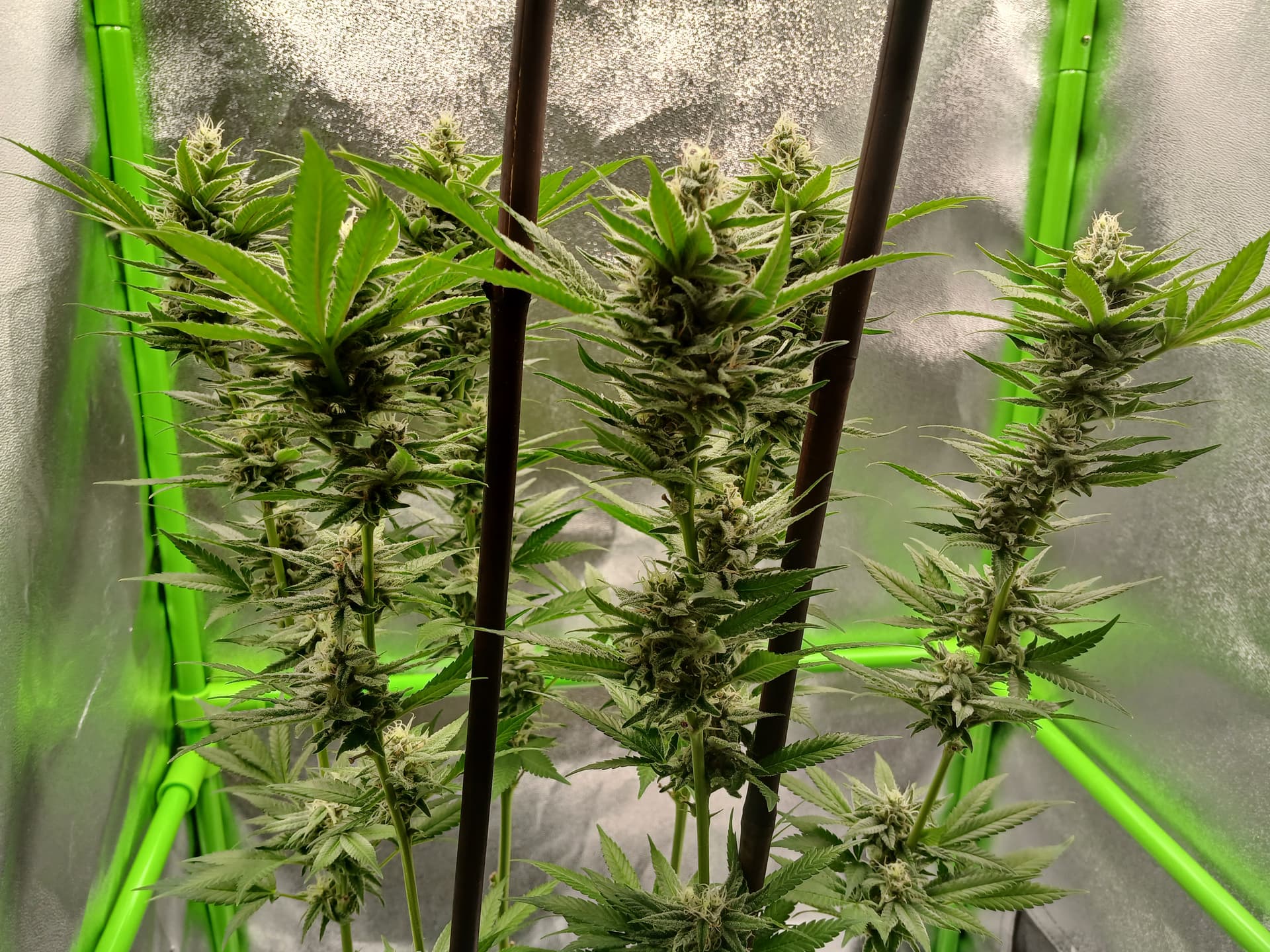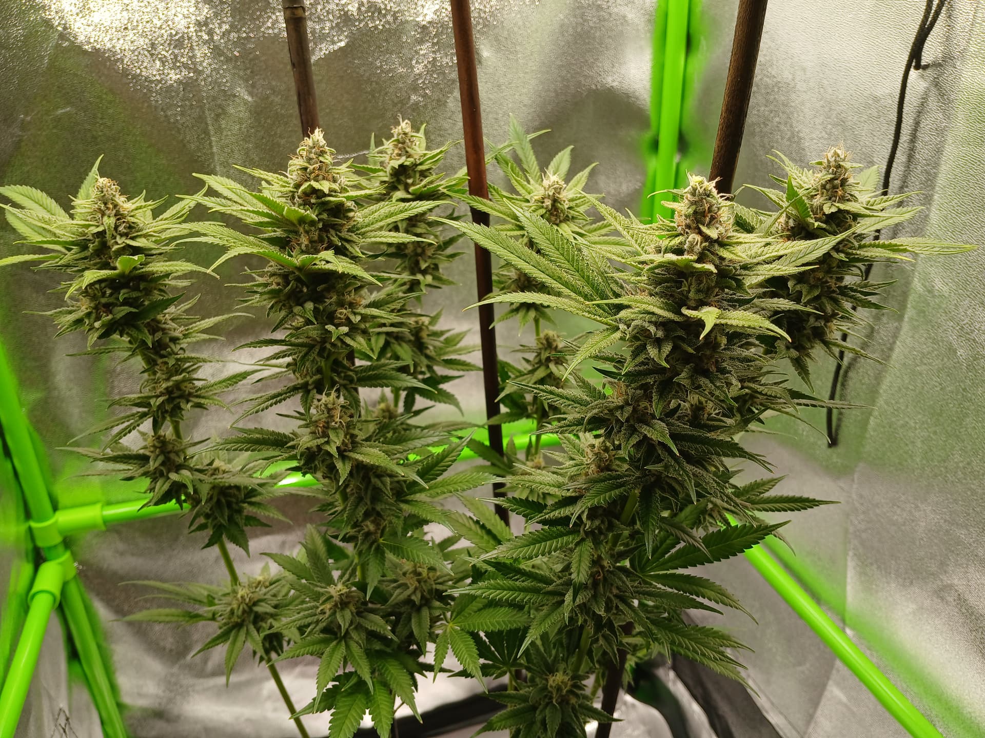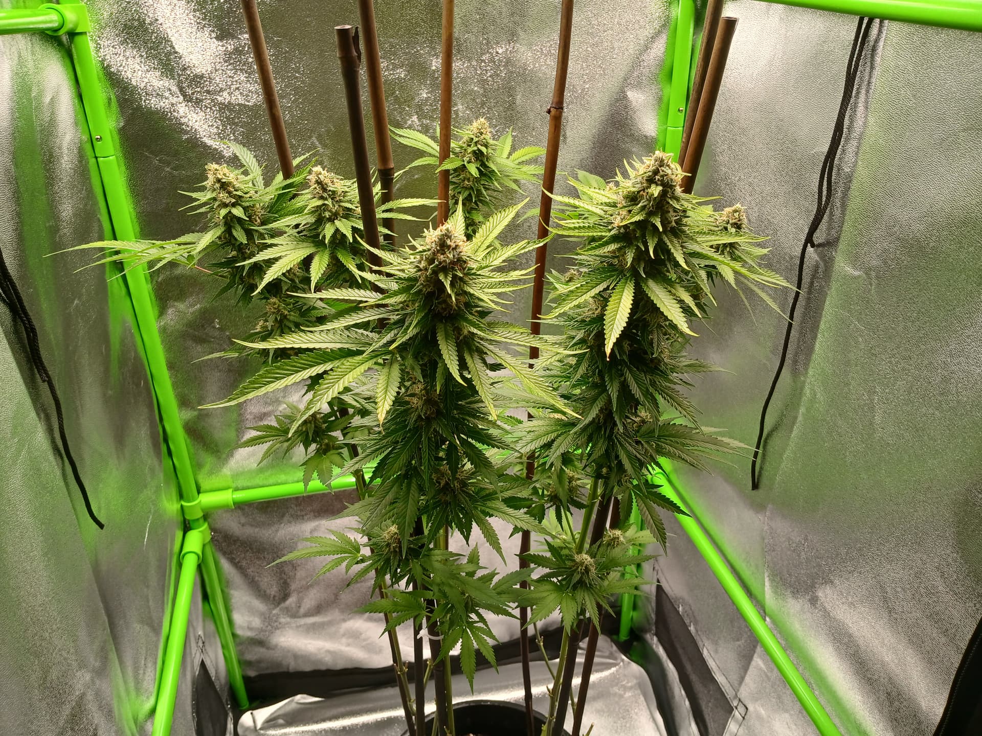 Wenn das so weiter geht überlege ich schon auf 4 Triebe pro Ppflanze runter zu gehen. Die Buds sind ĺocker doppelt bis ðreifach so groß wie bei den anderen.